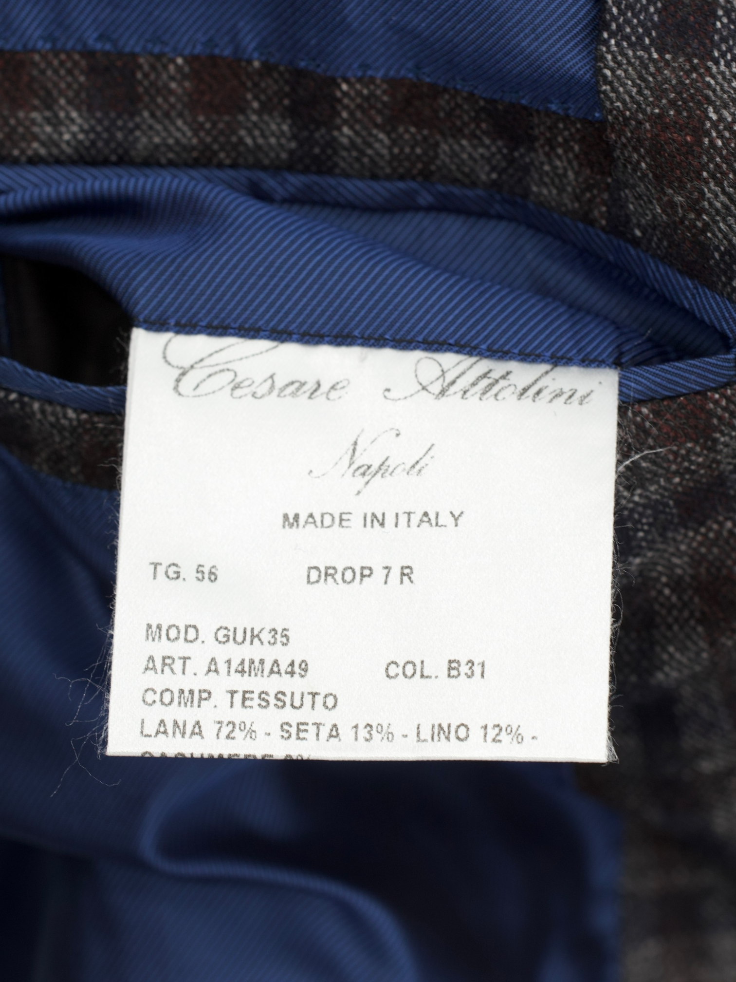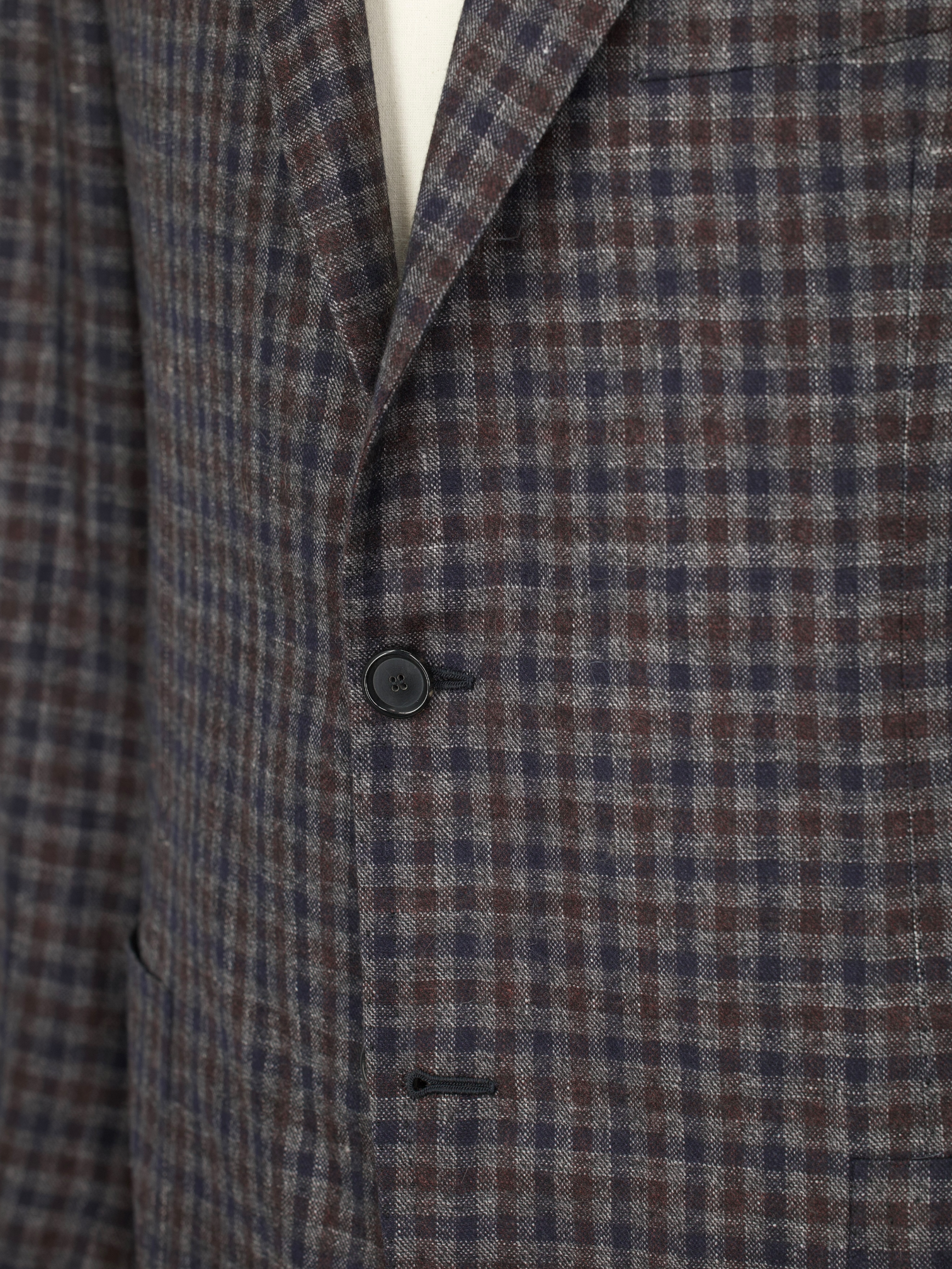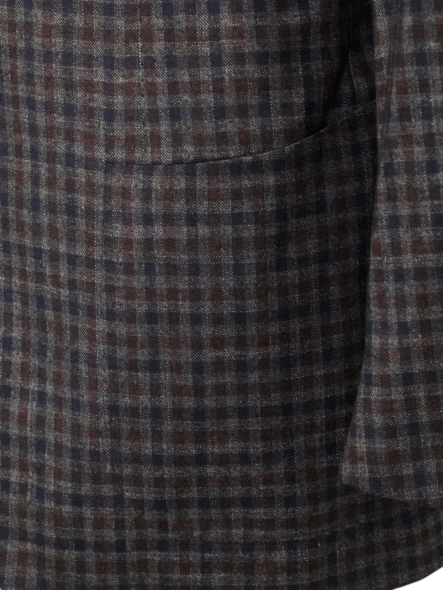Cesare Attolini Brown & Blue Wool, Silk & Linen Gingham Check Jacket