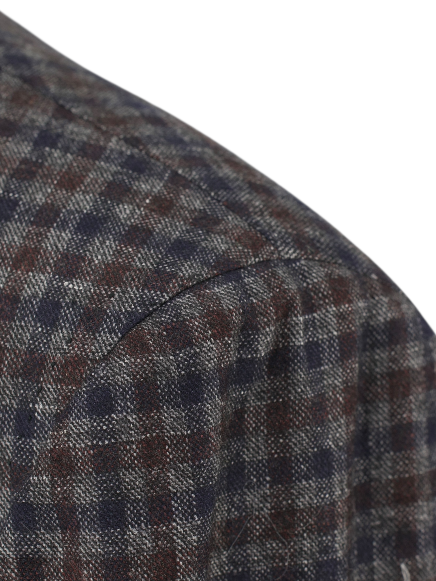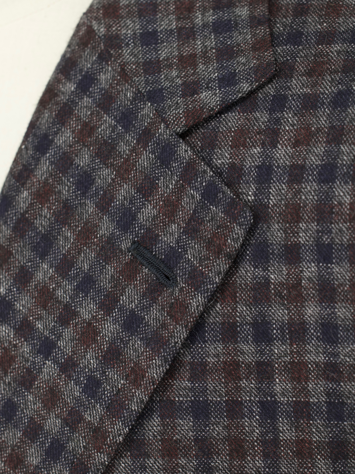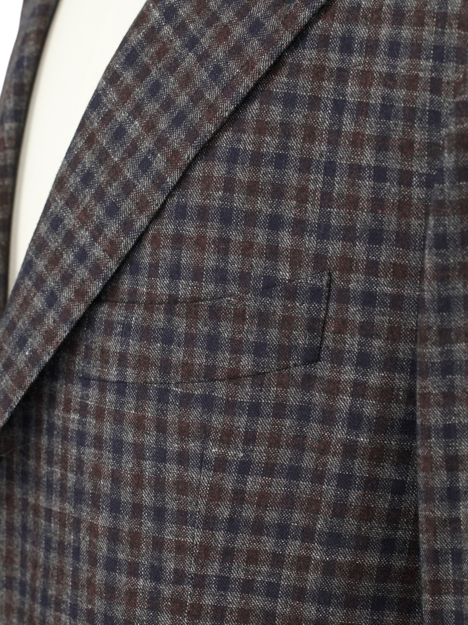 Cesare Attolini Brown & Blue Wool, Silk & Linen Gingham Check Jacket