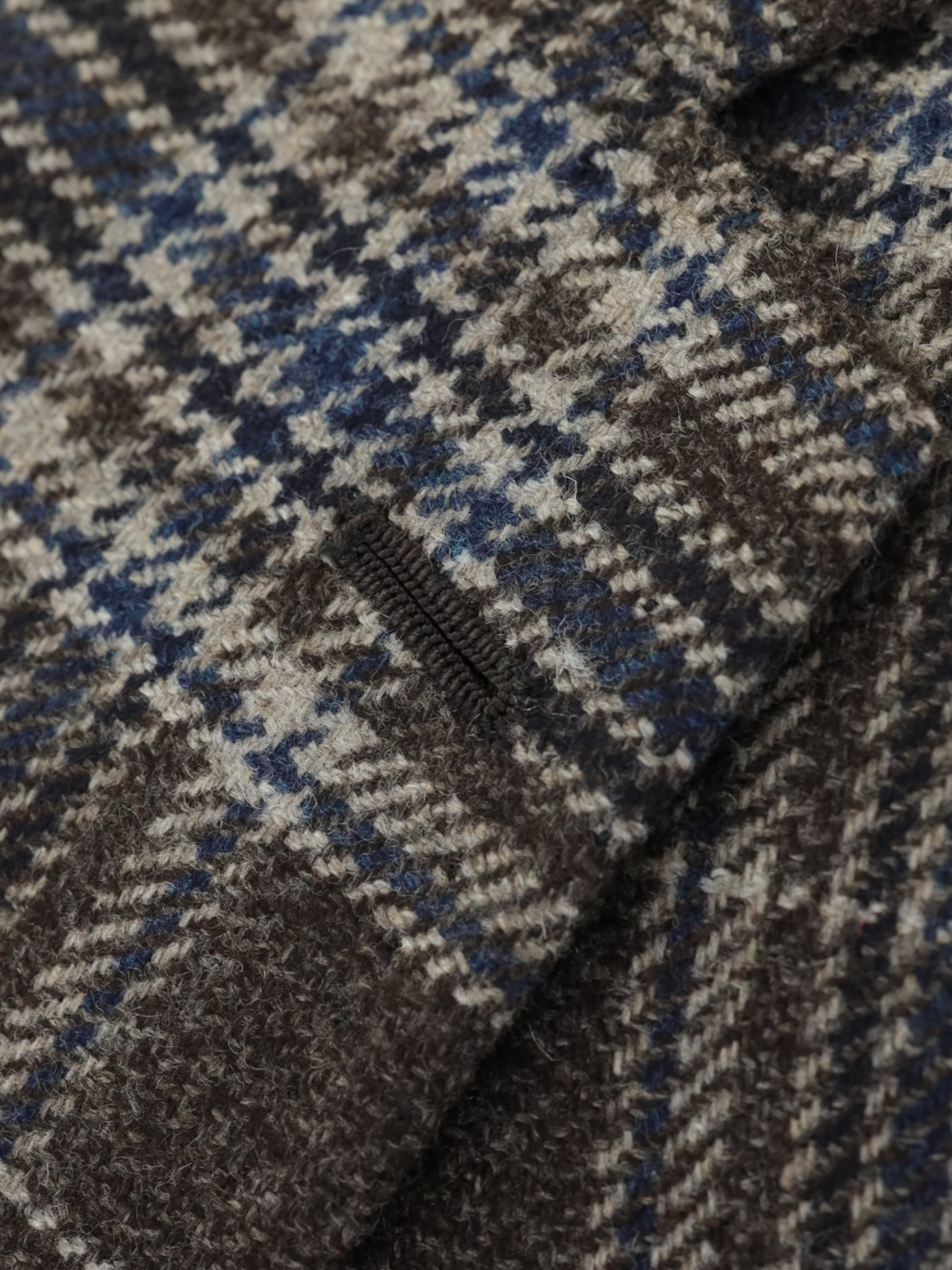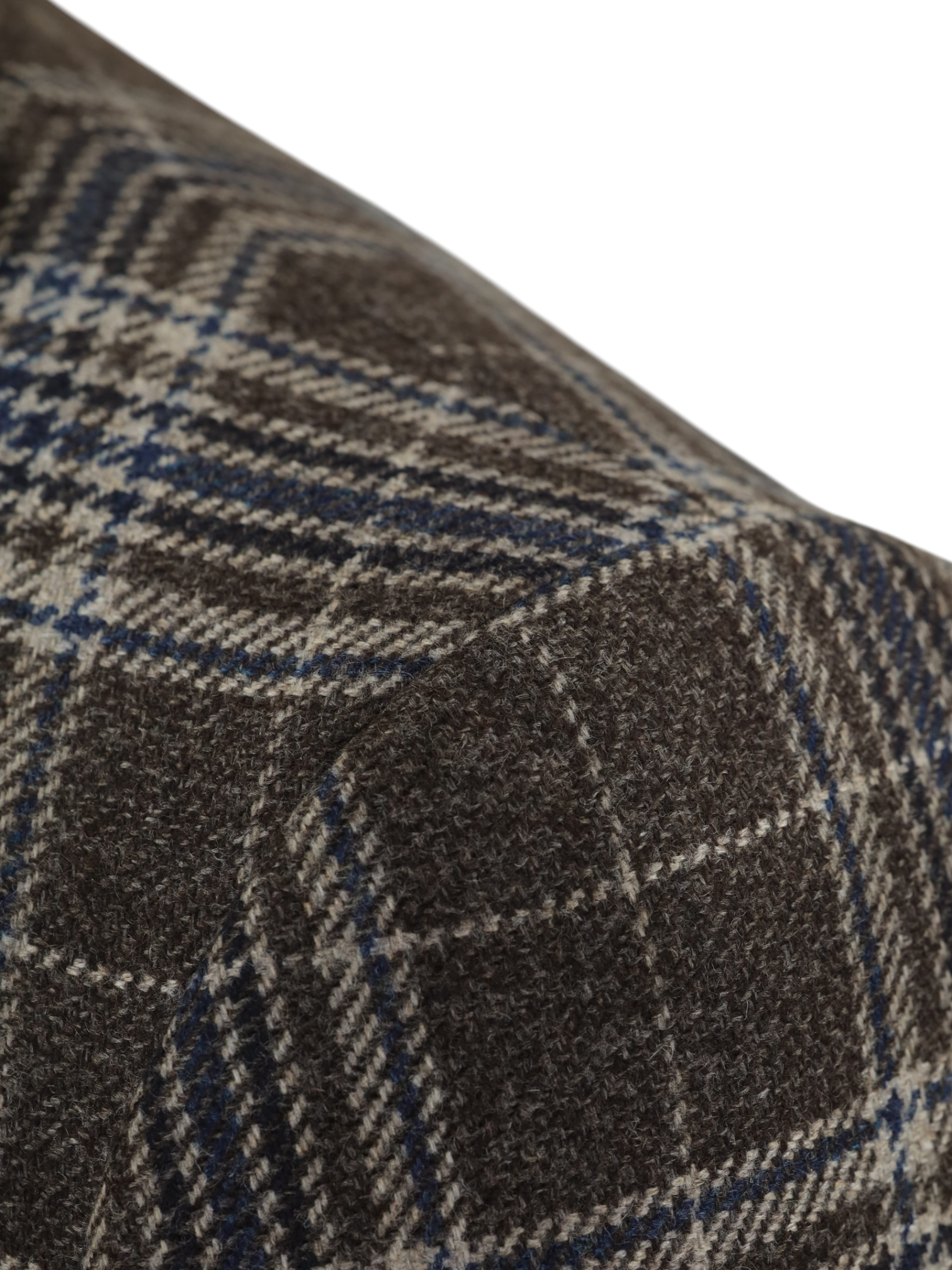 Discover the Cesare Attolini brown and petrol tartan-check jacket, an opulent piece crafted from pure cashmere with a remarkably plush hand. The bold yet harmonious tartan pattern—deep brown interwoven with rich petrol blue—lends a sense of depth and heritage while maintaining an unmistakably modern air. Styled with notch lapels, patch pockets, and dual vents, the silhouette is relaxed yet elegant. Half-lined for breathability and ease, this is a jacket that balances warmth with sophistication, ideal for cooler seasons.