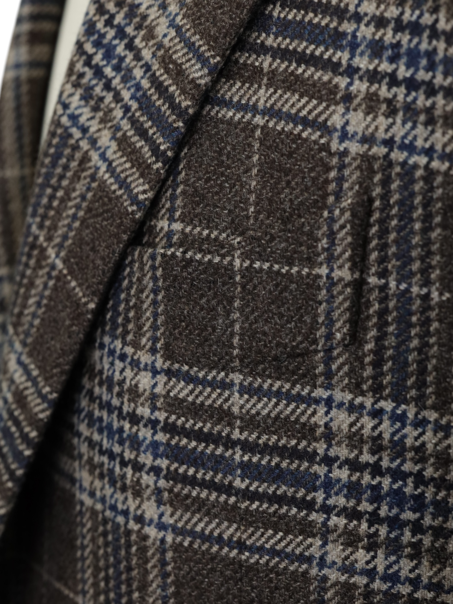 The barchetta pocket is often thought to be a tailoring detail exclusively from Italy. The word “barchetta” is Italian for “little boat.” It describes how the pocket floats on the chest, gently angled upwards, like the bow of a sailboat.