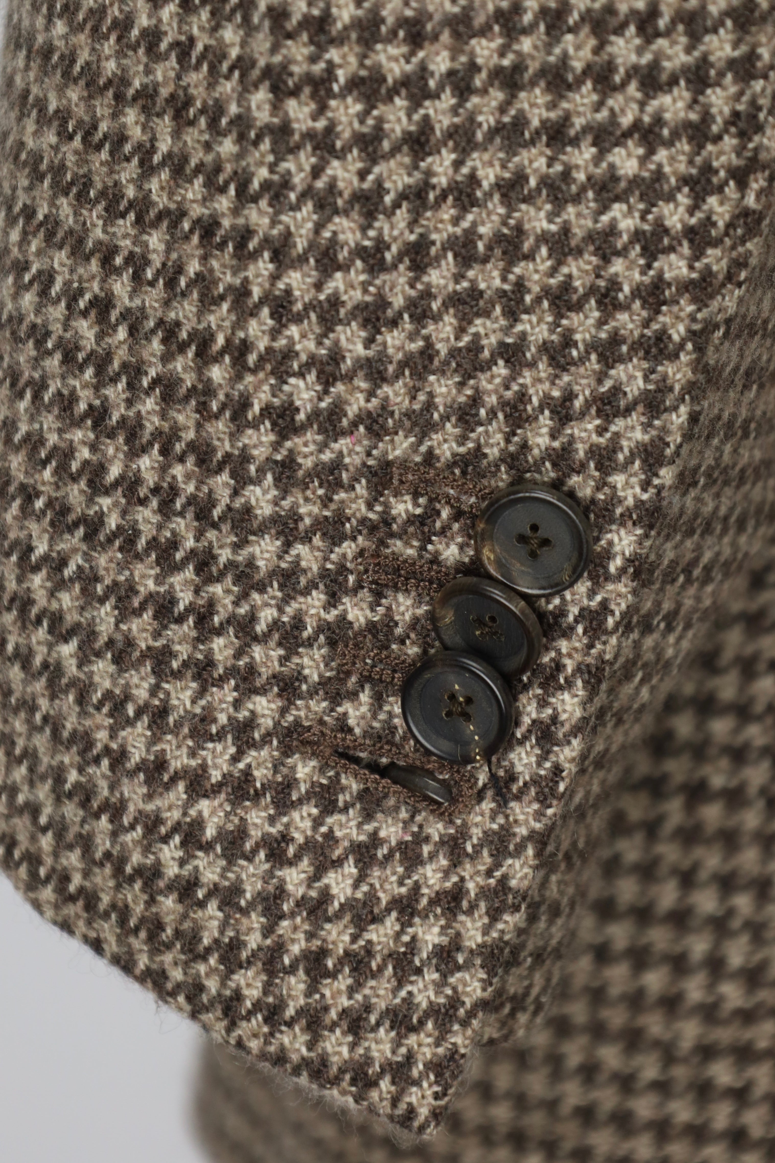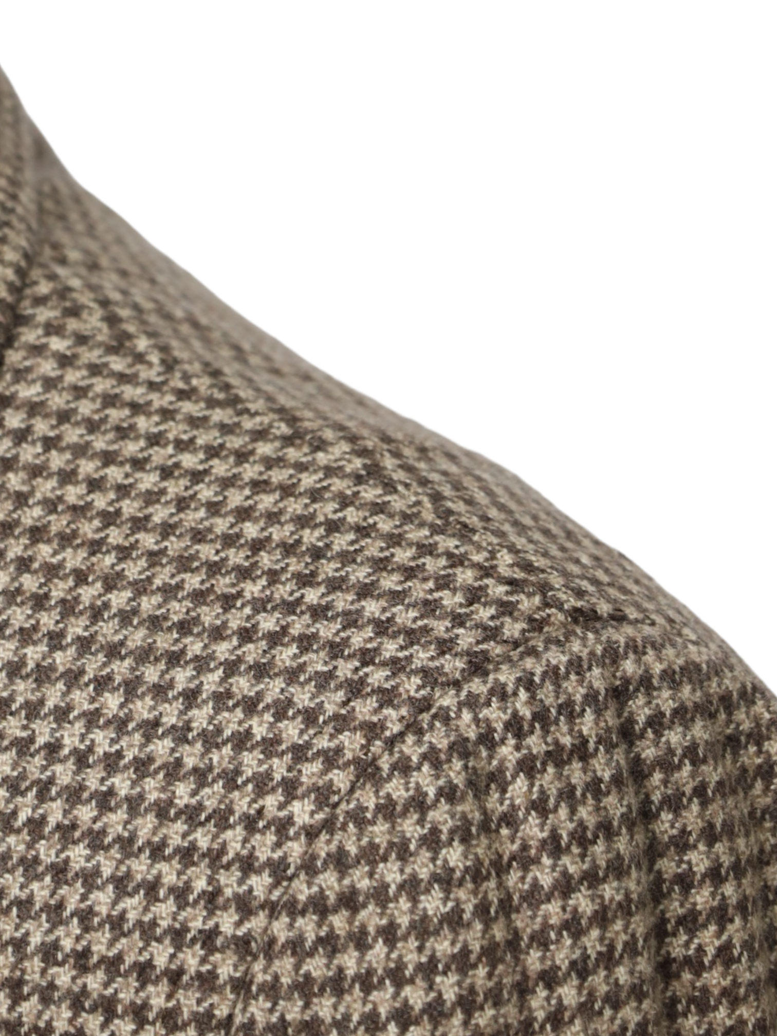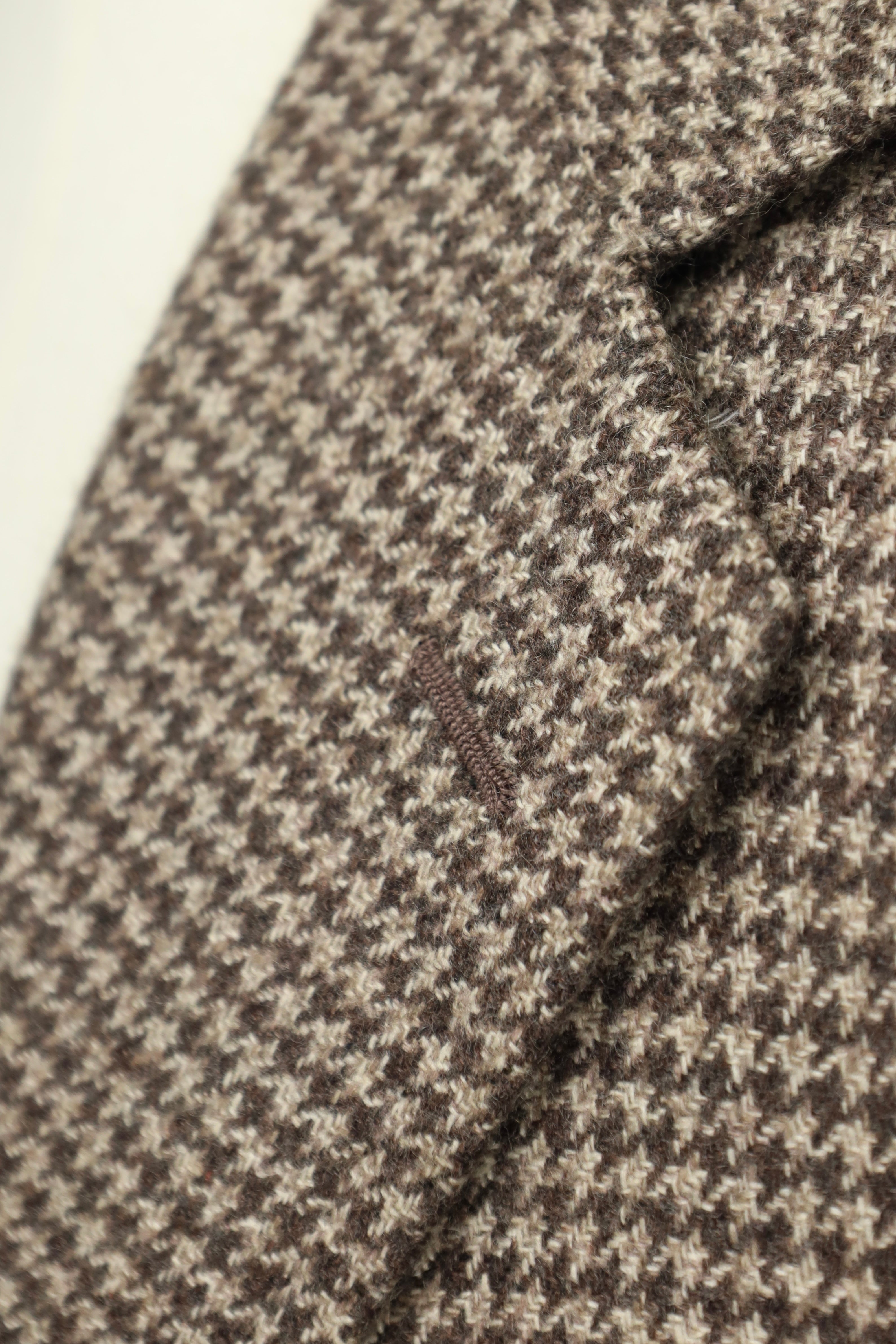 The Cesare Attolini Brown Pied de Poule Cashmere Jacket is a luxurious piece that combines timeless style with the unparalleled softness of cashmere. Featuring the classic houndstooth (pied de poule) pattern, this jacket is a testament to Attolini's exceptional craftsmanship and attention to detail, making it a sophisticated addition to any wardrobe. Discover the elaborated sartorial details below.