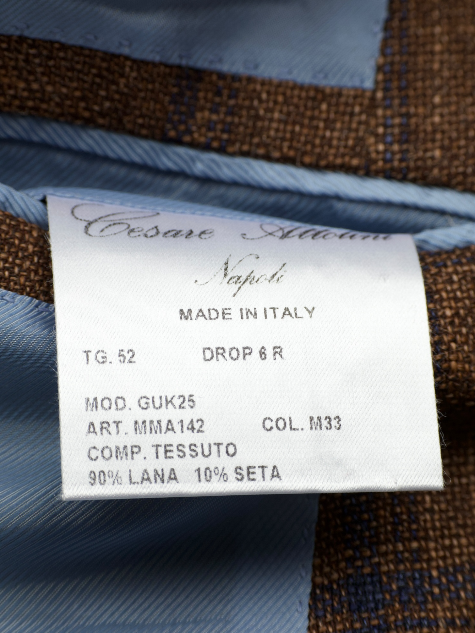 Cesare Attolini Chestnut Brown Wool & Silk Hopsack Windowpane Jacket