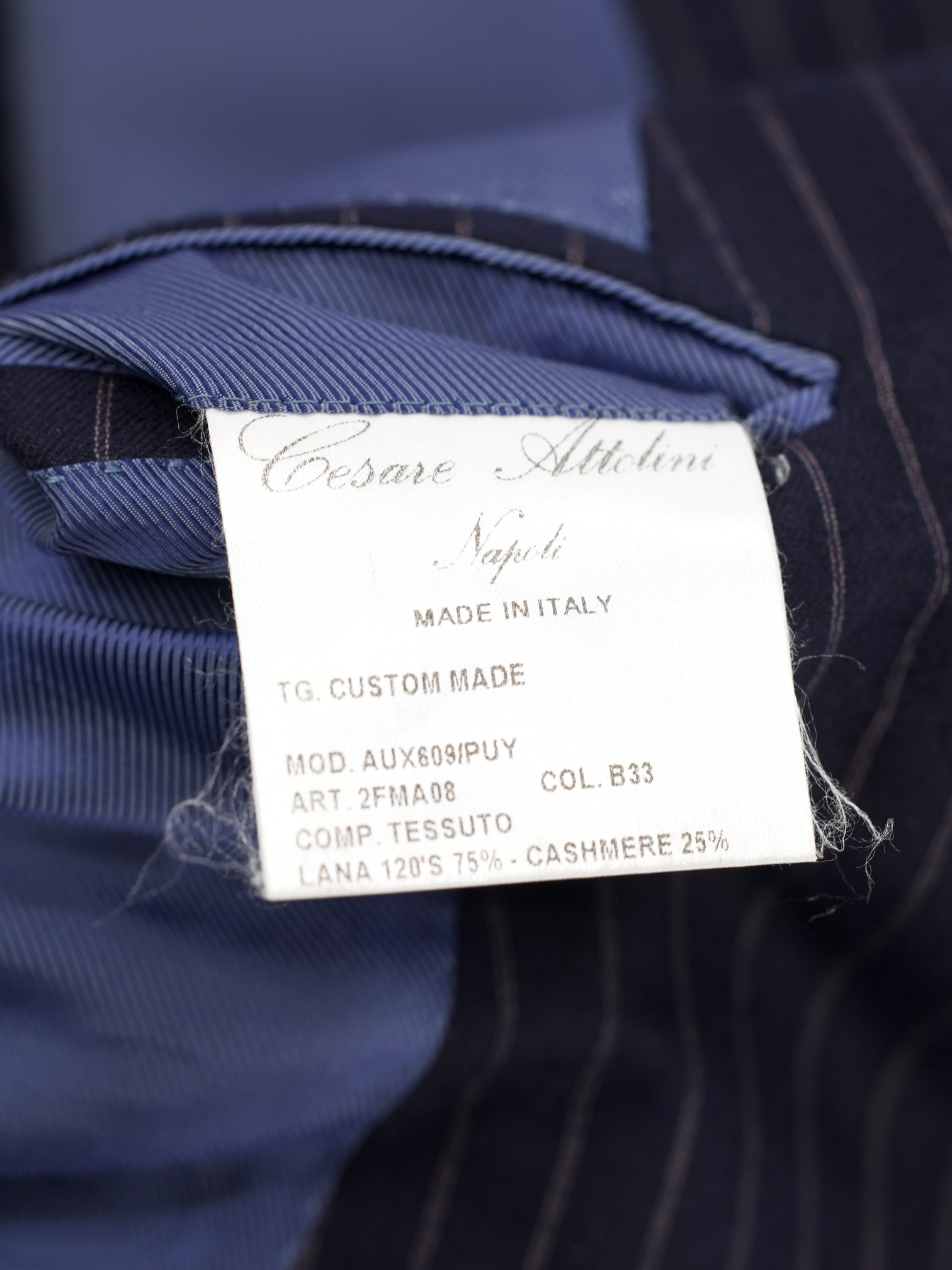 Cesare Attolini Dark Blue Super 120's & Cashmere Double-Breasted Pinstripe Suit