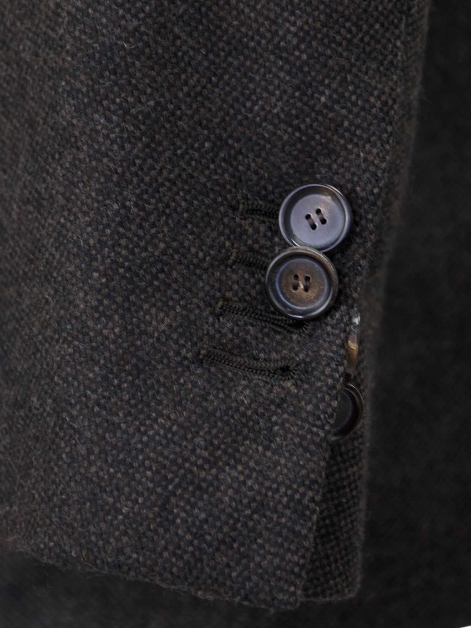 Also known as stacked buttons or waterfall buttons, kissing buttons are associated with Italian tailoring as Italian tailors make their jacket sleeve buttons in the kissing style. In this style, buttons touch each other and overlap one another. Handmade buttonholes; Even this step, apparently the simplest, is treated with an abundance of detail. Attaching the buttons is a job that requires patience and must be completed to perfection.