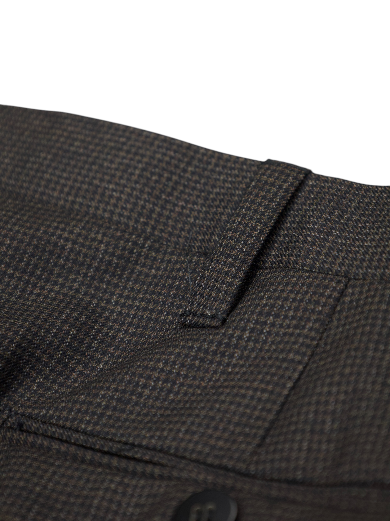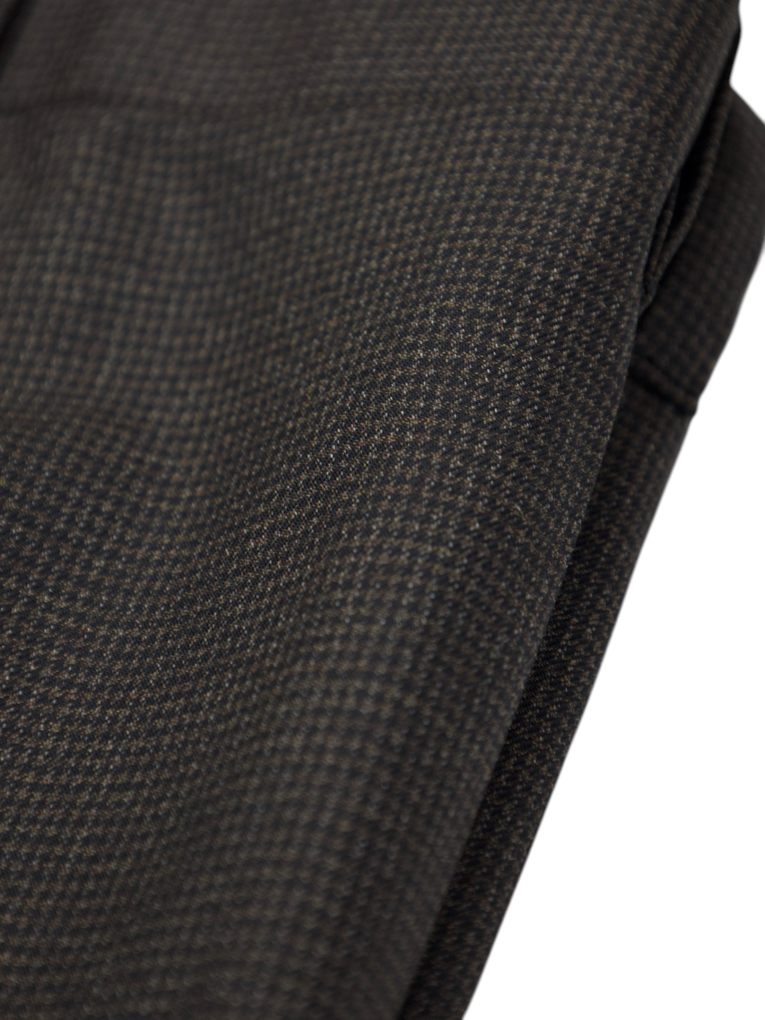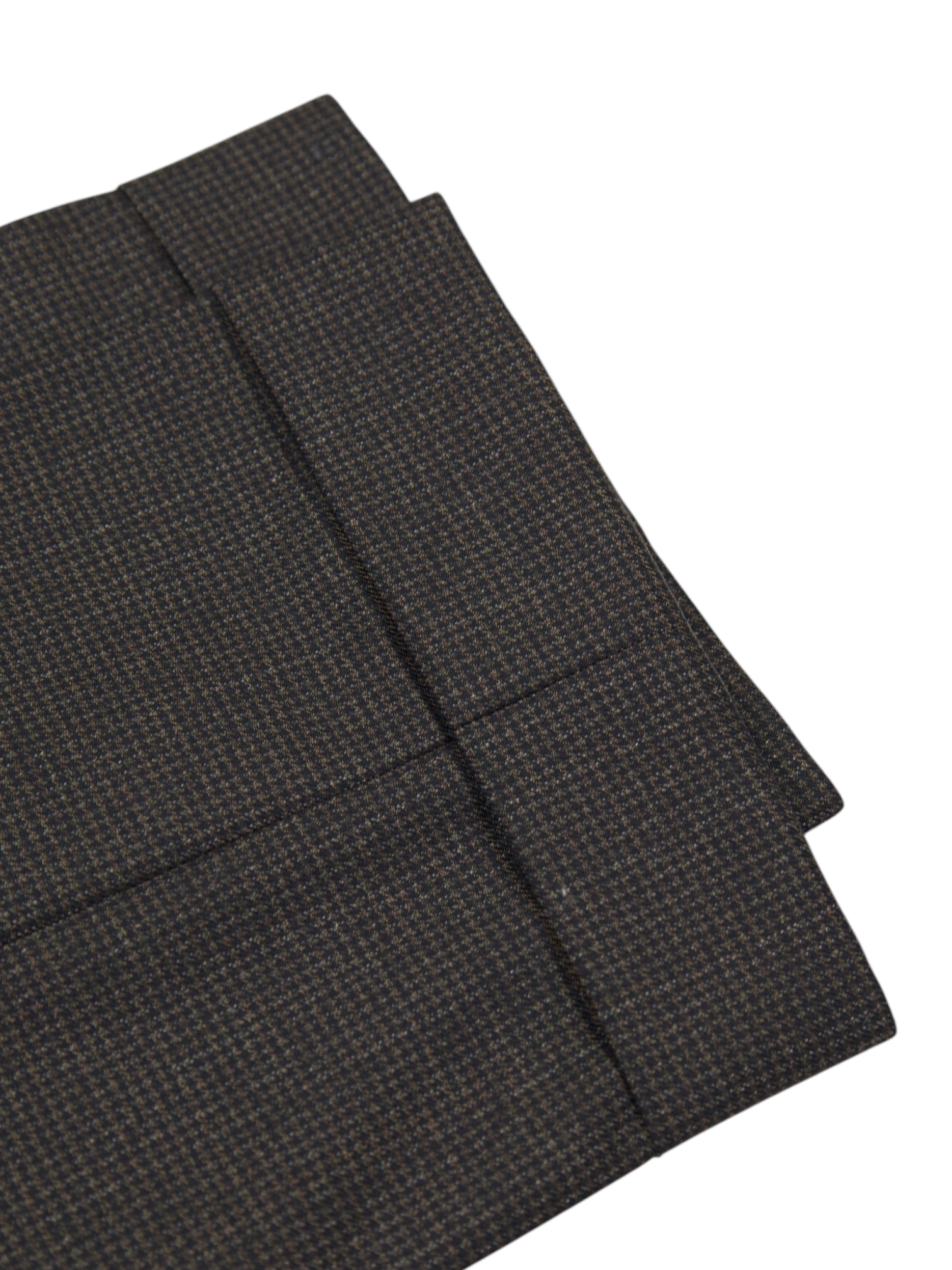 Discover the Cesare Attolini Dark Brown Extrafine-Wool Puppytooth Suit, a testament to Neapolitan tailoring at its most refined. Crafted from the finest extrafine wool, this suit offers a supremely soft texture and an elegant drape, ensuring both comfort and sophistication. The dark brown puppytooth pattern adds a subtle depth to the fabric, creating a nuanced and distinguished aesthetic that transitions effortlessly from business to formal occasions. The jacket features a rare 2.5-button closure, allowing for a graceful lapel roll, while its fully lined construction enhances structure and wearability.