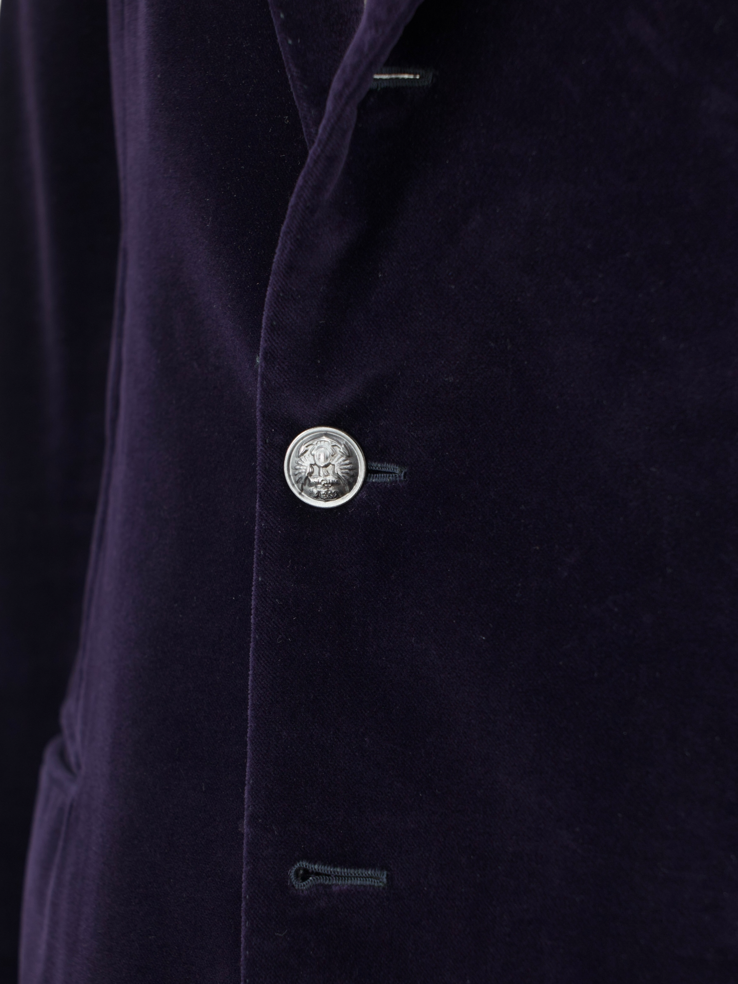 Discover the Cesare Attolini Dark Purple Cotton Velvet Jacket, a standout piece that balances opulence with versatility. Crafted from rich cotton velvet in a deep, inky shade of purple, it’s cut in Attolini’s signature soft tailoring style with notch lapels and a distinctive 2.5-button front. Fully lined for structure and comfort, it features silver-toned metal buttons engraved with the Attolini family crest, a rare detail that quietly nods to the house’s heritage. Whether worn as a refined alternative to a dinner jacket or dressed down with denim, it brings an effortless elegance to any setting.