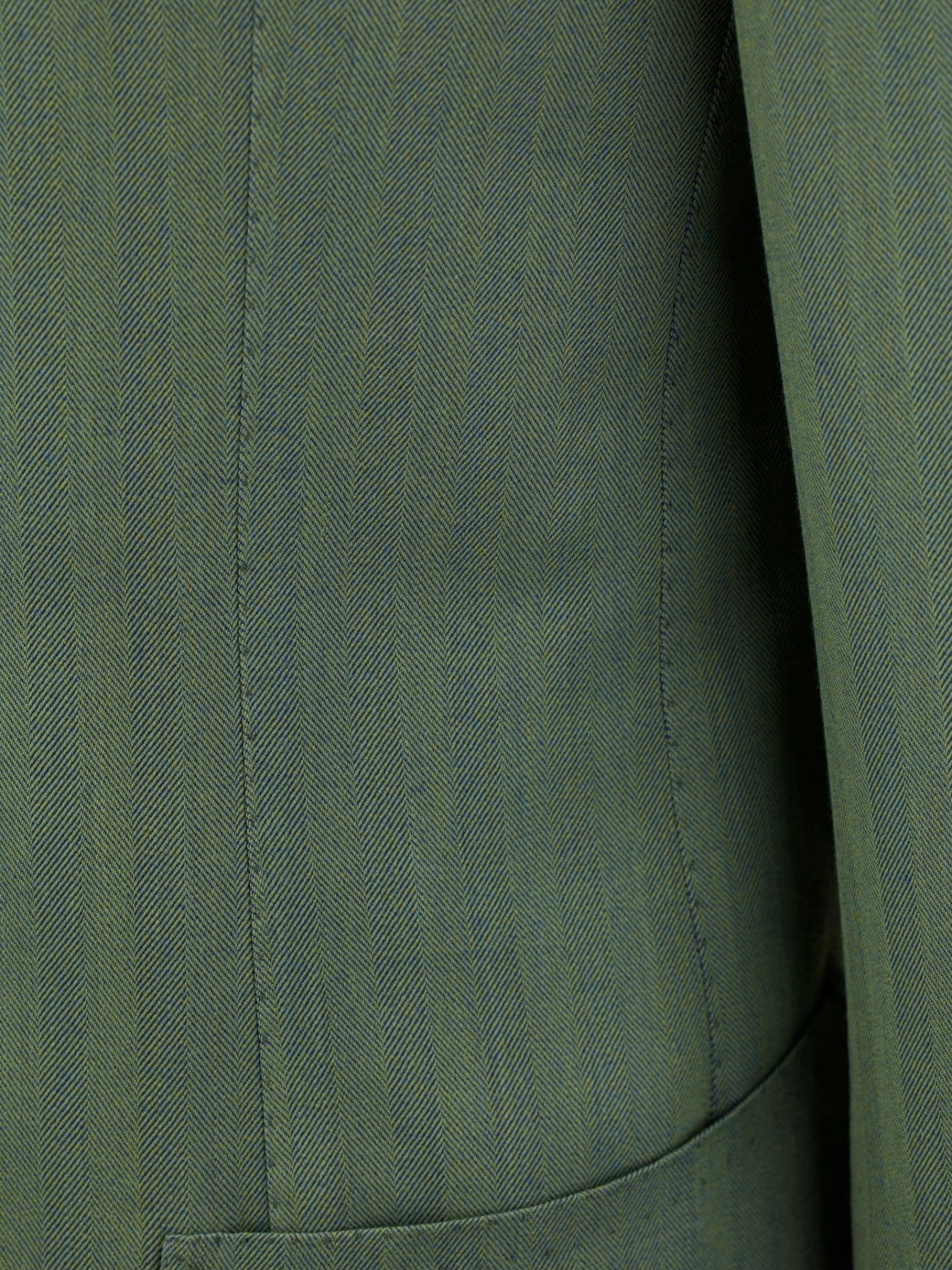 Neapolitan master tailors add two darts - think of them as pinched seams - to ensure the jacket’s body achieves a slim silhouette. The process, called mezzo punto riprese, is done entirely by hand.