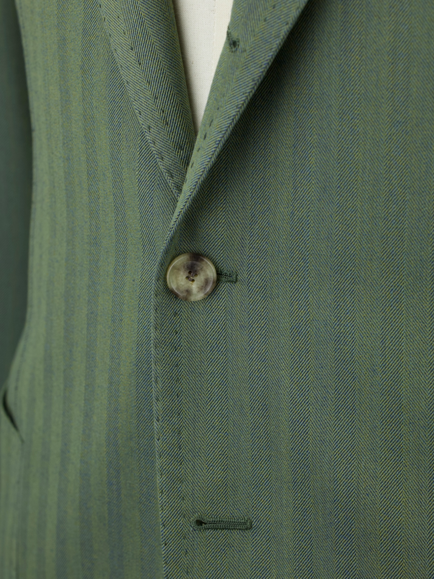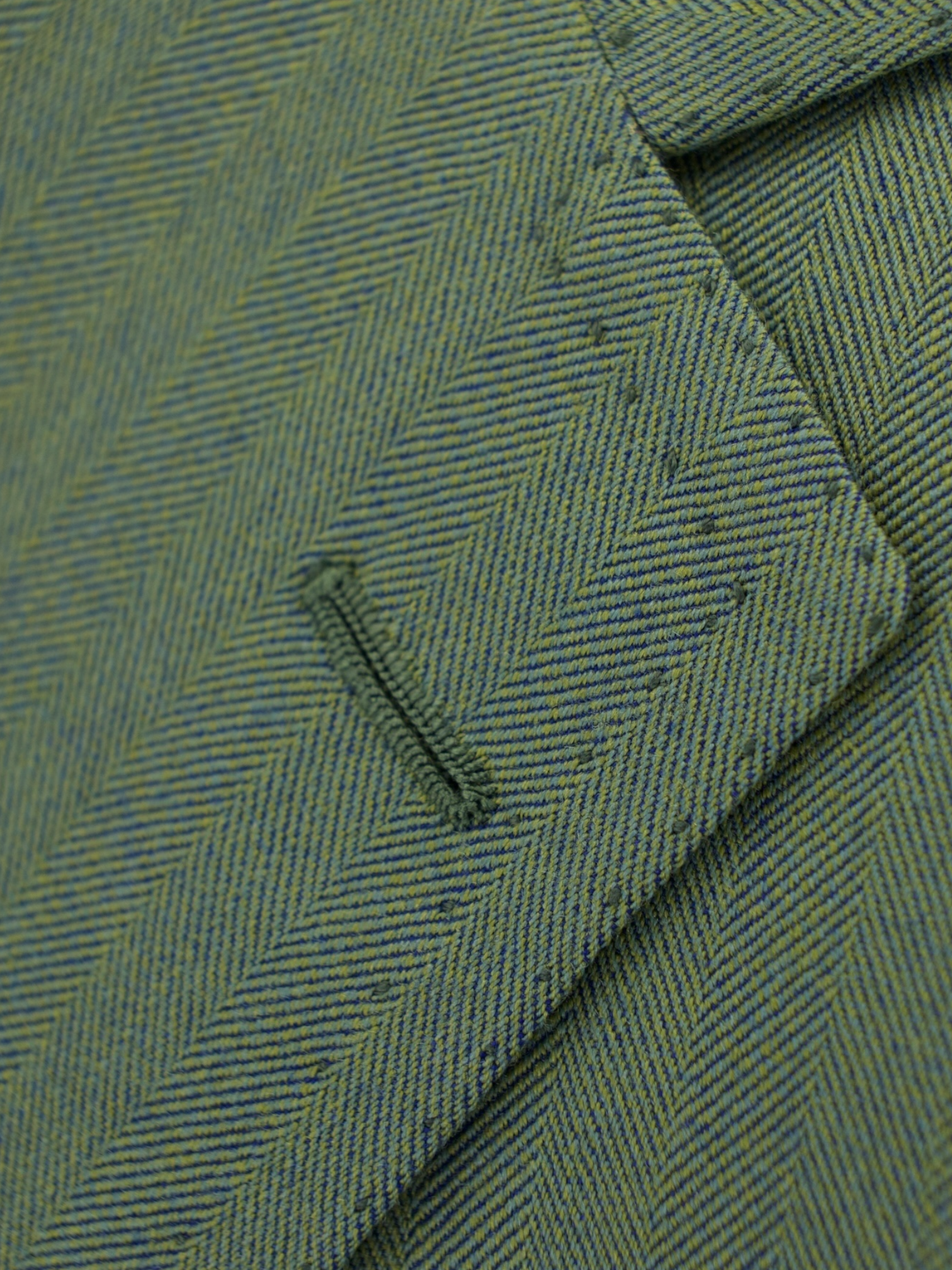 The ‘tre bottoni stirato a due’, also known as the three rolling on two lapel style, is perhaps the most infamous characteristic of the Neapolitan style jacket. The top button and buttonhole are ornamental, so are left unbuttoned. As the lapel rolls down it elegantly folds over the top button and stops just 4 cm above the second button creating the distinct roll of the lapel the style is known for. As it is intended to remain unbuttoned, the top buttonhole is actually made inside out so the beautiful side will still be visible.
