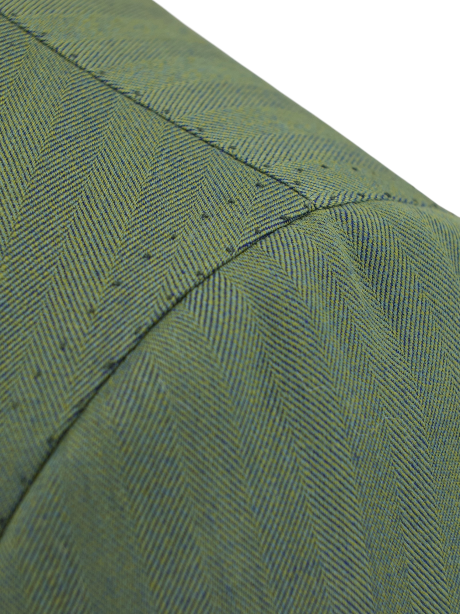 Spalla Camicia roughly translates to 'shirt sleeve' in Italian and is a shoulder style created and popularized by Neapolitan tailors. The name 'shirt sleeve' was so coined due to the characteristic shirring found at the sleeve's head where the fullness of the larger sleeve collapses. Rather than having the head of the sleeve turned back and stitched inside, the head is lapped under and stitched along the top.