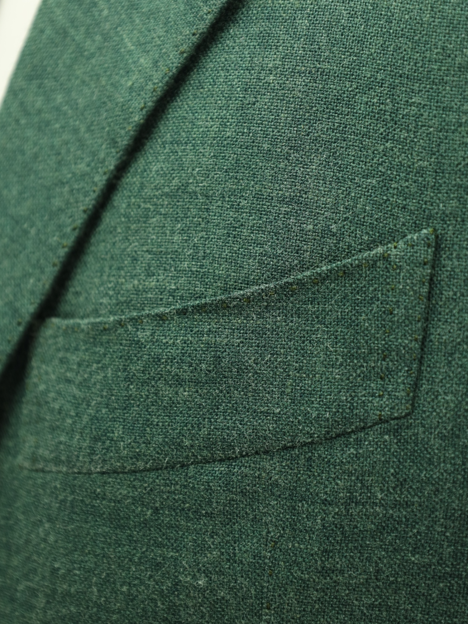 The barchetta pocket is often thought to be a tailoring detail exclusively from Italy. The word “barchetta” is Italian for “little boat.” It describes how the pocket floats on the chest, gently angled upwards, like the bow of a sailboat.