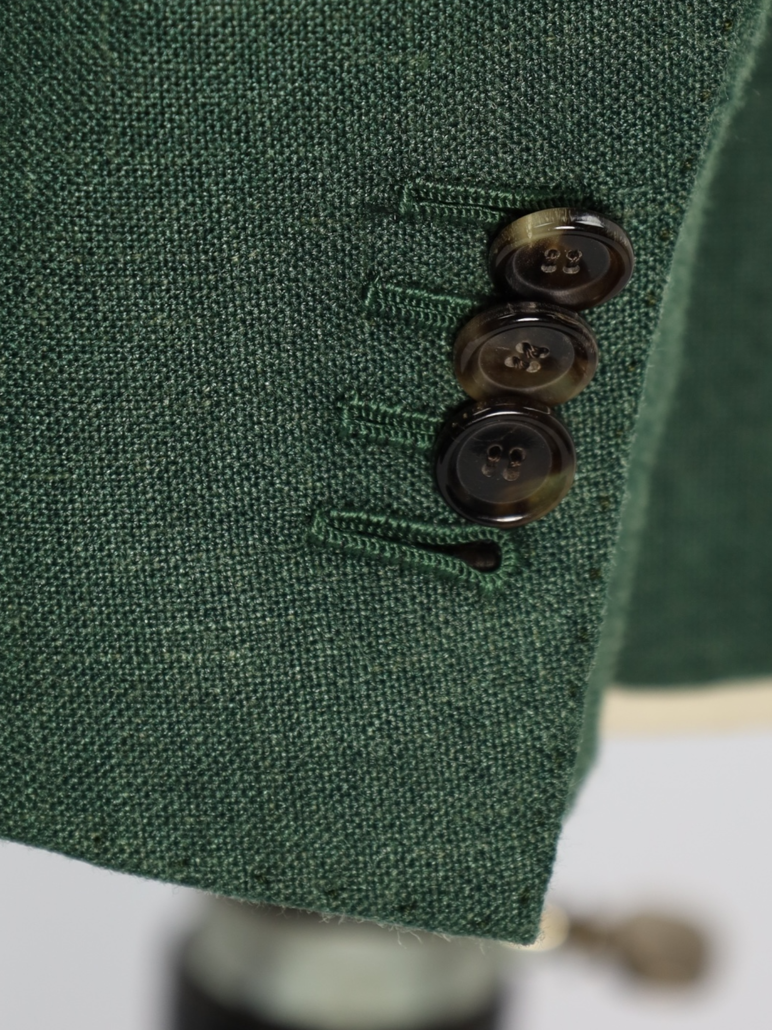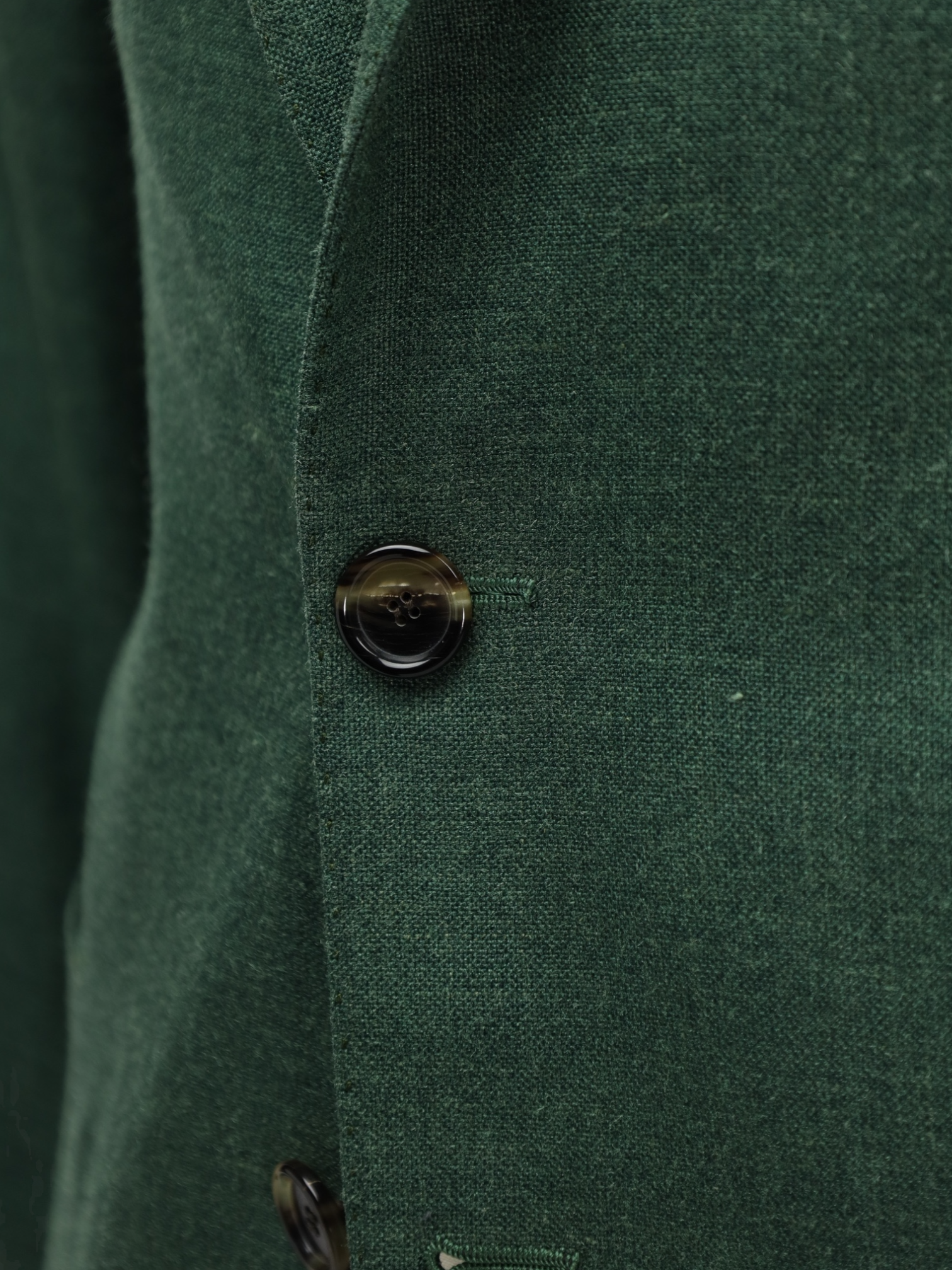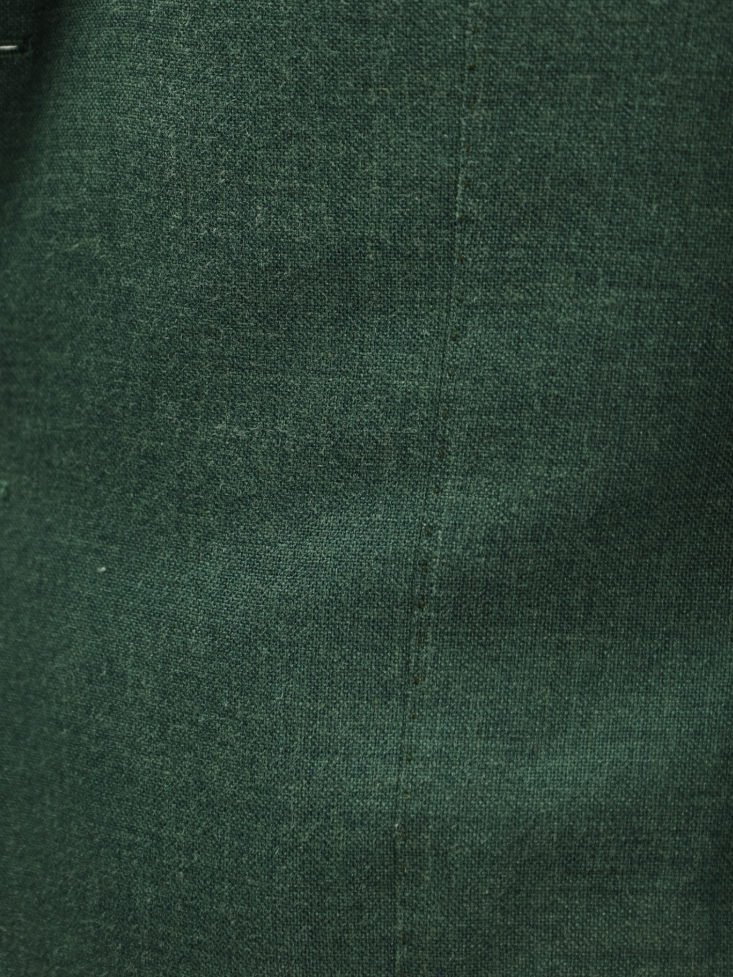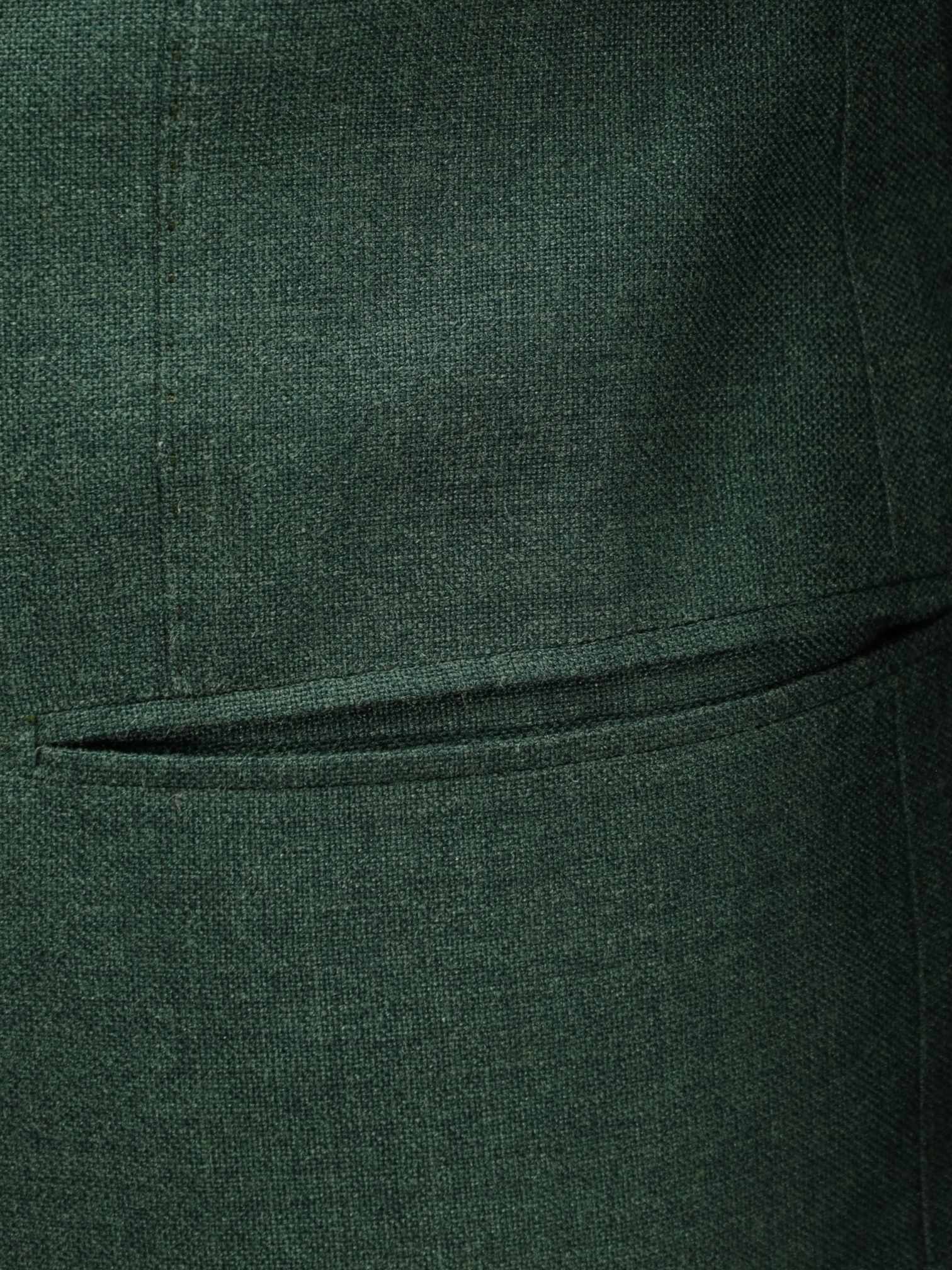 Unconstructed Neapolitan jacket crafted from wool, with notch lapels, jetted pockets, no split and - handmade - functioning buttonholes at the end of the sleeve. The shorter back and sleeves are a quintessential Neapolitan detail. Discover the elaborated sartorial details below.