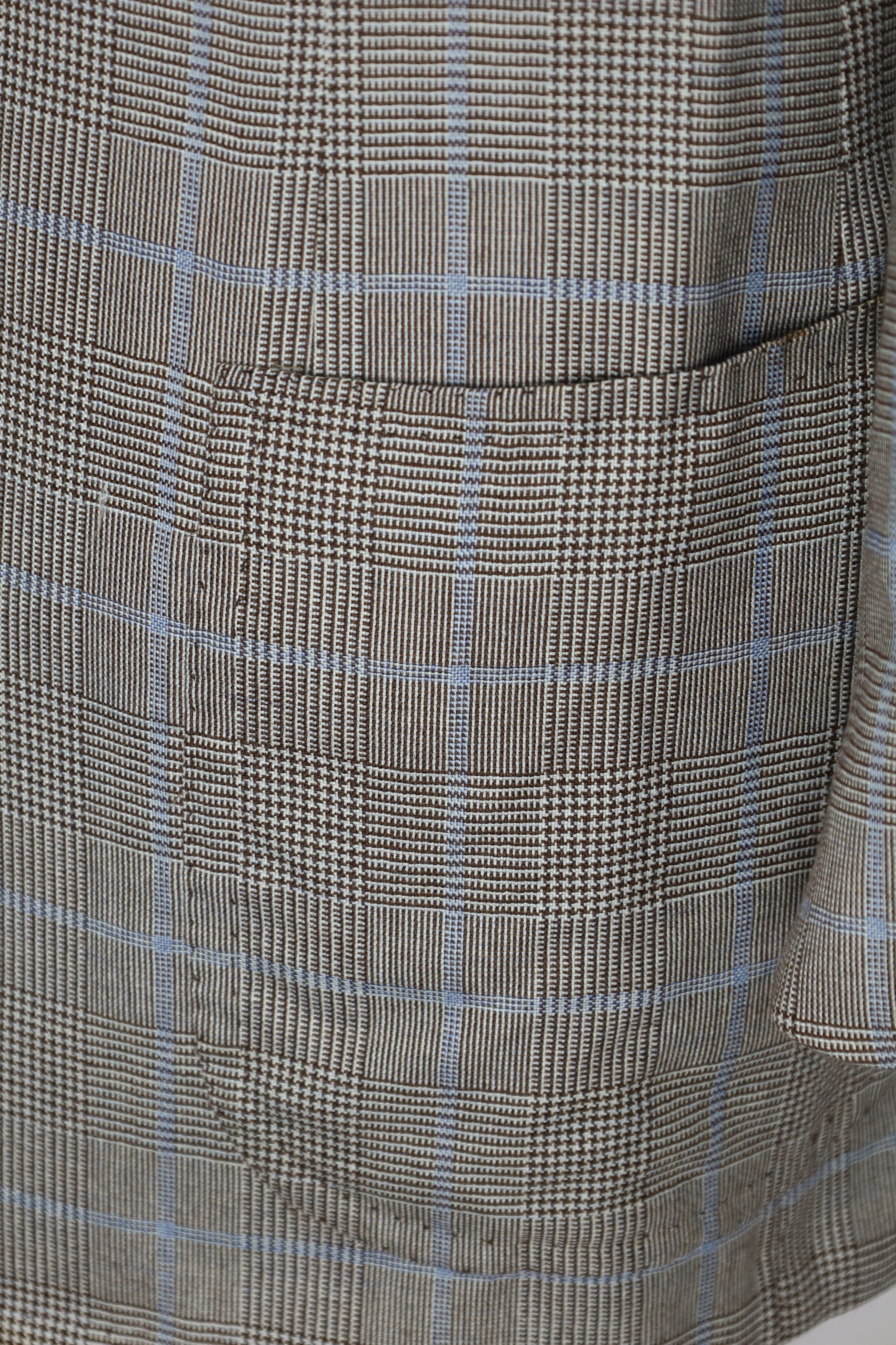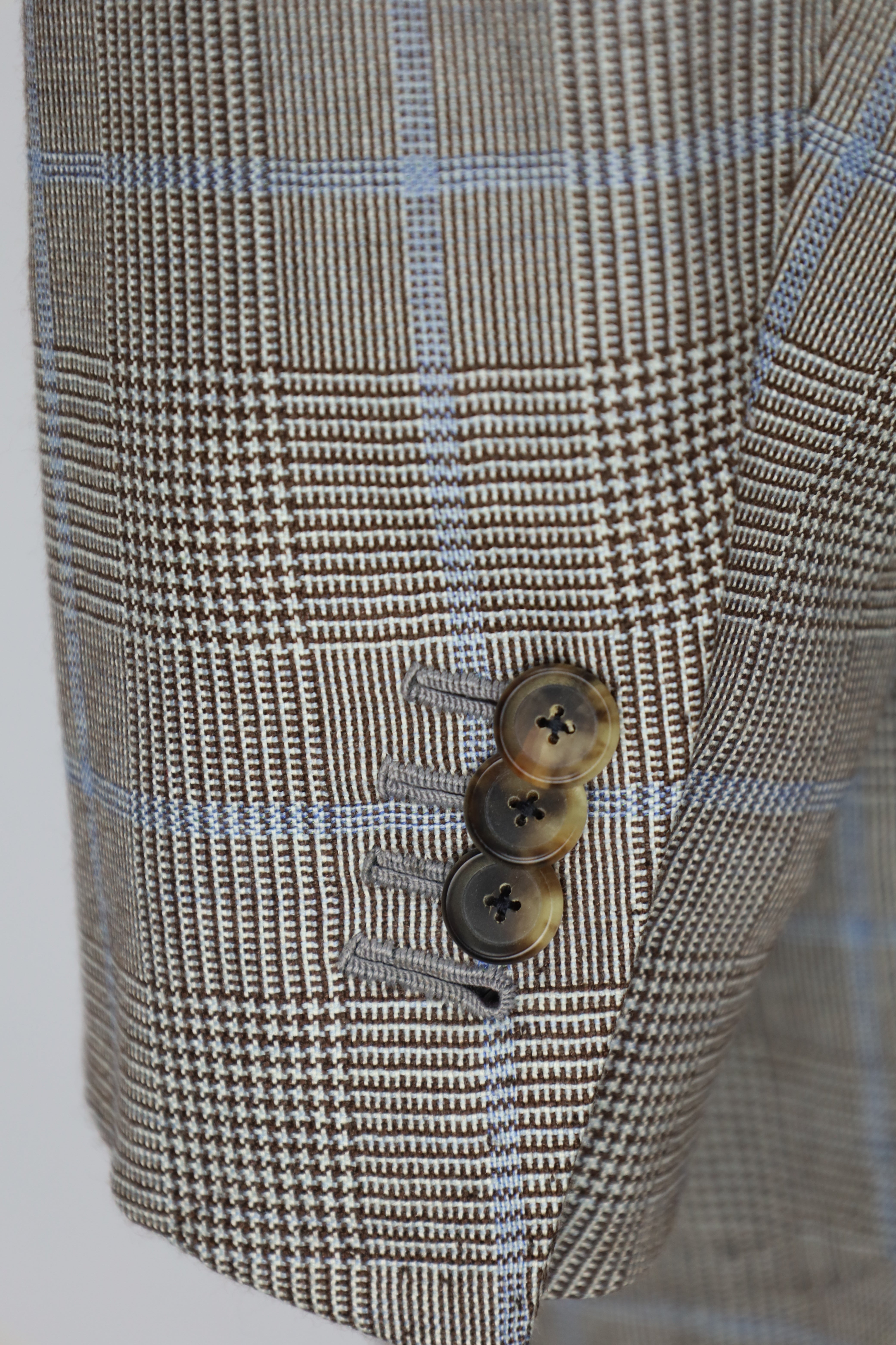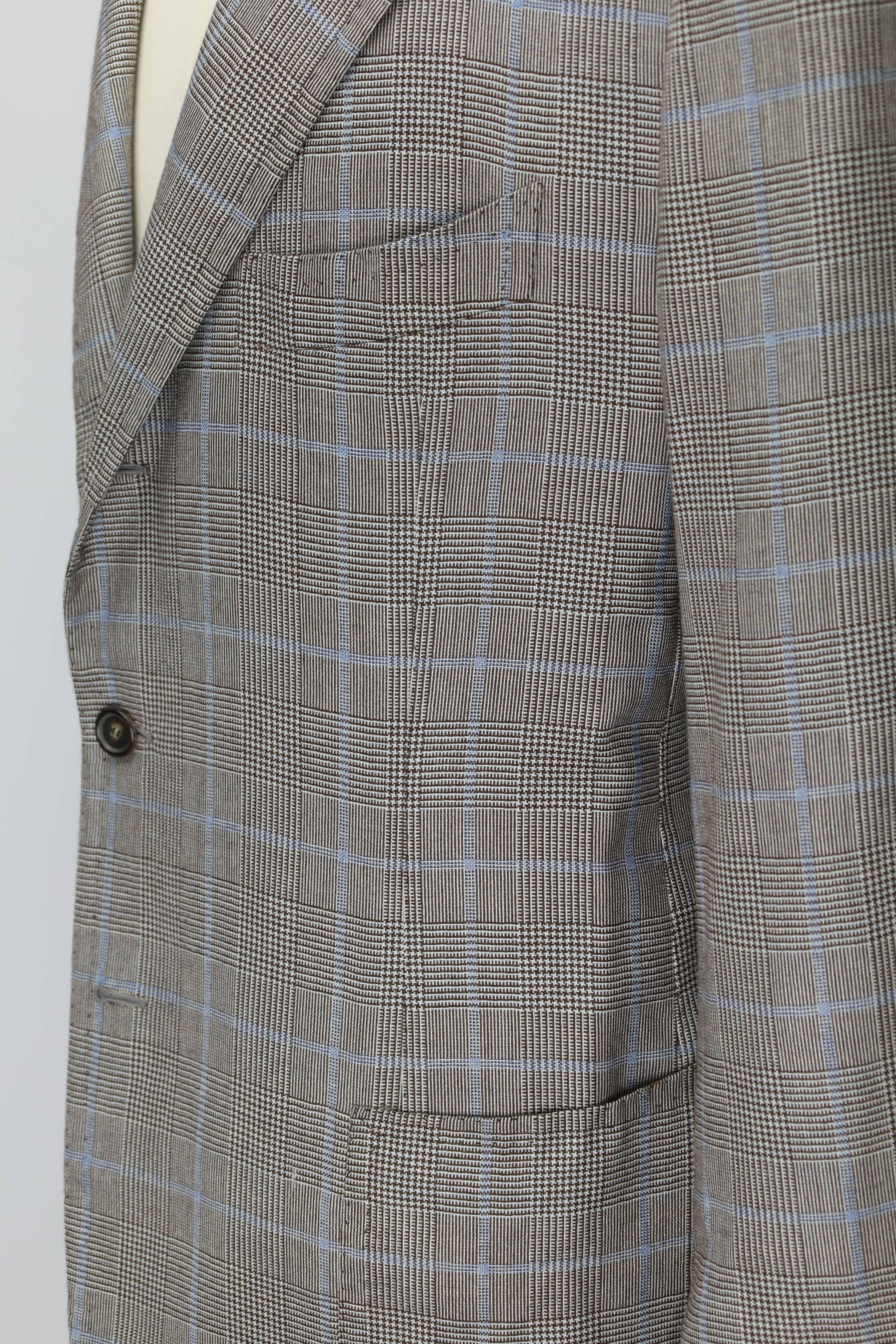 The Cesare Attolini Grey Cashmere & Silk Prince of Wales Check Jacket is a masterpiece that marries the softness of cashmere with the sheen of silk, adorned with the distinguished Prince of Wales check. This piece showcases the pinnacle of Italian tailoring with its meticulous "doppio impuntura" double pick stitching, casual yet sophisticated "tasca a pignata" patch pockets, and expertly crafted handmade buttonholes, making it an emblem of luxury and artisanal skill. Discover the elaborated sartorial details below.