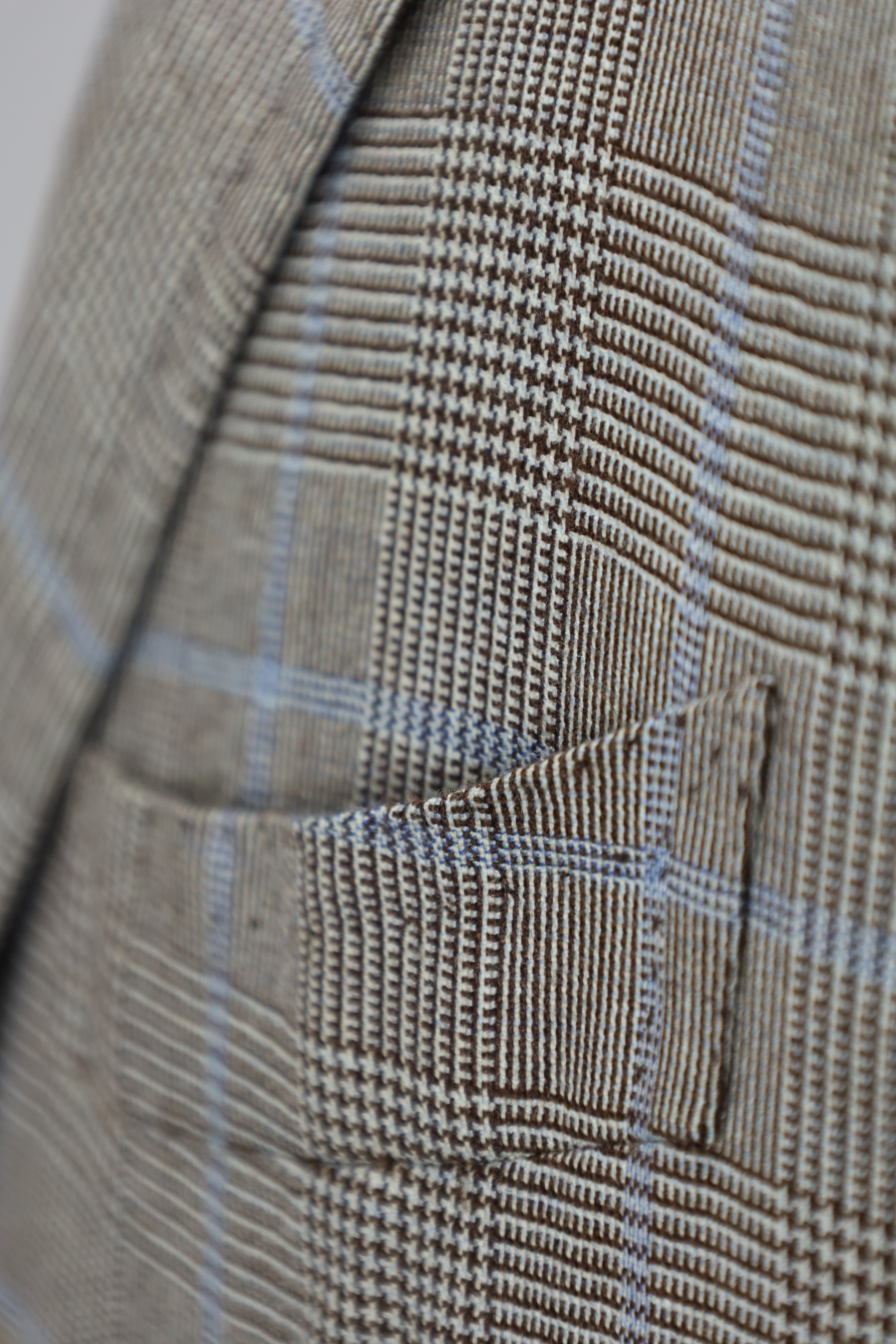 The barchetta pocket is often thought to be a tailoring detail exclusively from Italy. The word “barchetta” is Italian for “little boat.” It describes how the pocket floats on the chest, gently angled upwards, like the bow of a sailboat.