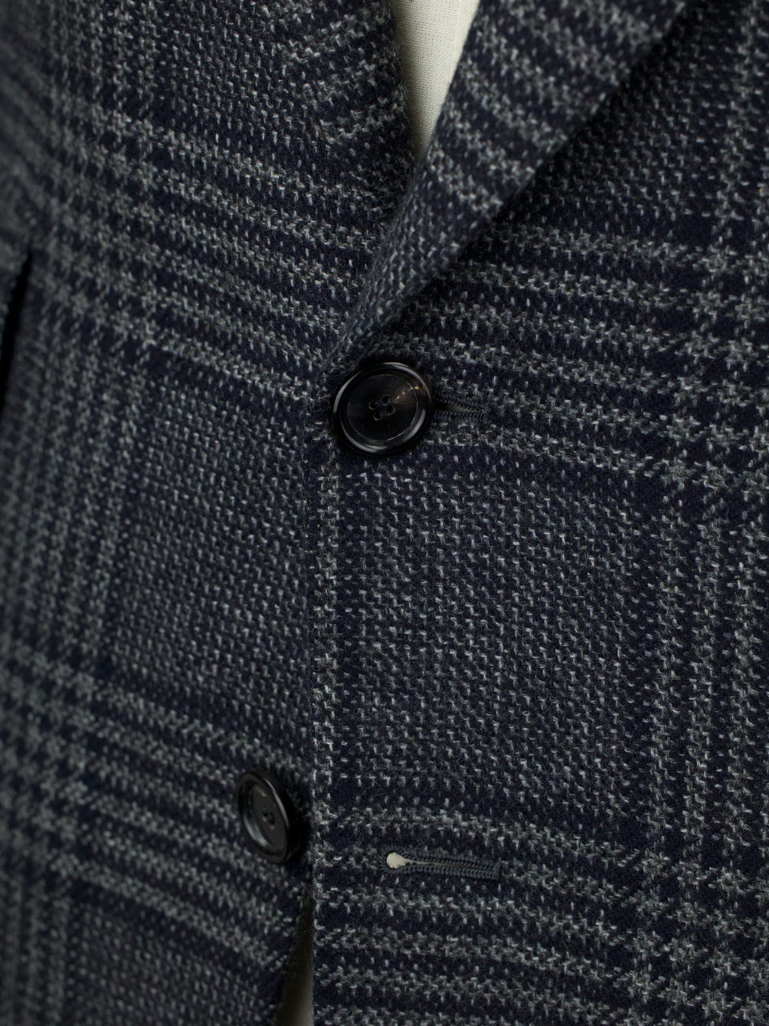 Also known as stacked buttons or waterfall buttons, kissing buttons are associated with Italian tailoring as Italian tailors make their jacket sleeve buttons in the kissing style. In this style, buttons touch each other and overlap one another. Handmade buttonholes; Even this step, apparently the simplest, is treated with an abundance of detail. Attaching the buttons is a job that requires patience and must be completed to perfection.