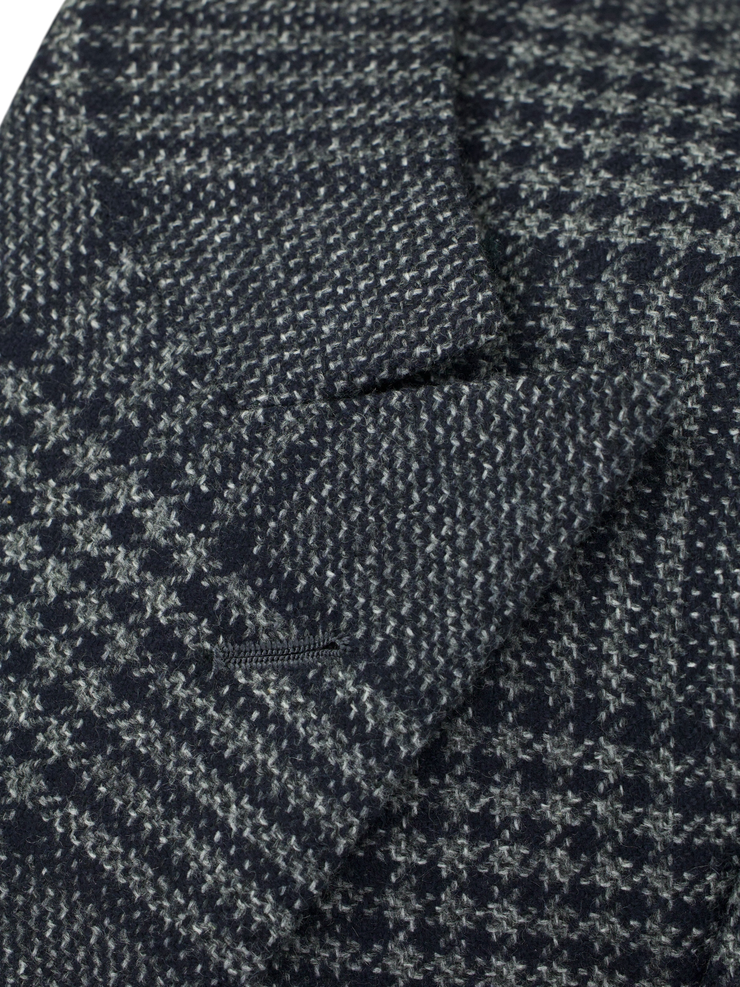 Discover the Cesare Attolini Grey Pure Cashmere Prince de Galles Jacket, a masterfully tailored piece that marries sartorial gravitas with the indulgent softness of pure cashmere. Woven in an intricate Prince de Galles check, the fabric has a rich, dimensional character—fluffy, plush, and remarkably soft to the touch. The subtle interplay of greys adds visual depth, while the peak lapels bring a touch of bold refinement. Designed with flap pockets and a right-side ticket pocket, the silhouette remains true to Attolini’s Neapolitan heritage, finished with a fully lined interior, handmade buttonholes, and polished horn buttons for an unmistakably elevated feel.