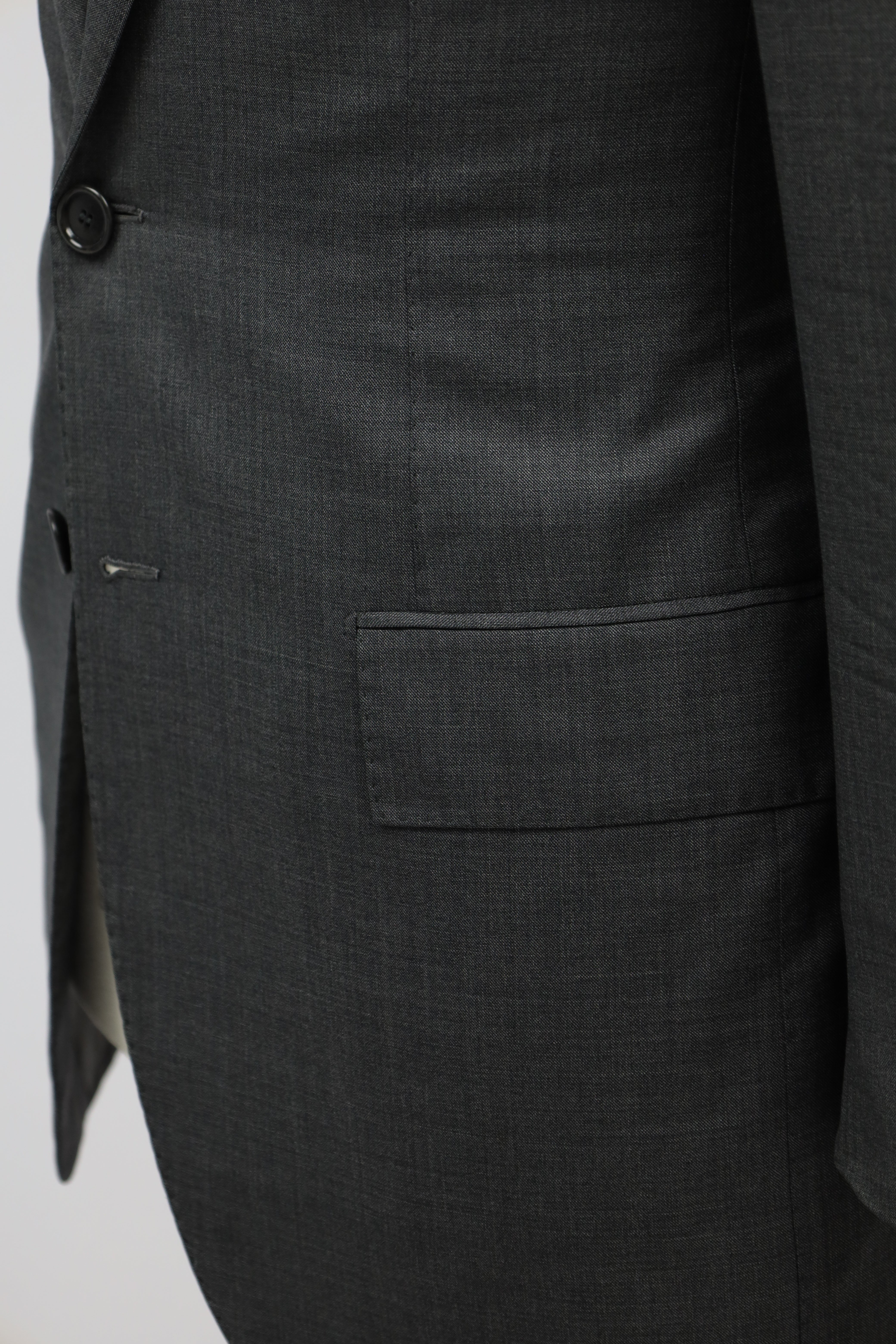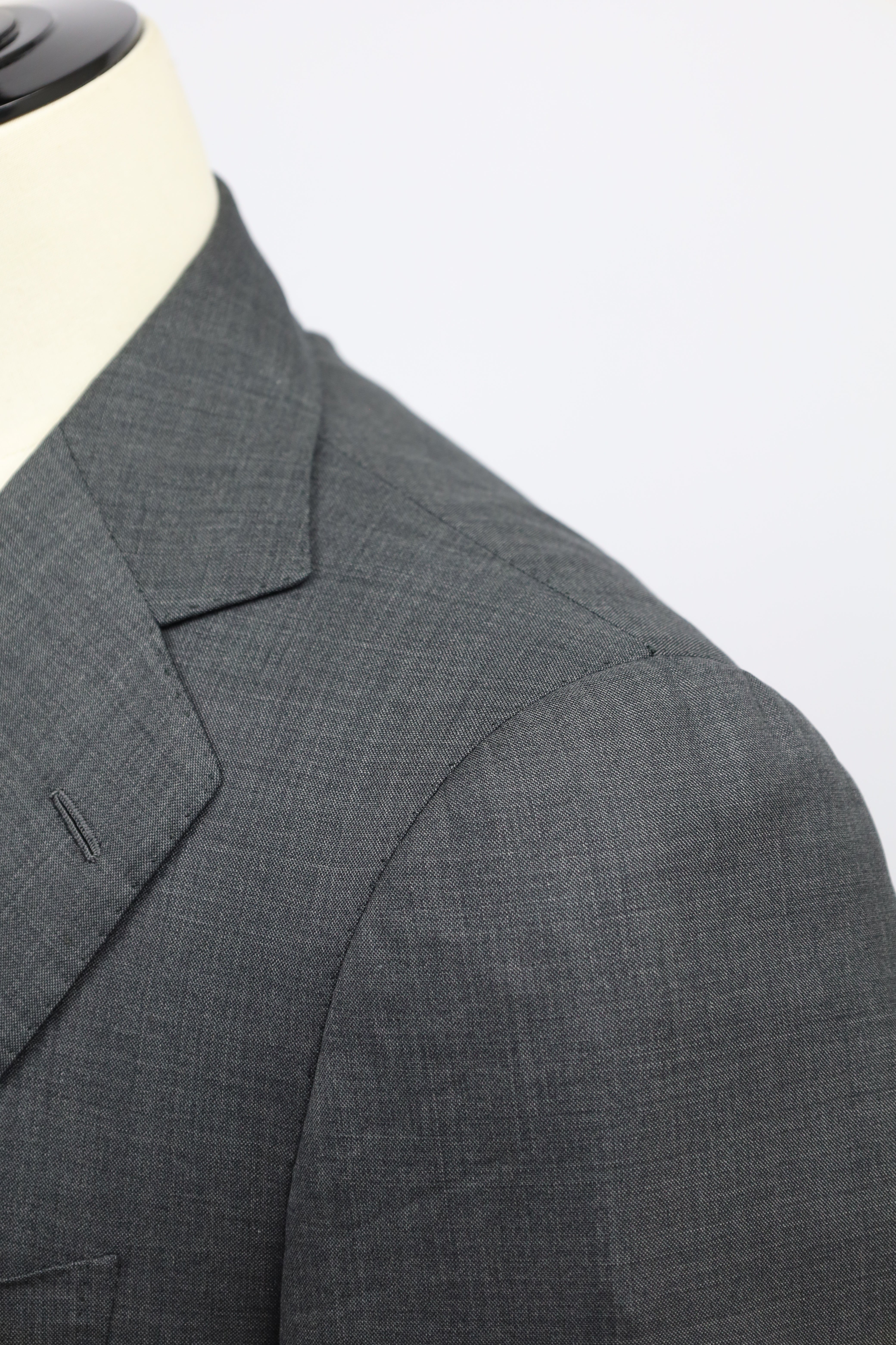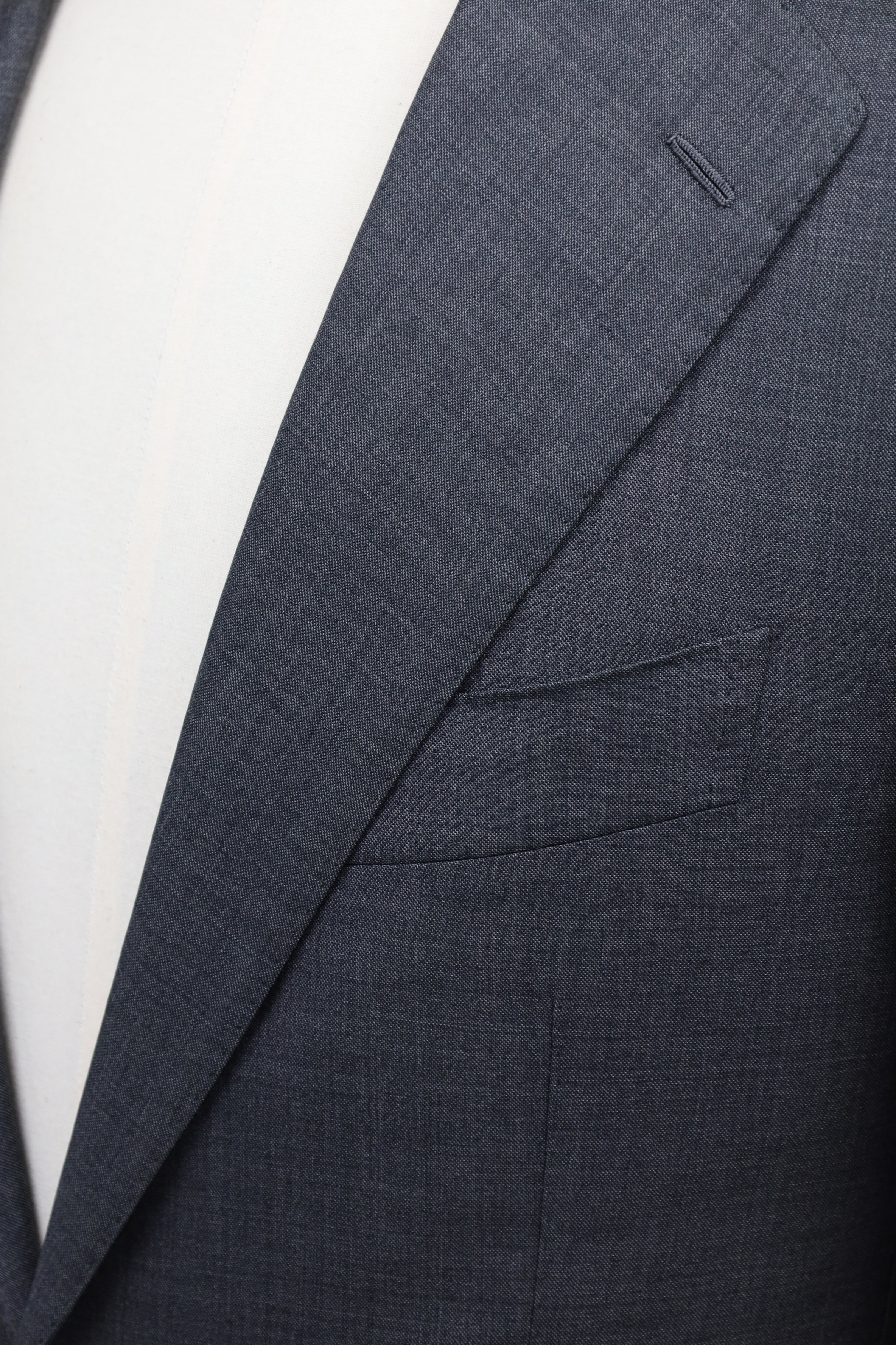 Handmade Neapolitan suit crafted from virgin wool, with notch lapels, flap pockets and handmade buttonholes - at the end of the sleeve. The jacket contains a La Spalla Camicia, which is a quintessential detail from the Neapolitan tailoring. Discover the elaborated sartorial details below.