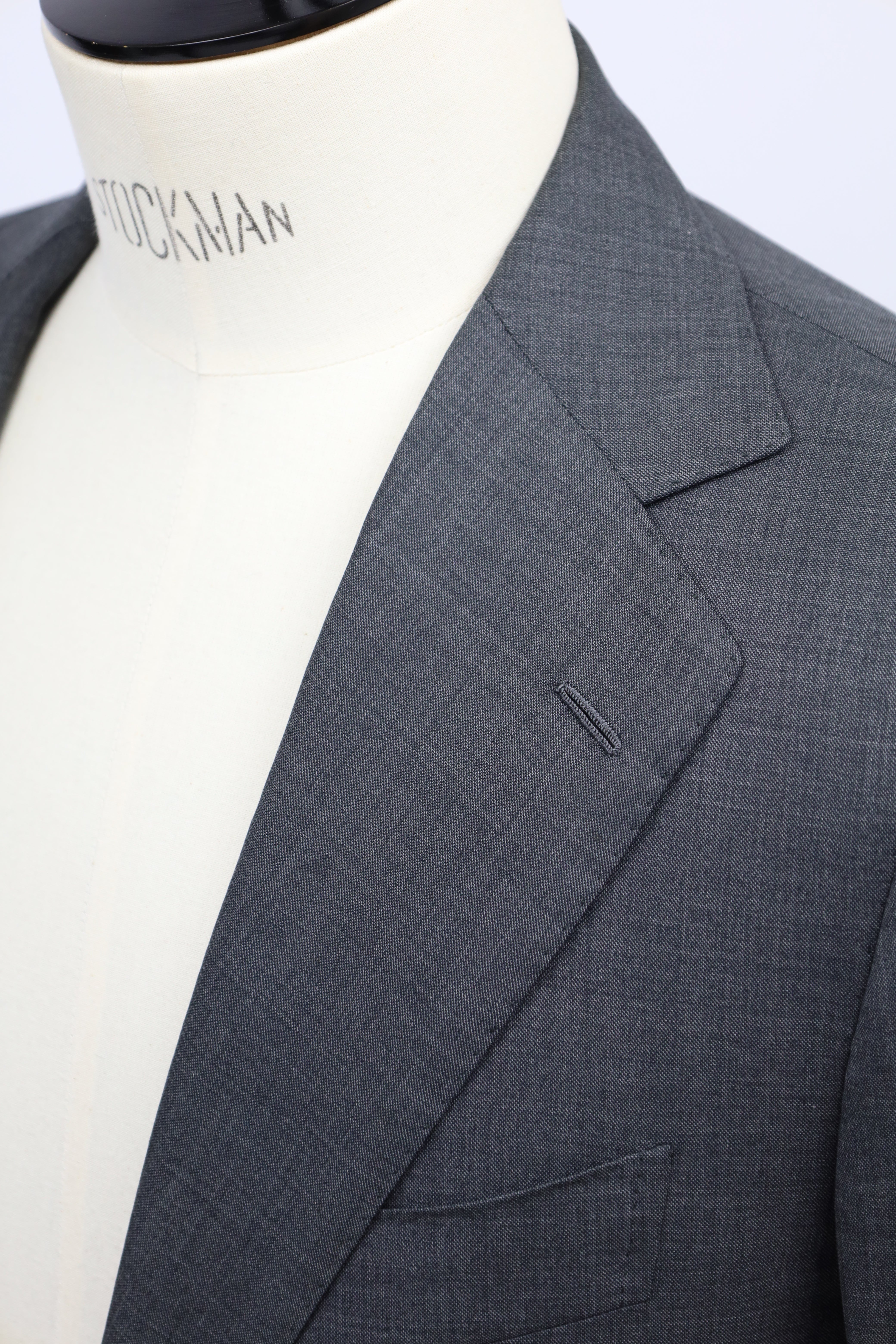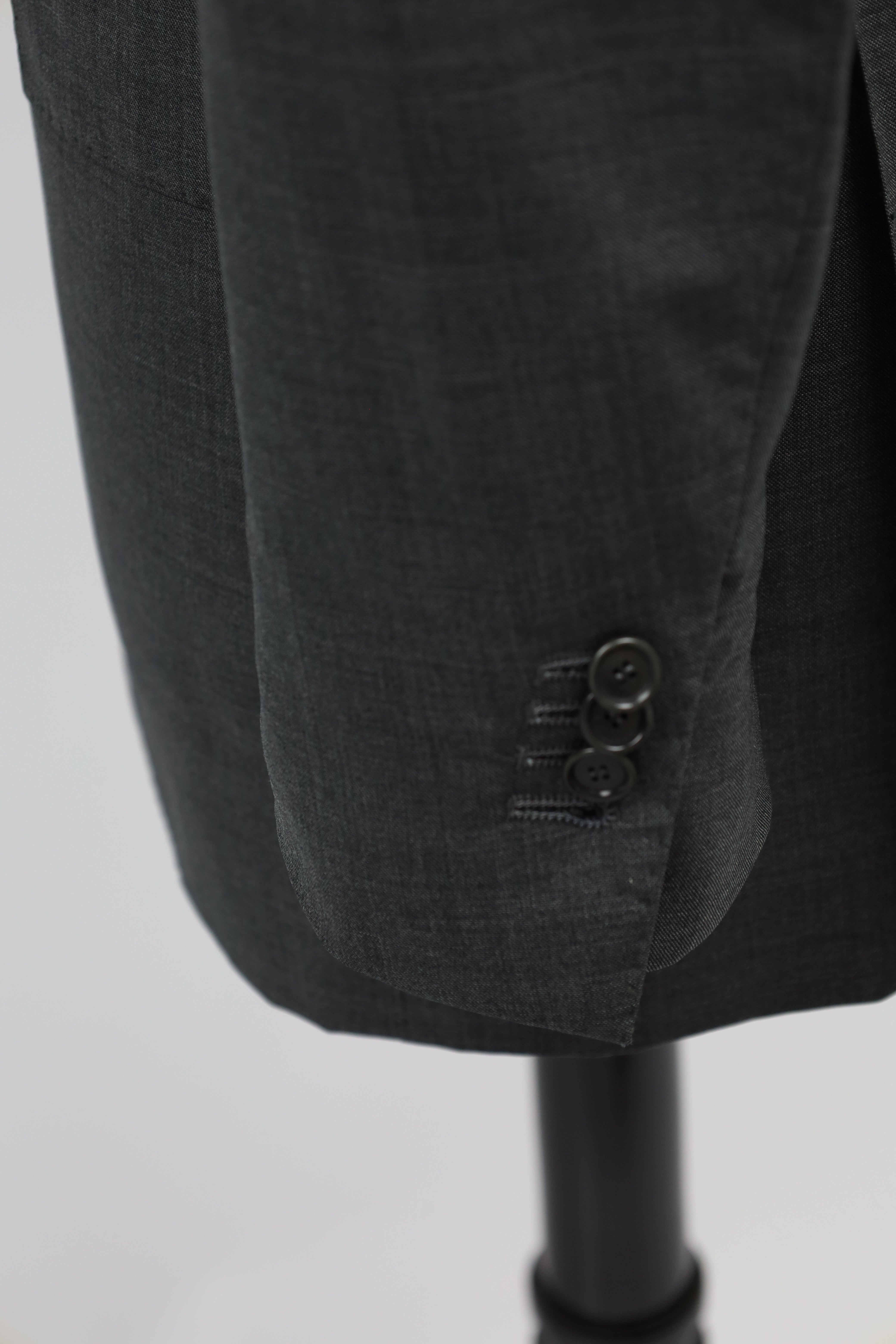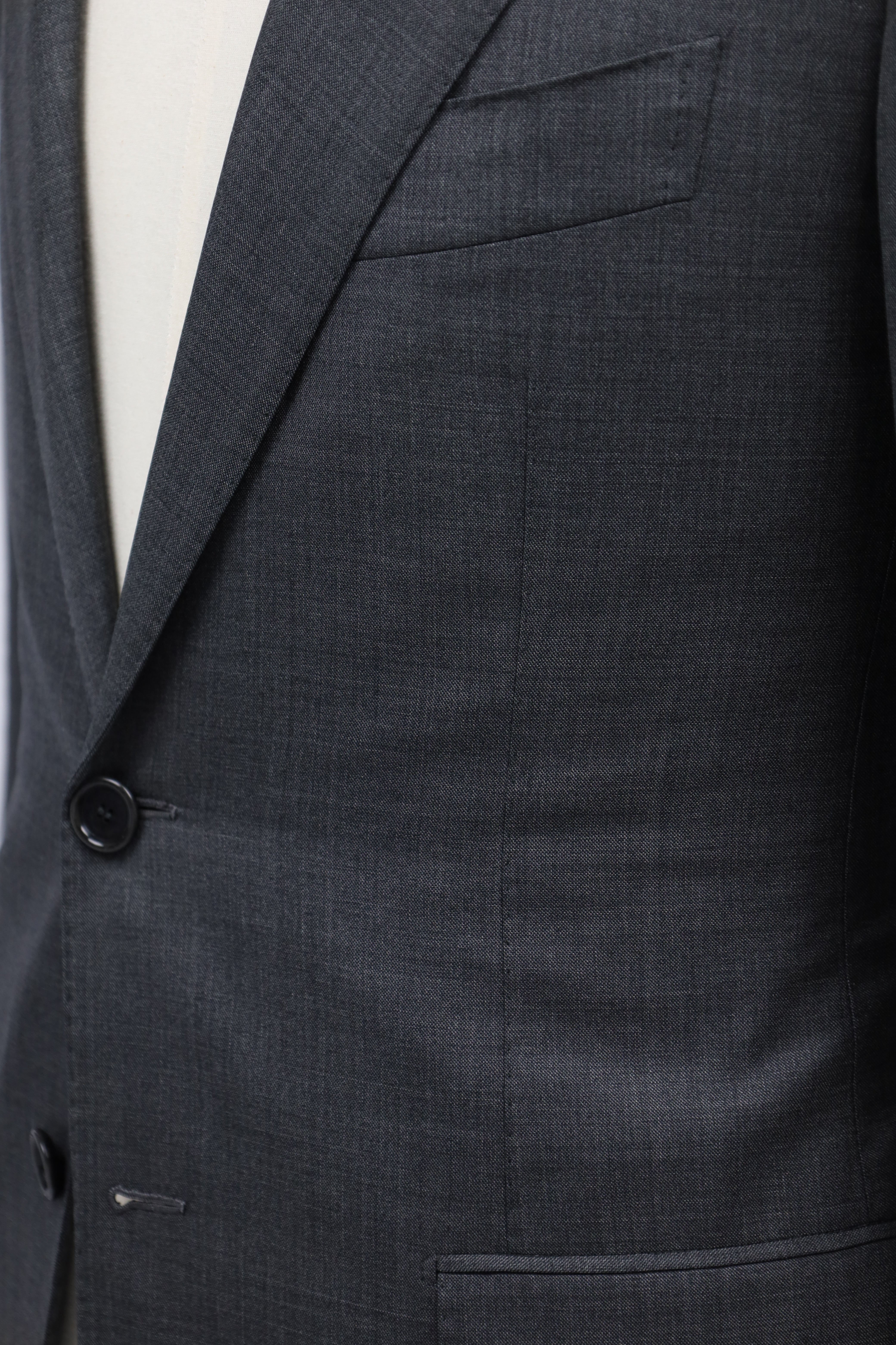Handmade Neapolitan suit crafted from virgin wool, with notch lapels, flap pockets and handmade buttonholes - at the end of the sleeve. The jacket contains a La Spalla Camicia, which is a quintessential detail from the Neapolitan tailoring. Discover the elaborated sartorial details below.