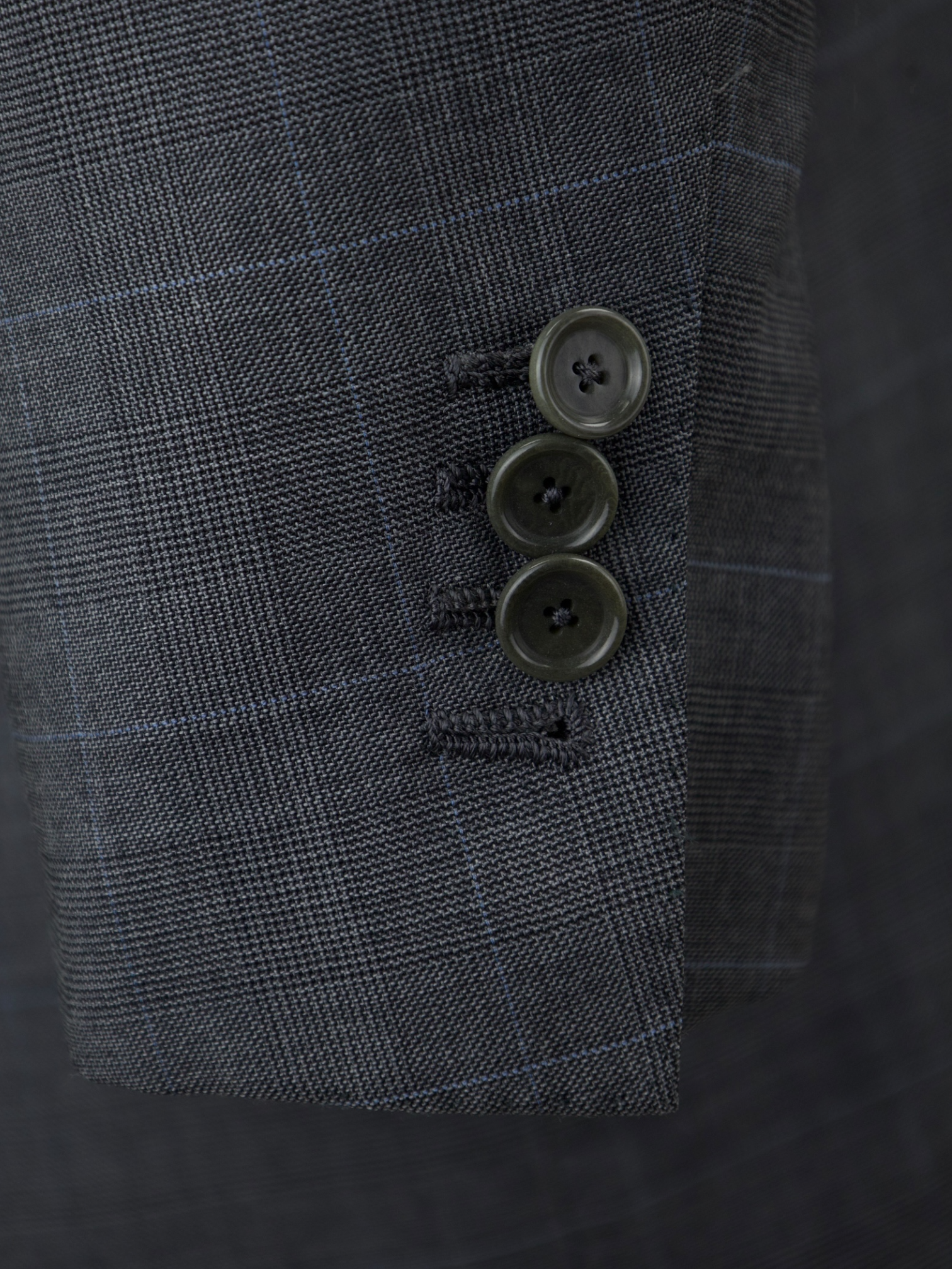 Also known as stacked buttons or waterfall buttons, kissing buttons are associated with Italian tailoring as Italian tailors make their jacket sleeve buttons in the kissing style. In this style, buttons touch each other and overlap one another. Handmade buttonholes; Even this step, apparently the simplest, is treated with an abundance of detail. Attaching the buttons is a job that requires patience and must be completed to perfection.