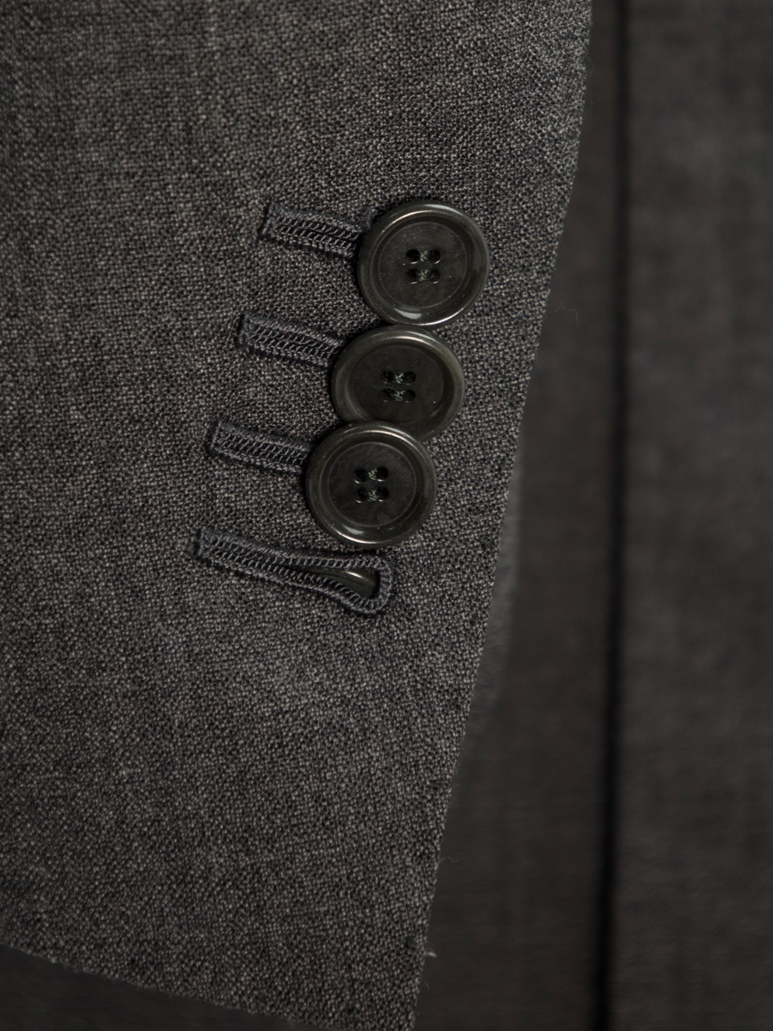 Also known as stacked buttons or waterfall buttons, kissing buttons are associated with Italian tailoring as Italian tailors make their jacket sleeve buttons in the kissing style. In this style, buttons touch each other and overlap one another. Handmade buttonholes; Even this step, apparently the simplest, is treated with an abundance of detail. Attaching the buttons is a job that requires patience and must be completed to perfection.
