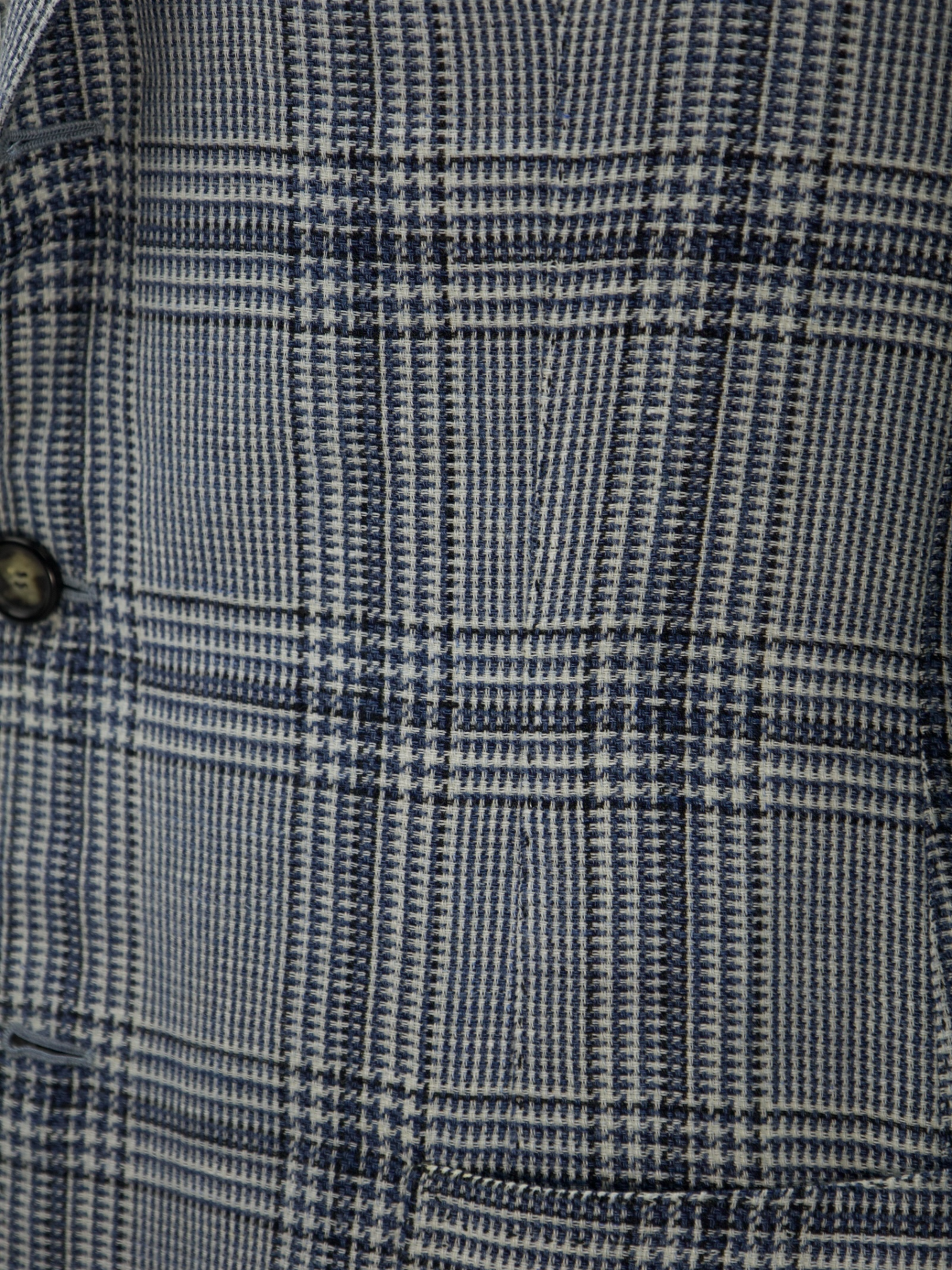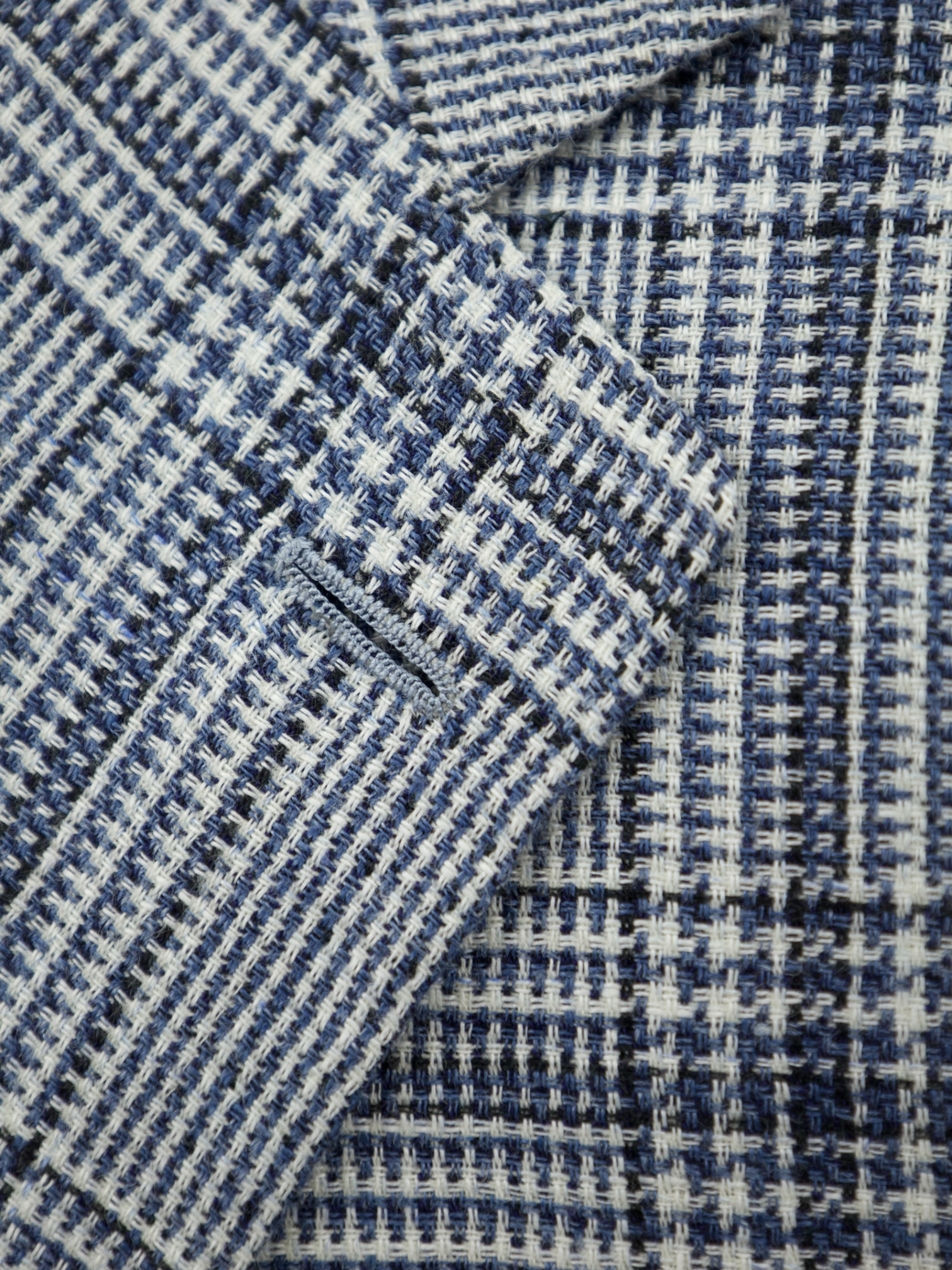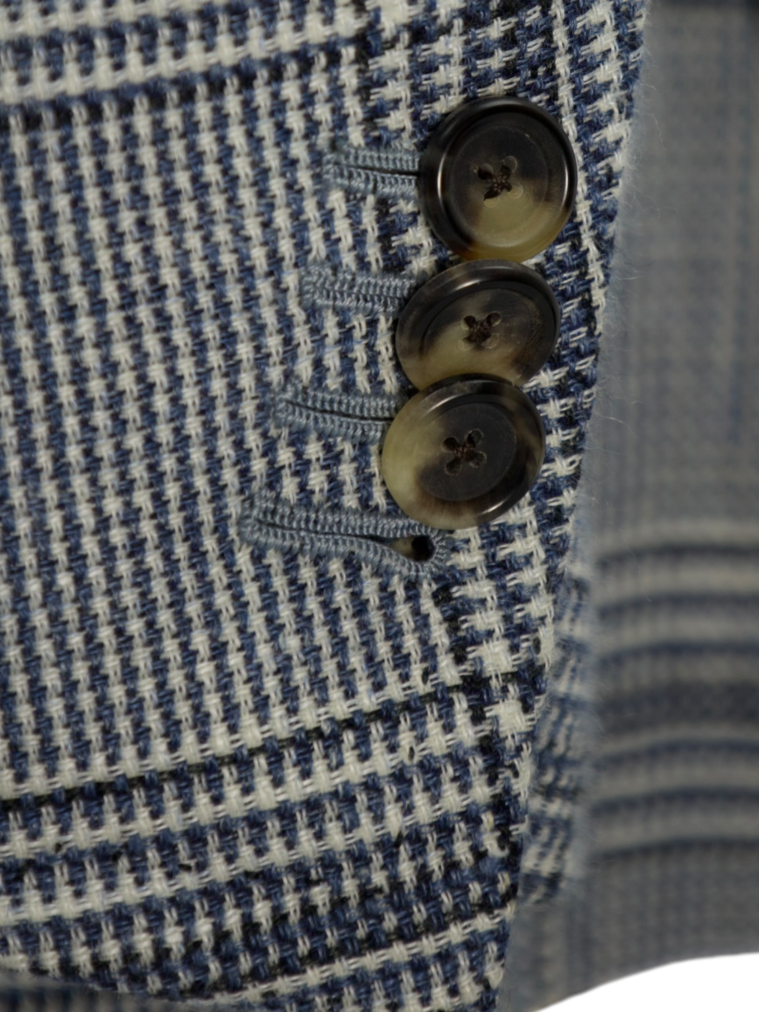 Cesare Attolini Ice Blue Linen & Wool Prince of Wales Check Jacket