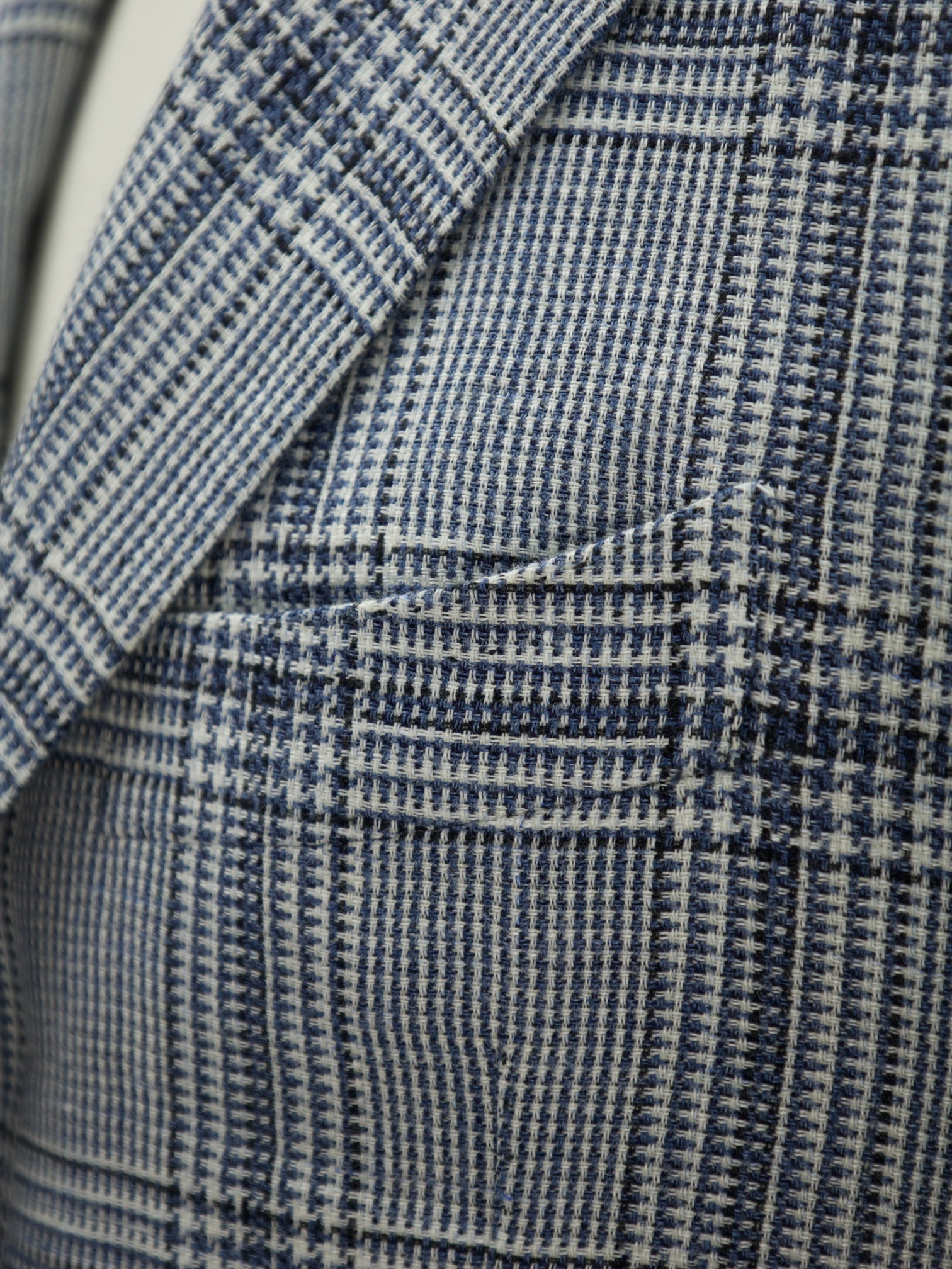 The barchetta pocket is often thought to be a tailoring detail exclusively from Italy. The word “barchetta” is Italian for “little boat.” It describes how the pocket floats on the chest, gently angled upwards, like the bow of a sailboat.