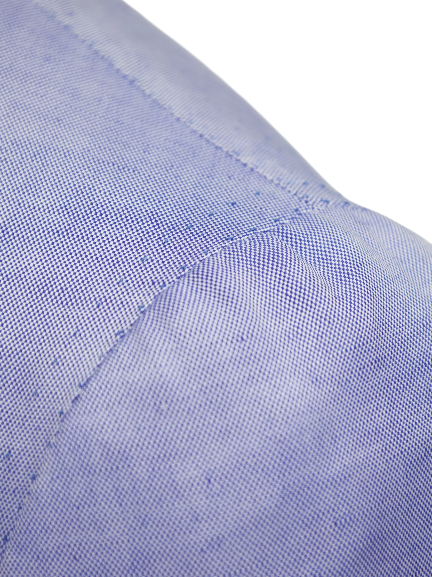 Spalla Camicia roughly translates to 'shirt sleeve' in Italian and is a shoulder style created and popularized by Neapolitan tailors. The name 'shirt sleeve' was so coined due to the characteristic shirring found at the sleeve's head where the fullness of the larger sleeve collapses. Rather than having the head of the sleeve turned back and stitched inside, the head is lapped under and stitched along the top.