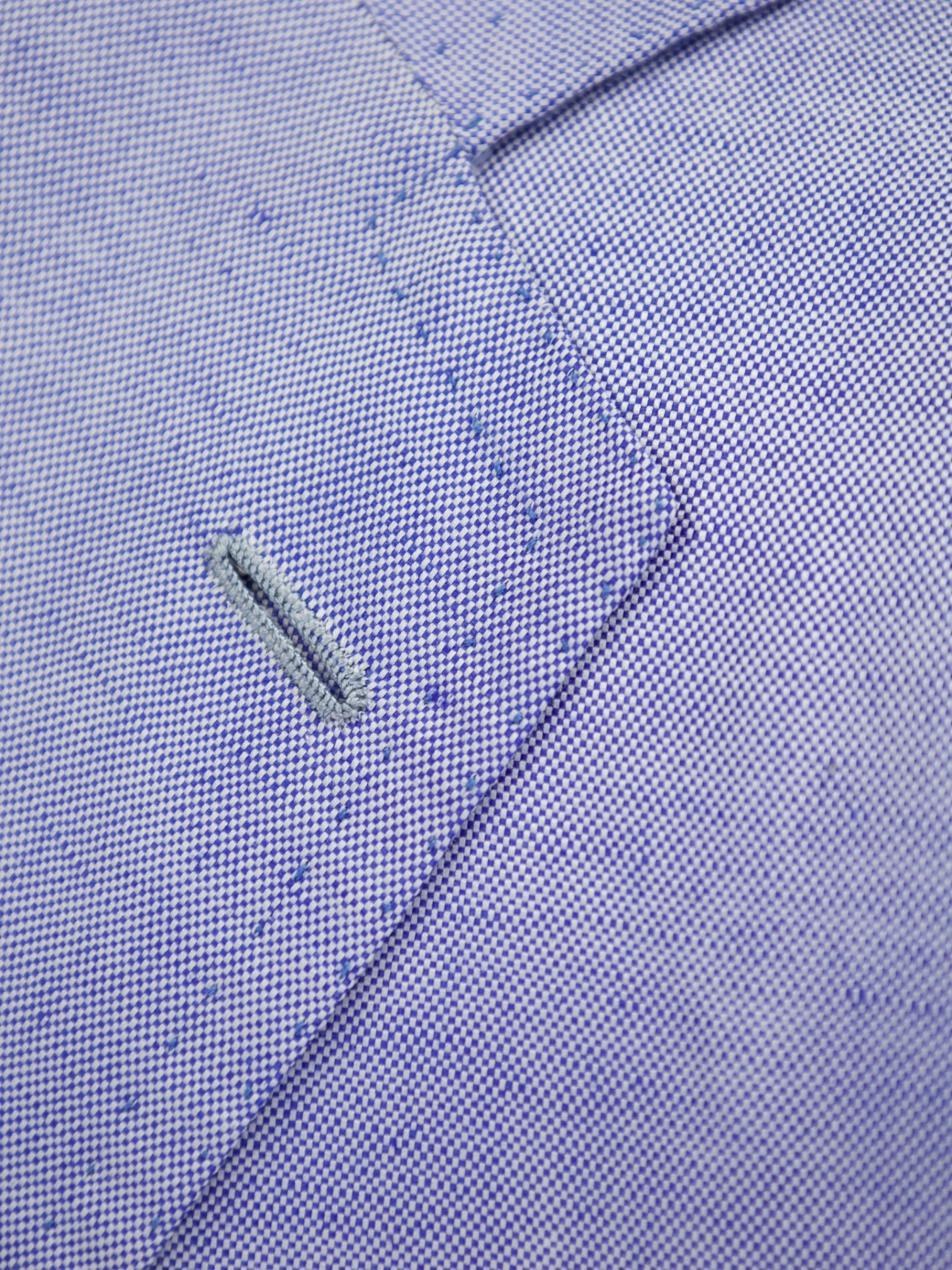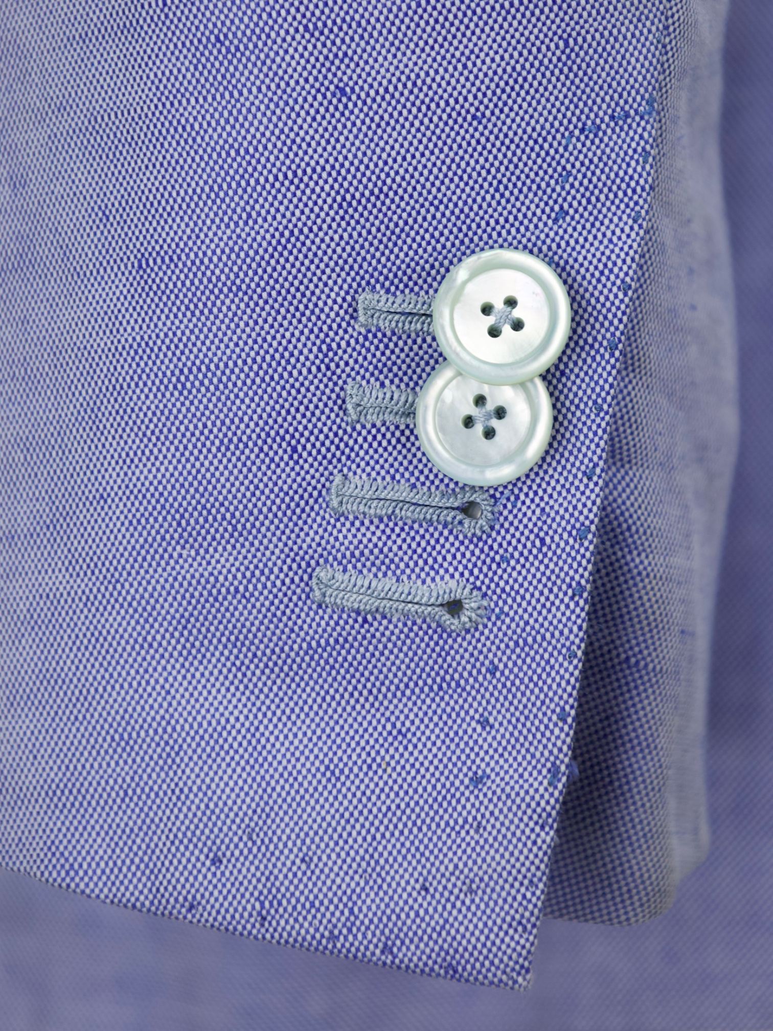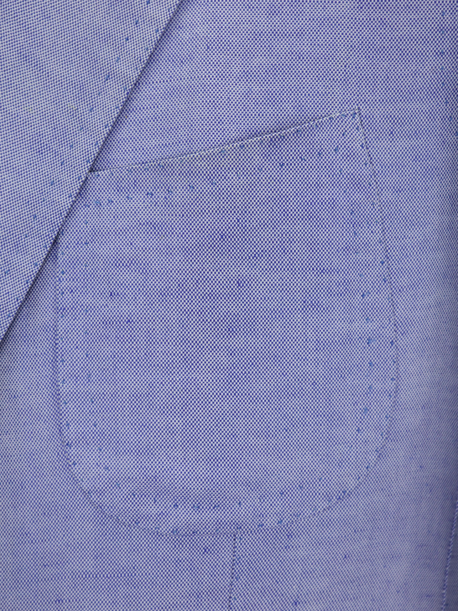 Handmade Neapolitan jacket crafted from a lightweight linen and cotton blend, with notch lapels, tasca a pignata patch pockets and - handmade - functioning buttonholes at the end of the sleeve. The slightly shorter back and sleeves are a quintessential Neapolitan detail. Discover the elaborated sartorial details below.