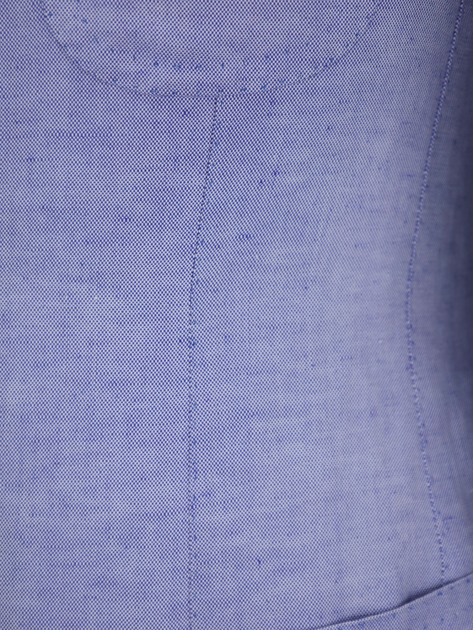 Neapolitan master tailors add two darts - think of them as pinched seams - to ensure the jacket’s body achieves a slim silhouette. The process, called mezzo punto riprese, is done entirely by hand.