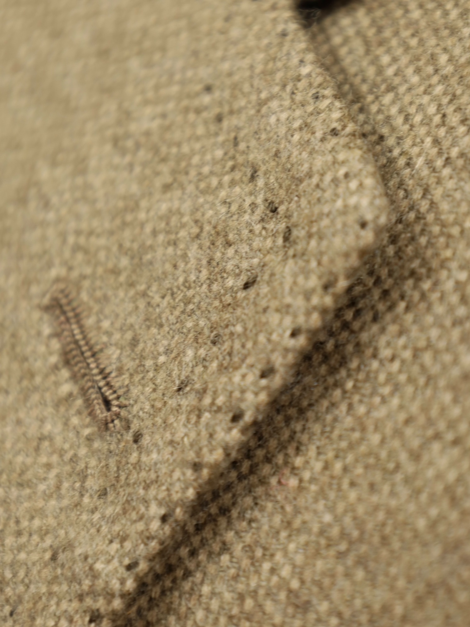 The ‘tre bottoni stirato a due’, also known as the three rolling on two lapel style, is perhaps the most infamous characteristic of the Neapolitan style jacket. The top button and buttonhole are ornamental, so are left unbuttoned. As the lapel rolls down it elegantly folds over the top button and stops just 4 cm above the second button creating the distinct roll of the lapel the style is known for. As it is intended to remain unbuttoned, the top buttonhole is actually made inside out so the beautiful side will still be visible.