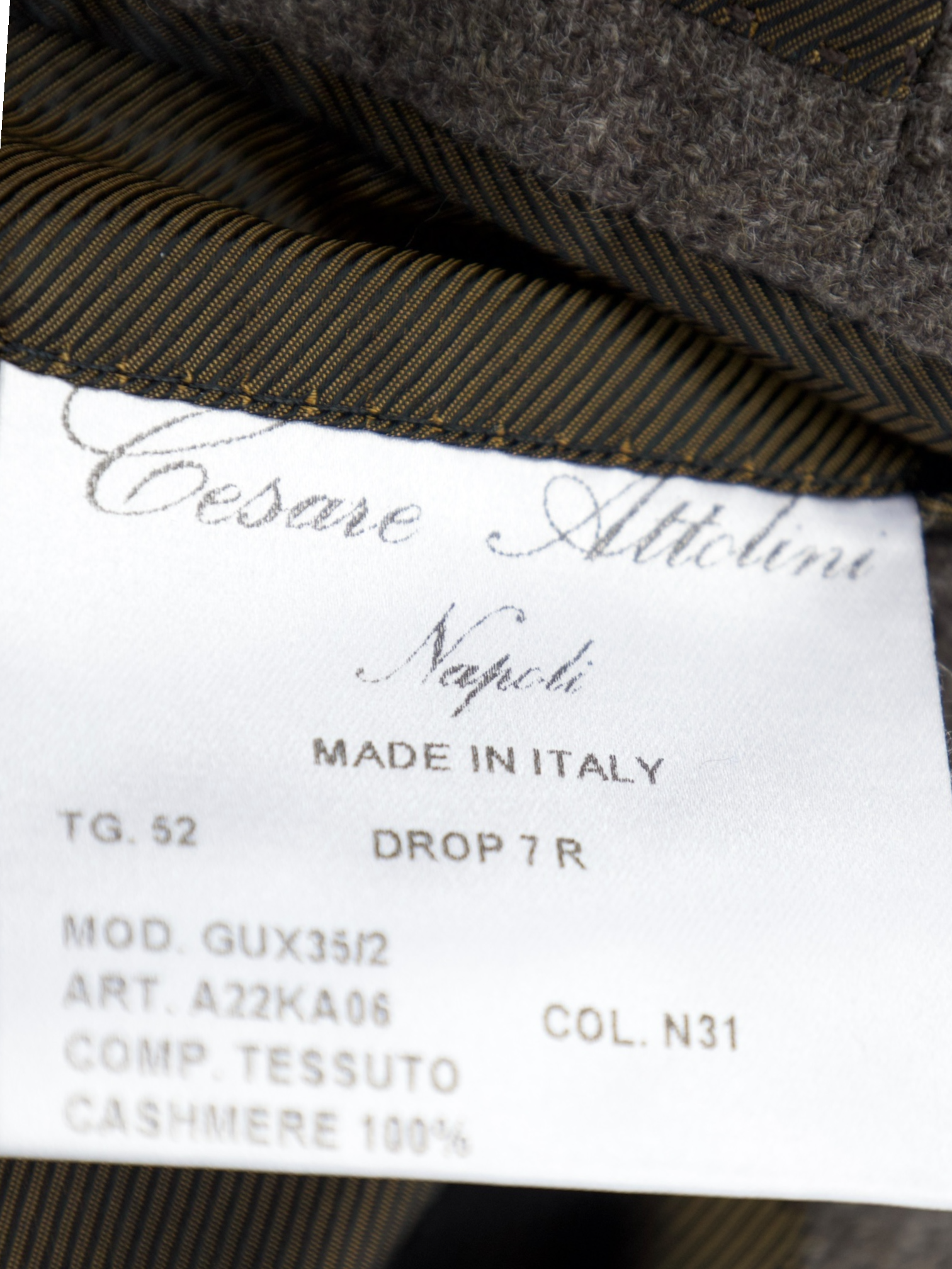 Handcrafted in Naples, this jacket embodies Cesare Attolini’s unrivaled dedication to sartorial excellence. The luxurious cashmere ensures exceptional softness and a natural drape, while the meticulous hand-stitching and precise detailing reflect the brand’s tradition of bespoke tailoring. The micro-structure weave enhances its visual appeal, showcasing the artistry that defines true Italian luxury. A versatile addition to any gentleman's wardrobe, this jacket is a testament to refined style. Discover the elaborated sartorial details below.
