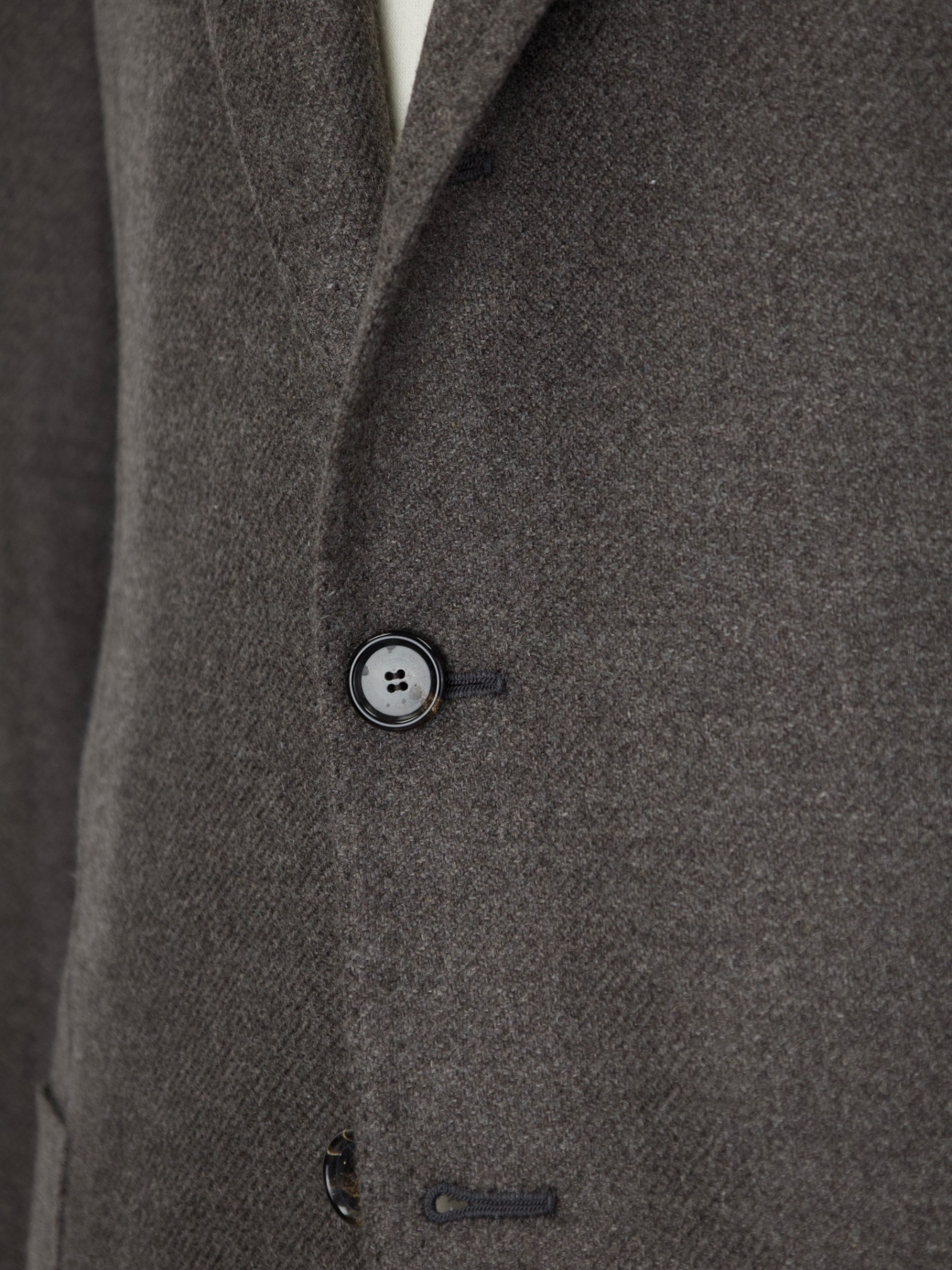 The ‘tre bottoni stirato a due’, also known as the three rolling on two lapel style, is perhaps the most infamous characteristic of the Neapolitan style jacket. The top button and buttonhole are ornamental, so are left unbuttoned. As the lapel rolls down it elegantly folds over the top button and stops just 4 cm above the second button creating the distinct roll of the lapel the style is known for. As it is intended to remain unbuttoned, the top buttonhole is actually made inside out so the beautiful side will still be visible.