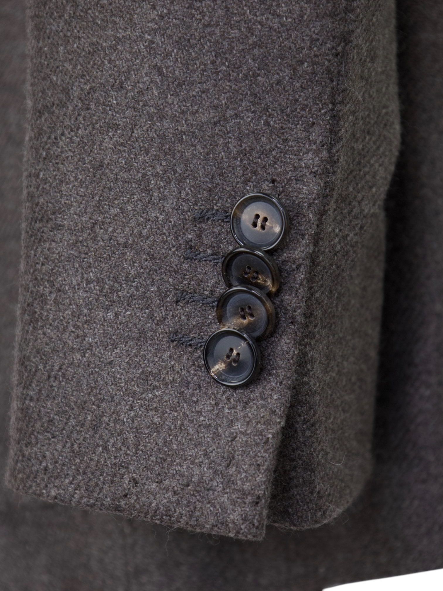 Also known as stacked buttons or waterfall buttons, kissing buttons are associated with Italian tailoring as Italian tailors make their jacket sleeve buttons in the kissing style. In this style, buttons touch each other and overlap one another. Handmade buttonholes; Even this step, apparently the simplest, is treated with an abundance of detail. Attaching the buttons is a job that requires patience and must be completed to perfection.