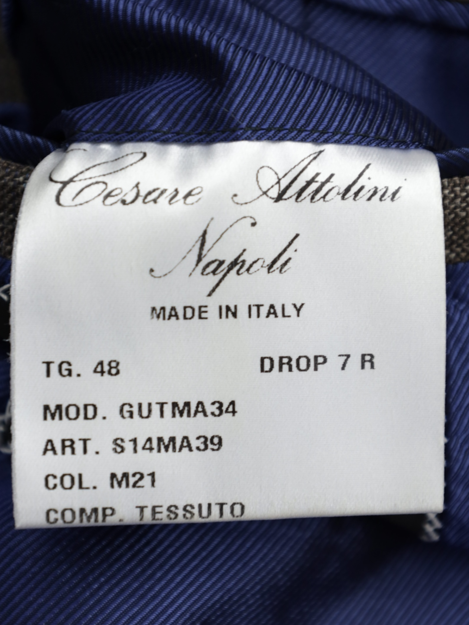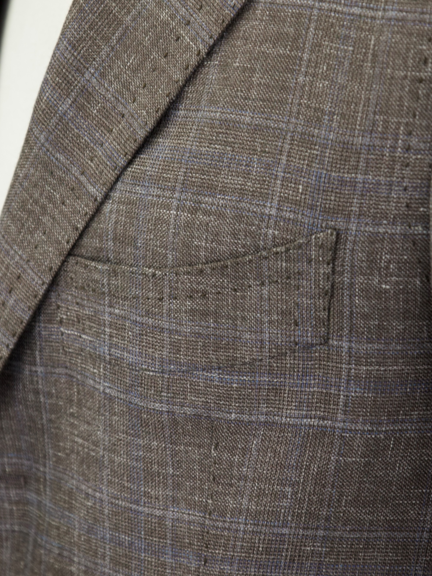 Cesare Attolini’s dedication to handcraftsmanship is evident in every element of this jacket. The signature doppio impuntura—a refined double topstitching technique—accentuates the lapels and seams, showcasing the meticulous handiwork of master tailors. Each buttonhole is carefully handmade, a hallmark of the brand’s uncompromising attention to detail. The combination of cashmere, silk, and linen ensures a perfect balance of softness, durability, and breathability, making this jacket a versatile companion for various occasions. This creation exemplifies Attolini’s unwavering pursuit of sartorial perfection. Discover the elaborated sartorial details below.