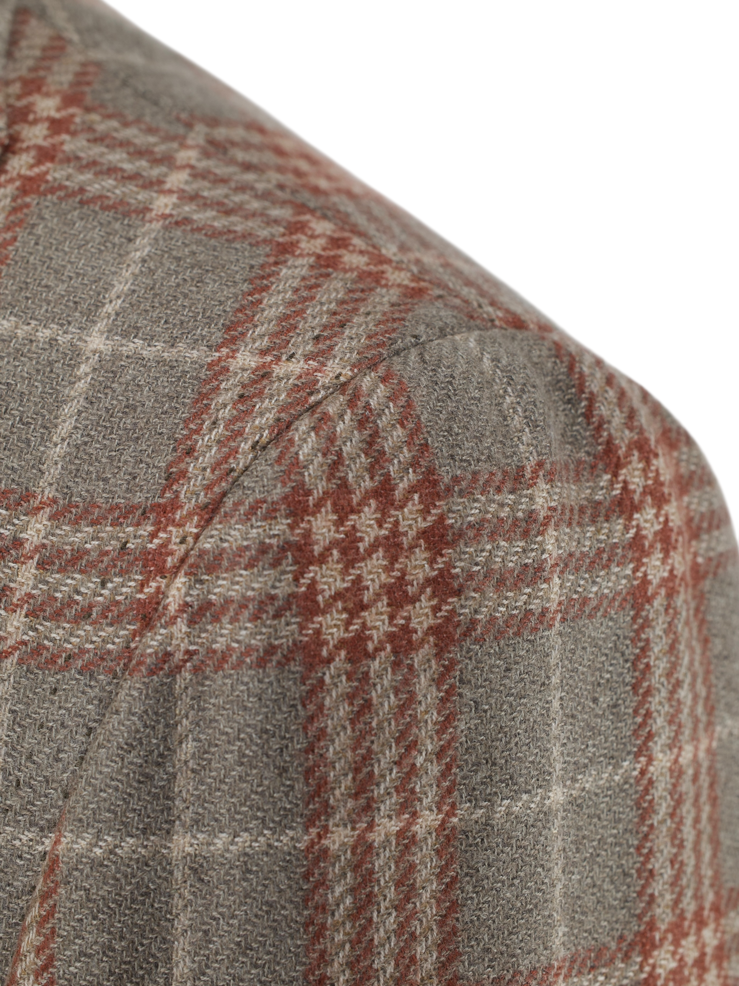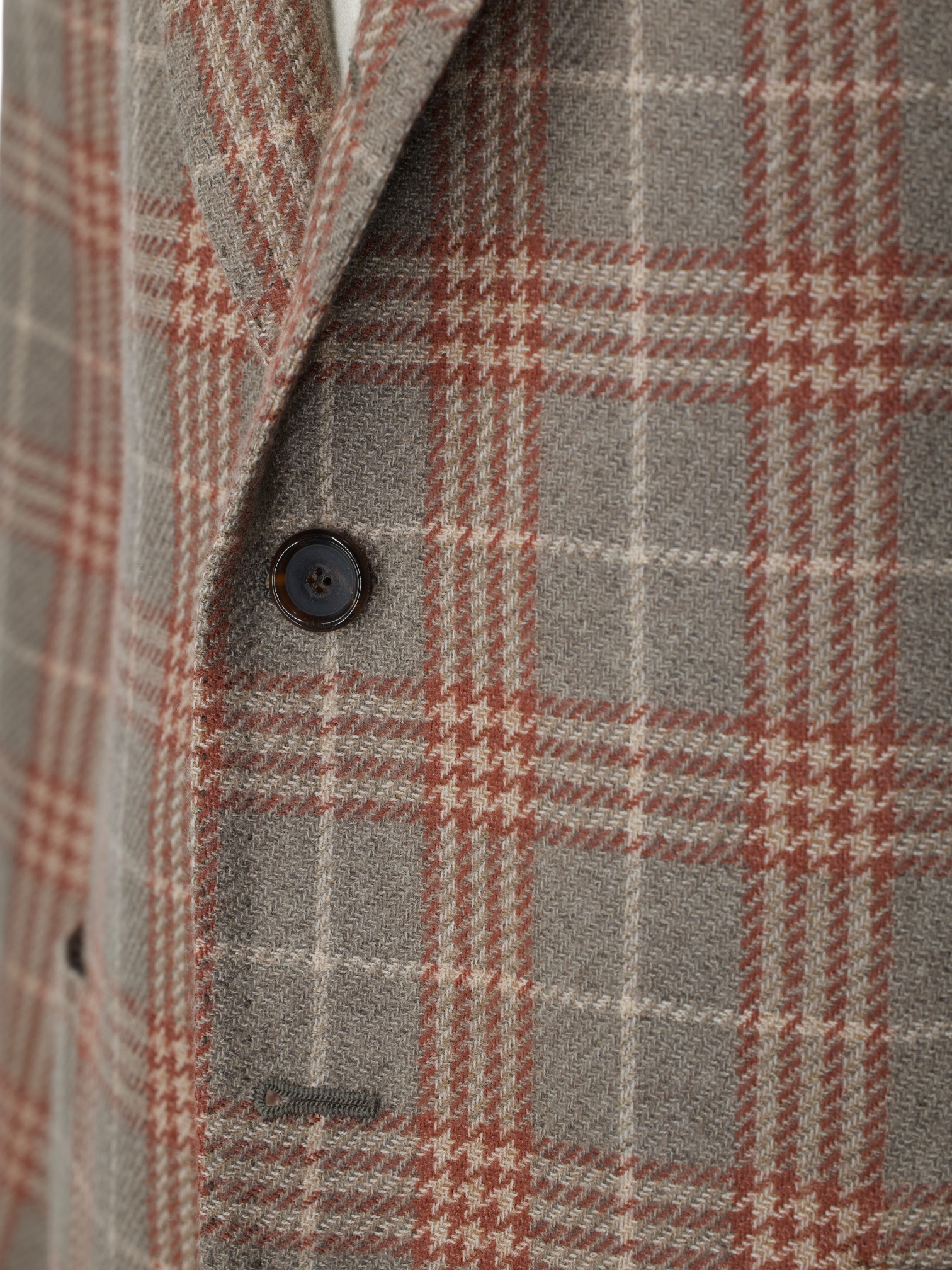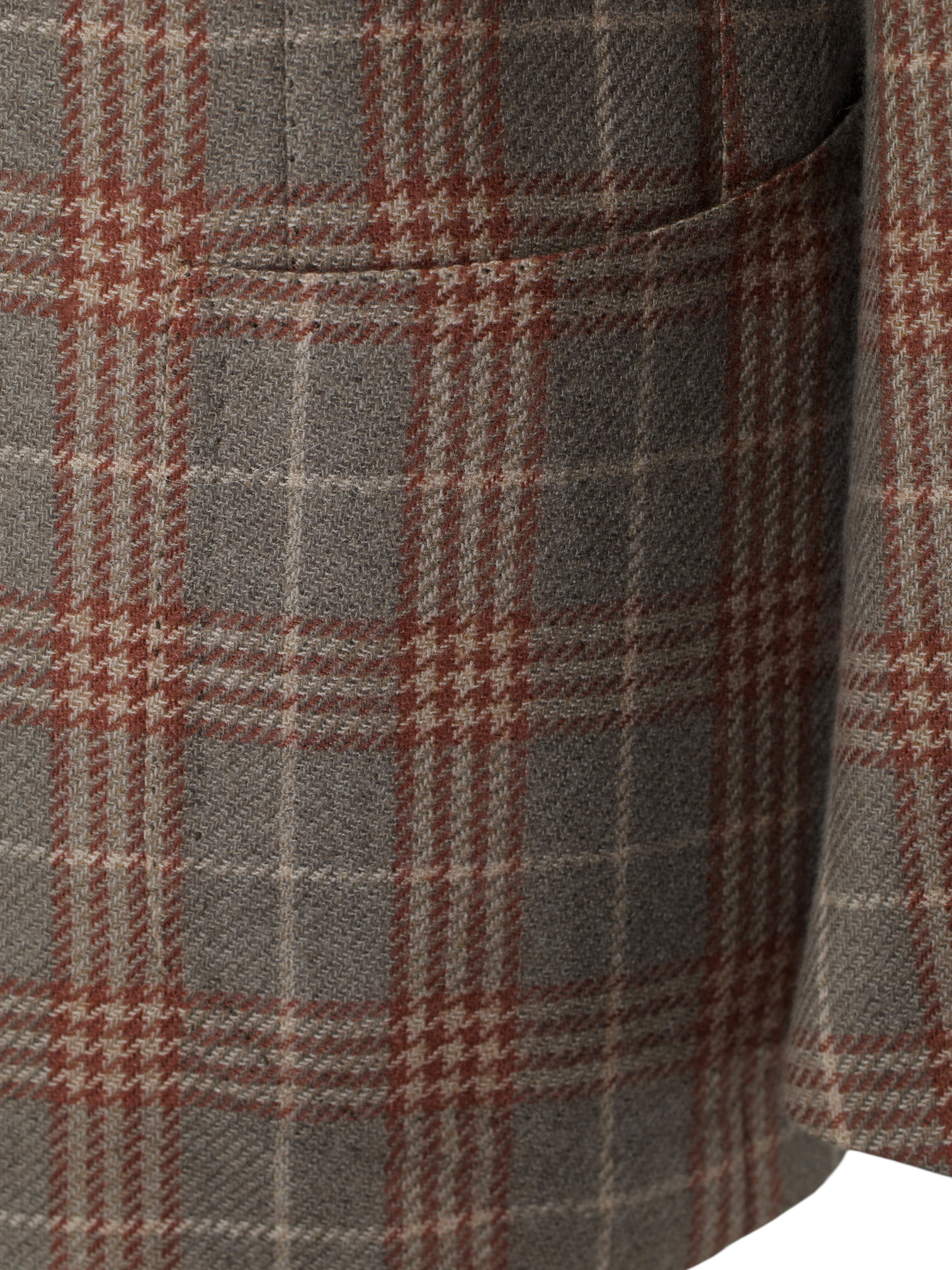 Discover the Cesare Attolini Light Brown and Negroni Red Pure Cashmere Prince of Wales Jacket, a confident expression of pattern rendered in indulgently soft pure cashmere. The light brown base provides warmth and depth, while the Negroni red overcheck lends a subtle yet distinctive accent that enlivens the classic Prince of Wales design. Tailored with notch lapels and a softly rolling 2.5 button closure, the silhouette feels effortless and assured. Tasca a pignata patch pockets enhance its relaxed Neapolitan character, and the half lined construction preserves lightness and natural drape.