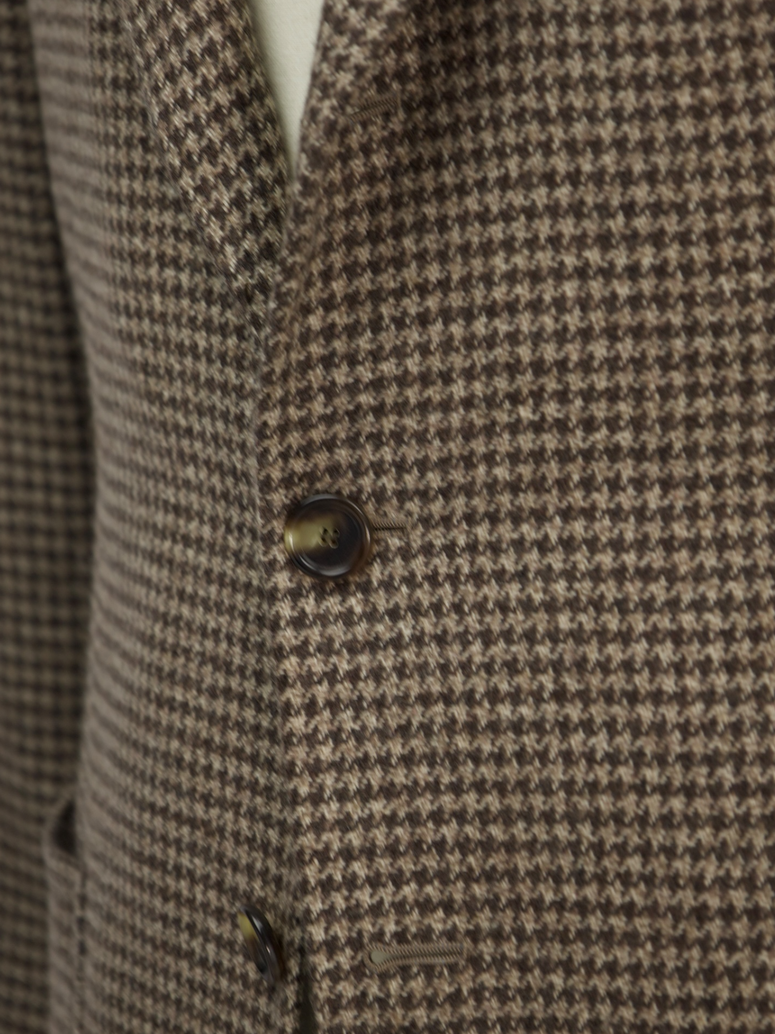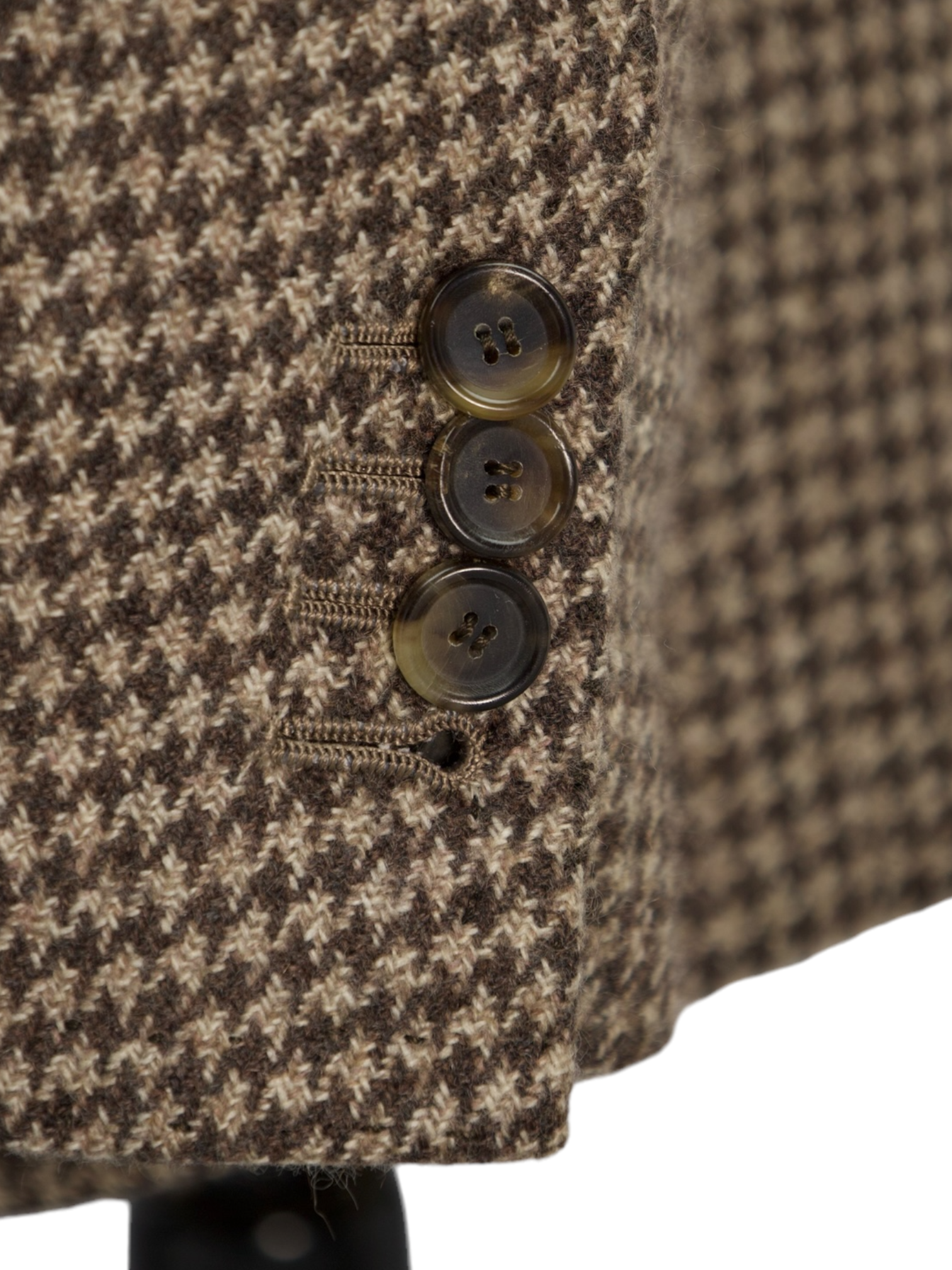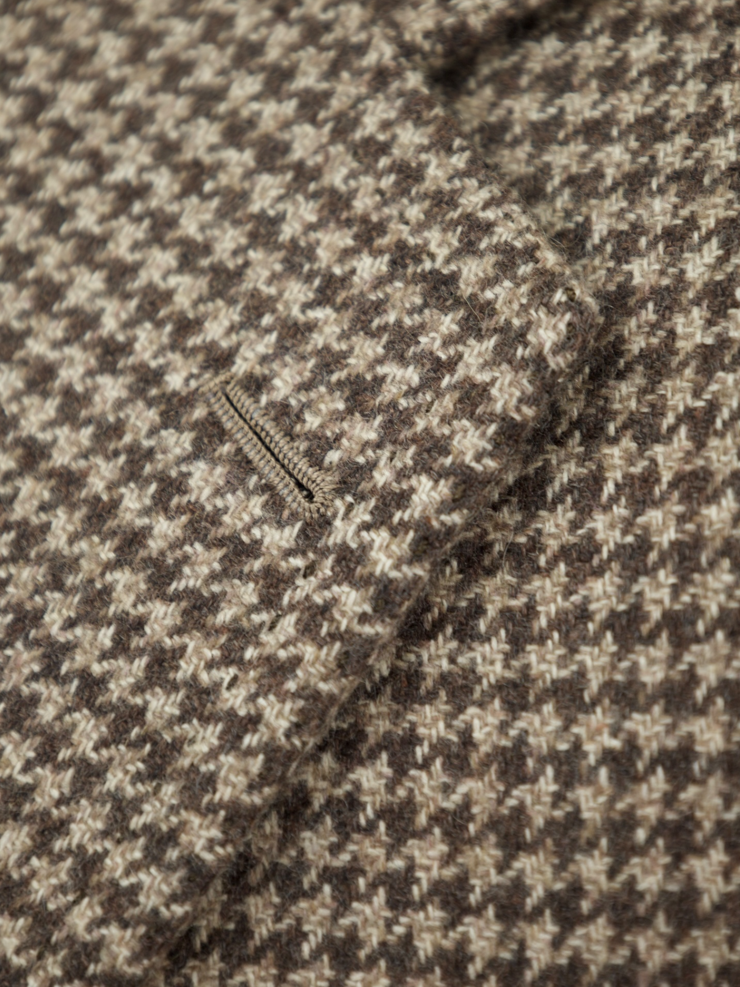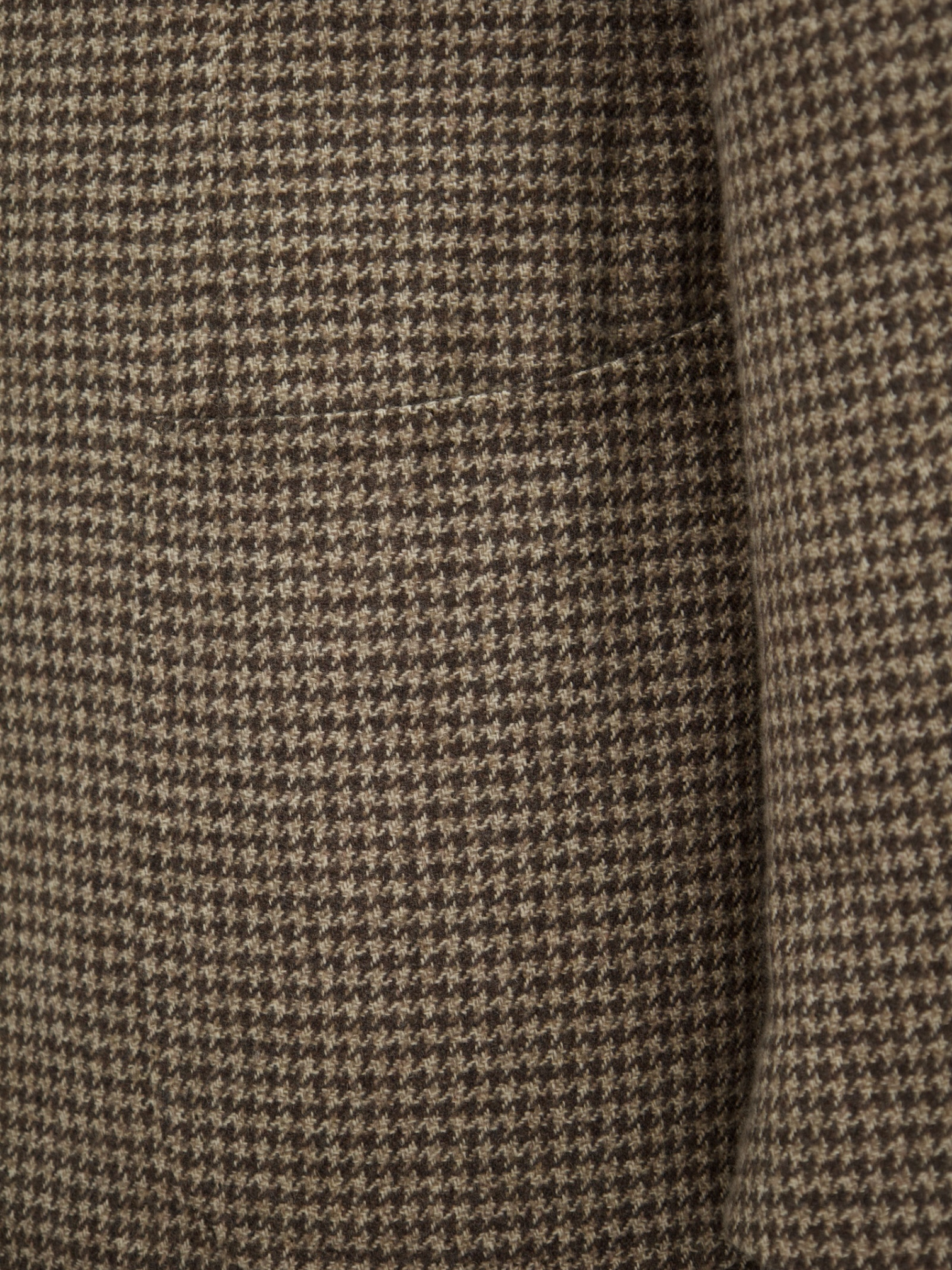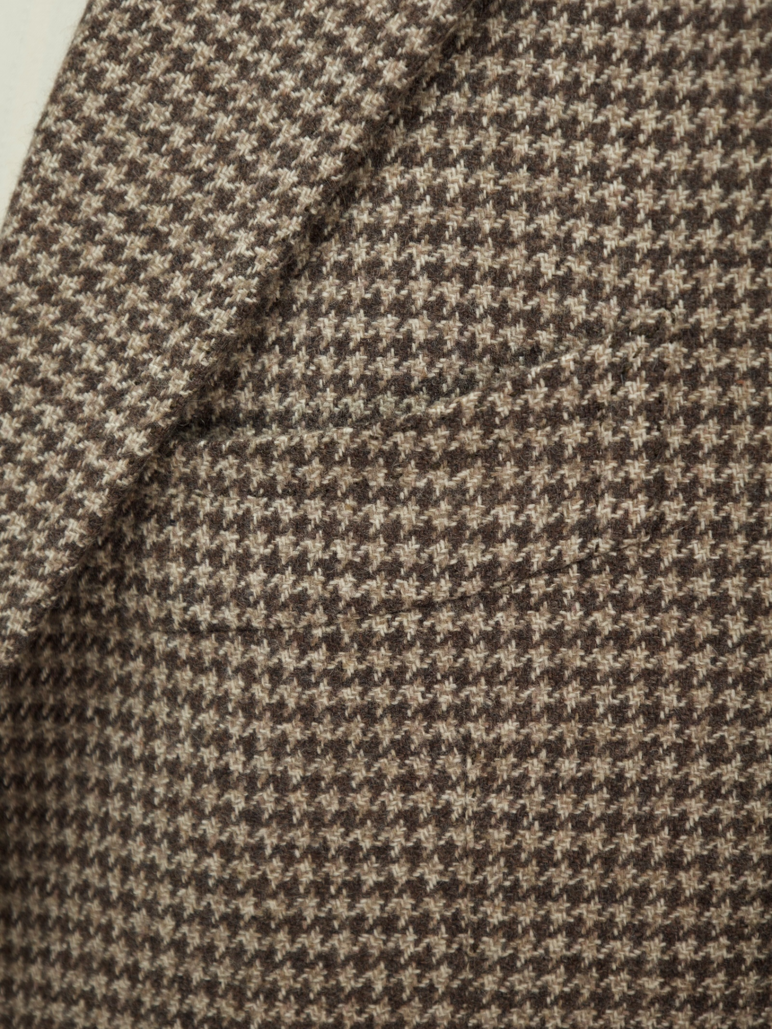 Discover the Cesare Attolini Light Brown Pied de Poule Cashmere Jacket, a masterpiece of Italian tailoring and timeless elegance. Crafted from luxurious cashmere, this jacket features a classic pied de poule (houndstooth) pattern in a sophisticated light brown hue. The intricate design adds texture and depth, making it a standout piece for any discerning wardrobe. This jacket features a seamless back with no split, designed to maintain a clean and uninterrupted silhouette.