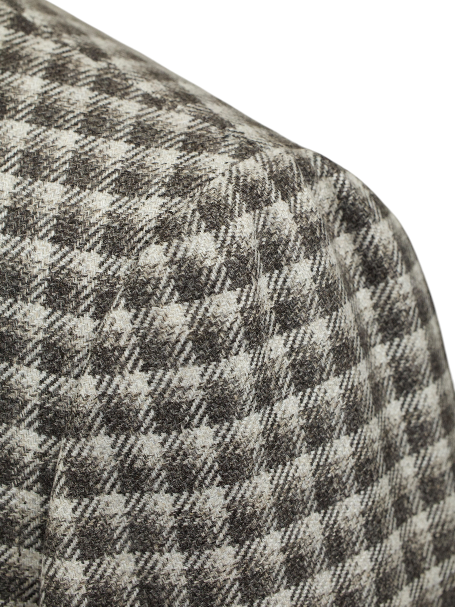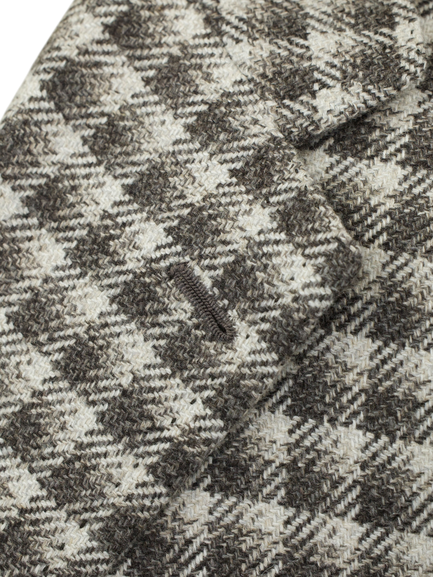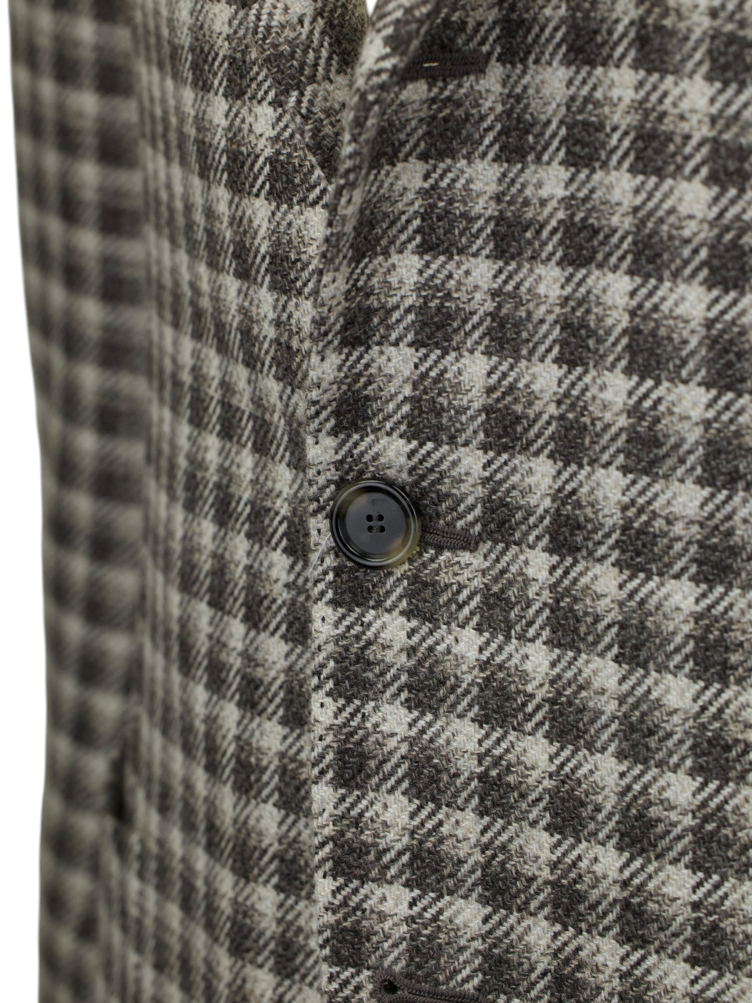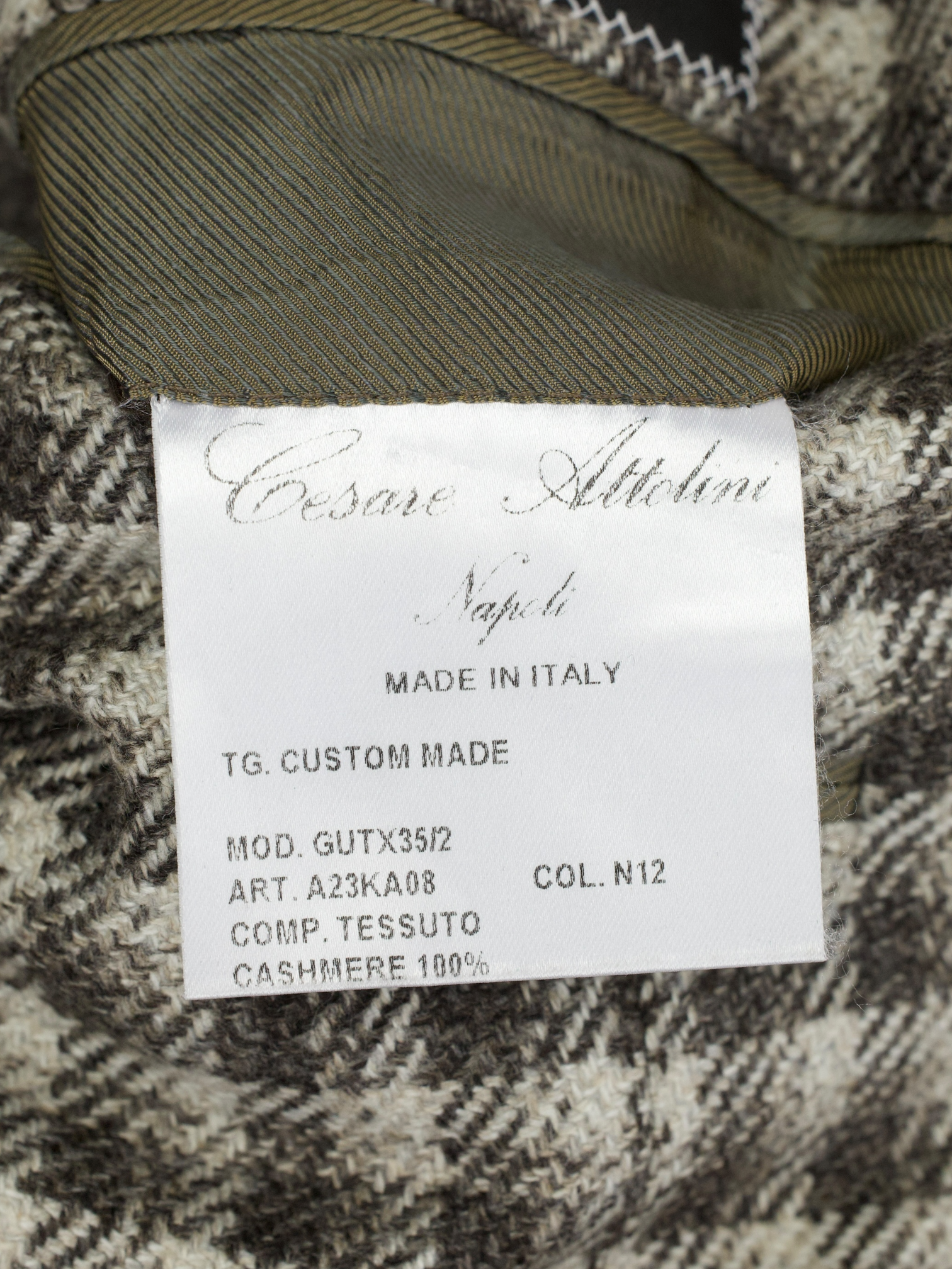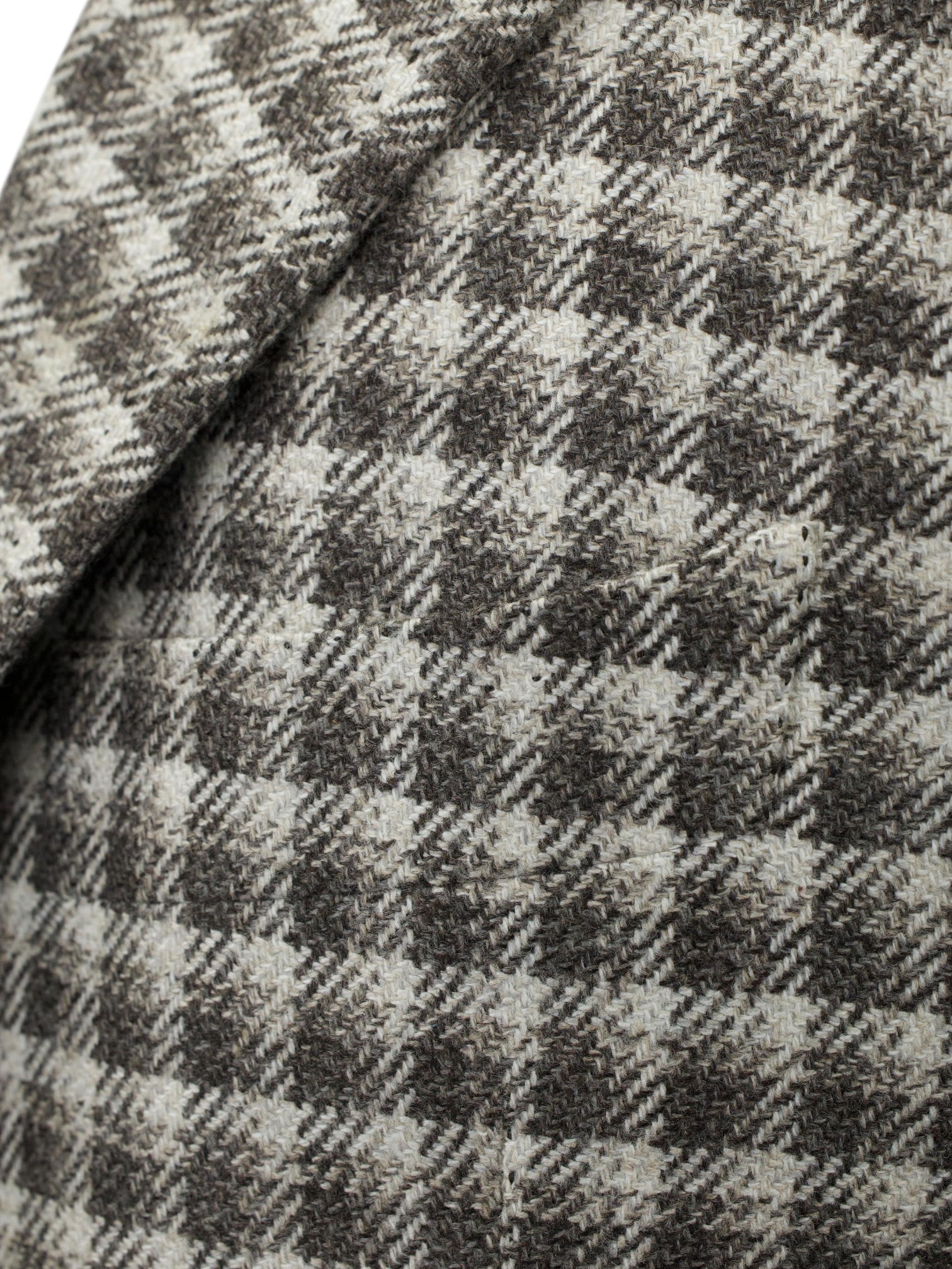 Discover the Cesare Attolini Light Brown & Taupe Pure Cashmere Gingham-Check Jacket, a standout piece that blends casual charm with the elevated softness of fine Neapolitan tailoring. Crafted from pure cashmere in a warm gingham-check pattern of light brown and taupe, the fabric offers an extraordinarily plush and fluffy touch—luxurious yet easy-wearing. Styled with notch lapels, patch pockets, and horn buttons, the jacket’s open structure and tonal palette lend it a relaxed sophistication. Doppio impuntura—Attolini’s signature double pick stitching—subtly frames the silhouette, adding artisanal texture and visual rhythm.