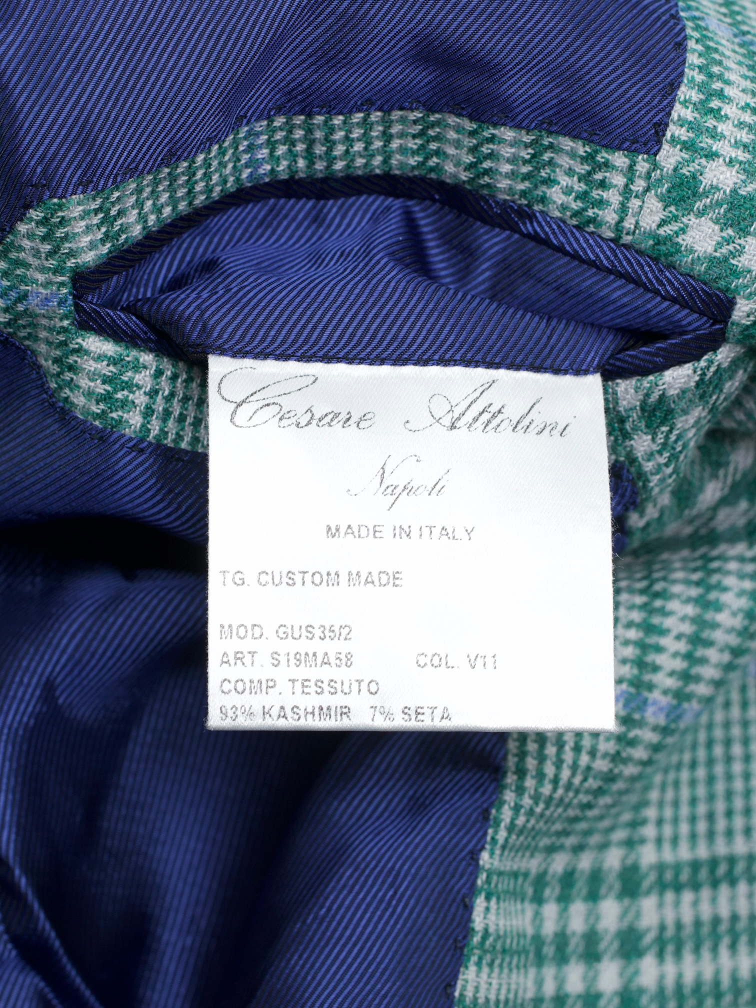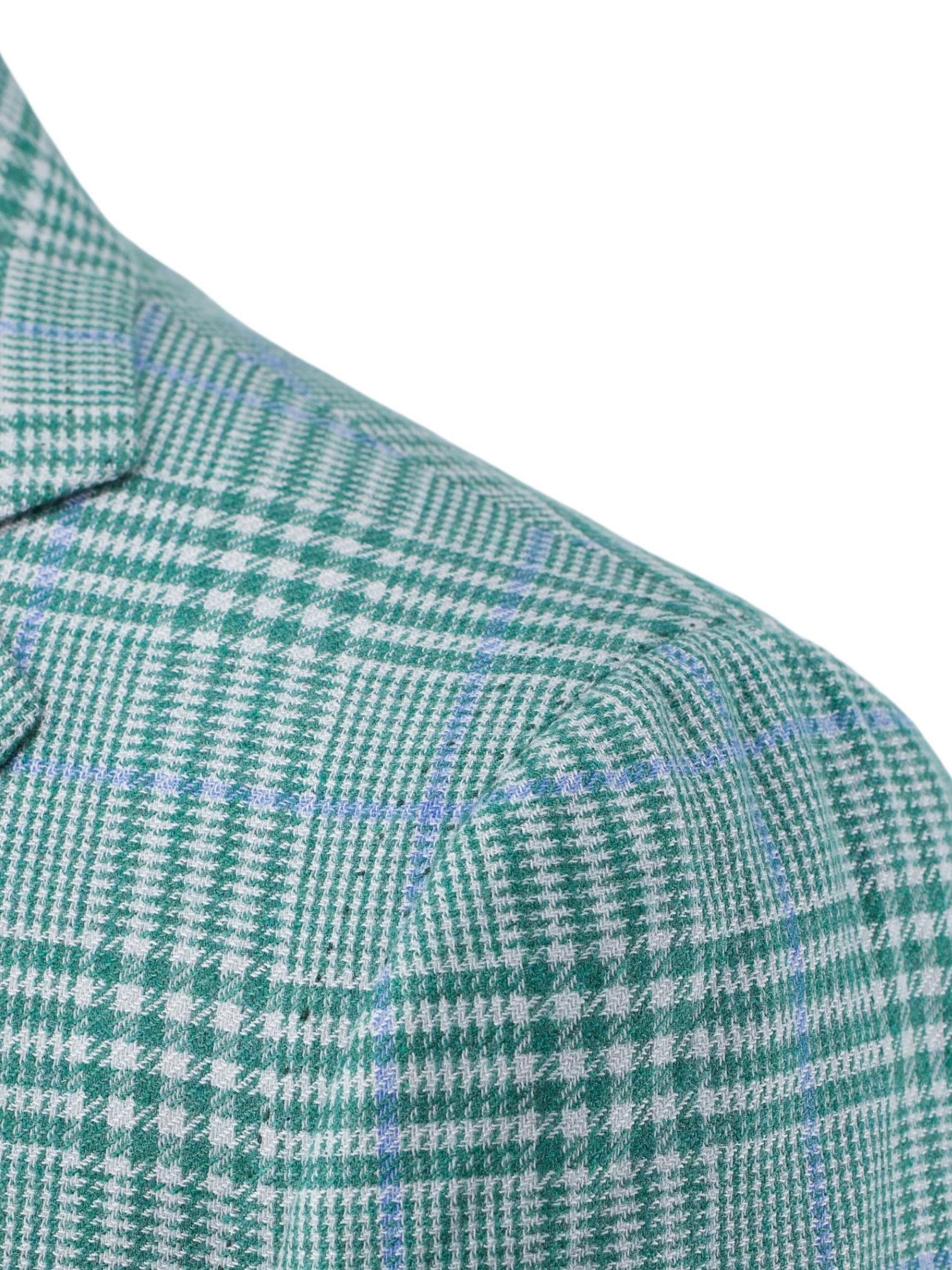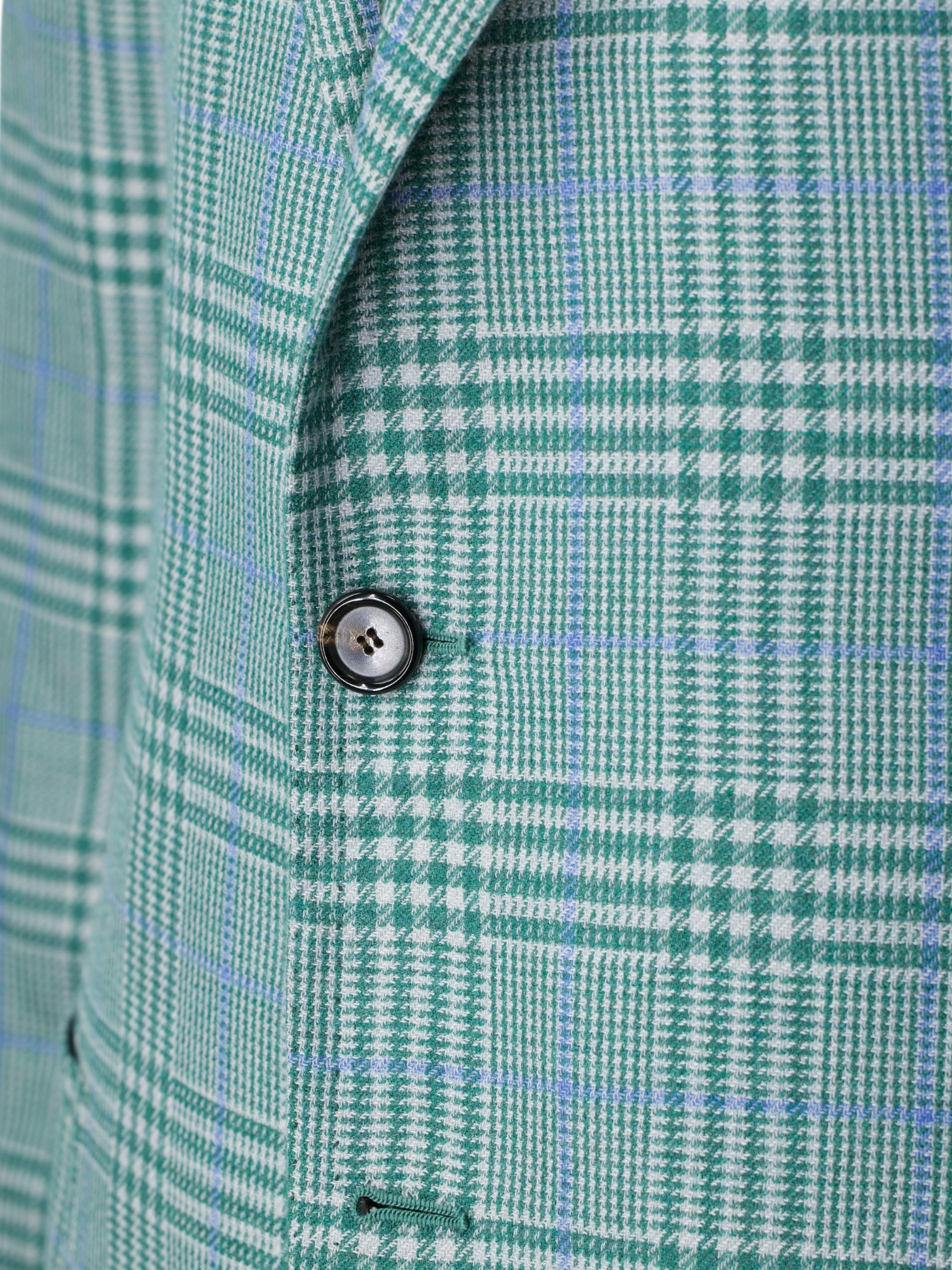 Discover the Cesare Attolini Light Green and Blue Cashmere Silk Glenplaid Jacket, an effortlessly distinctive piece woven in a luxurious cashmere silk blend that feels as refined as it looks. The base cloth carries a light green and white glenplaid undertone, elevated by a light blue windowpane overcheck that adds clarity and dimension. Tailored with notch lapels and left half lined for fluidity, the jacket retains a natural, easy drape. Tasca a pignata patch pockets reinforce its Neapolitan character, while doppio impuntura double pick stitching traces the edges with subtle artisanal definition. It is the sort of quietly confident statement that would feel entirely at home in Attolini’s seasonal Timeless campaign imagery.