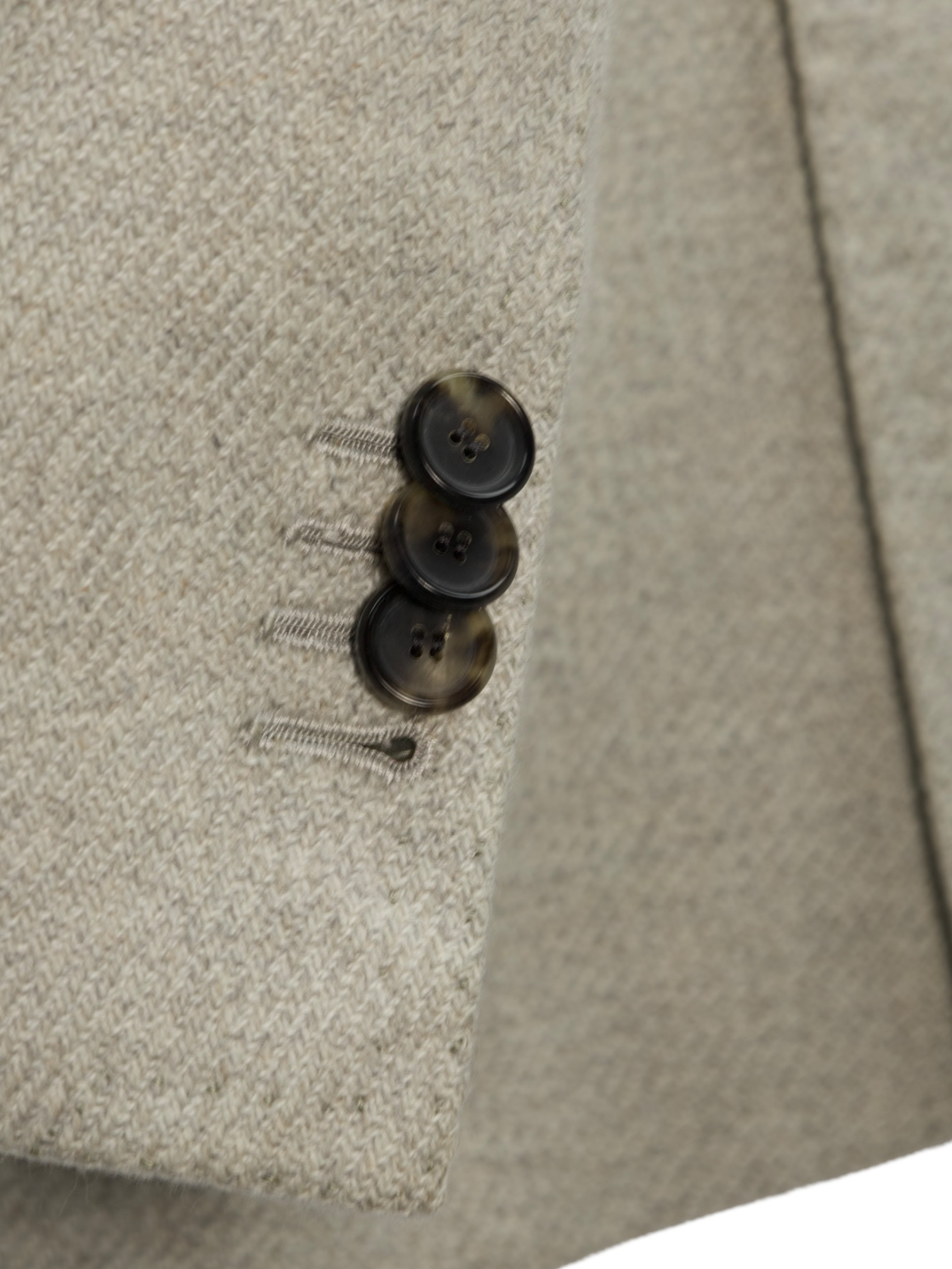 Also known as stacked buttons or waterfall buttons, kissing buttons are associated with Italian tailoring as Italian tailors make their jacket sleeve buttons in the kissing style. In this style, buttons touch each other and overlap one another. Handmade buttonholes; Even this step, apparently the simplest, is treated with an abundance of detail. Attaching the buttons is a job that requires patience and must be completed to perfection.