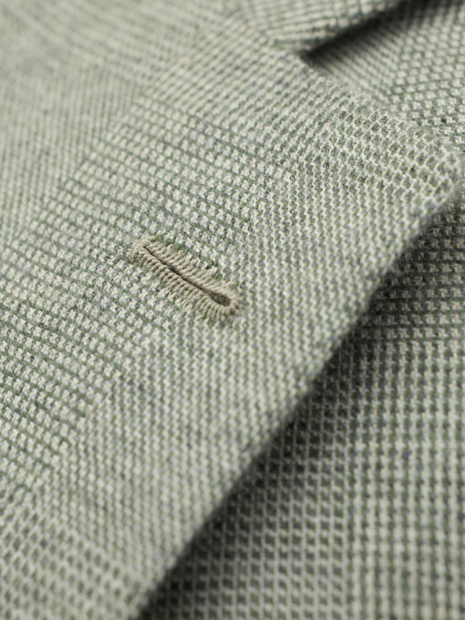 Handmade in Naples by Attolini’s master artisans, this jacket showcases the brand’s meticulous approach to tailoring. The double patch pocket is perfectly proportioned and precisely stitched, reflecting the level of detail that defines Neapolitan craftsmanship. Handmade buttonholes and a hand-finished collar further distinguish this piece, while the soft shoulder and natural drape speak to the comfort-first philosophy woven into every garment. Discover the elaborated sartorial details below.