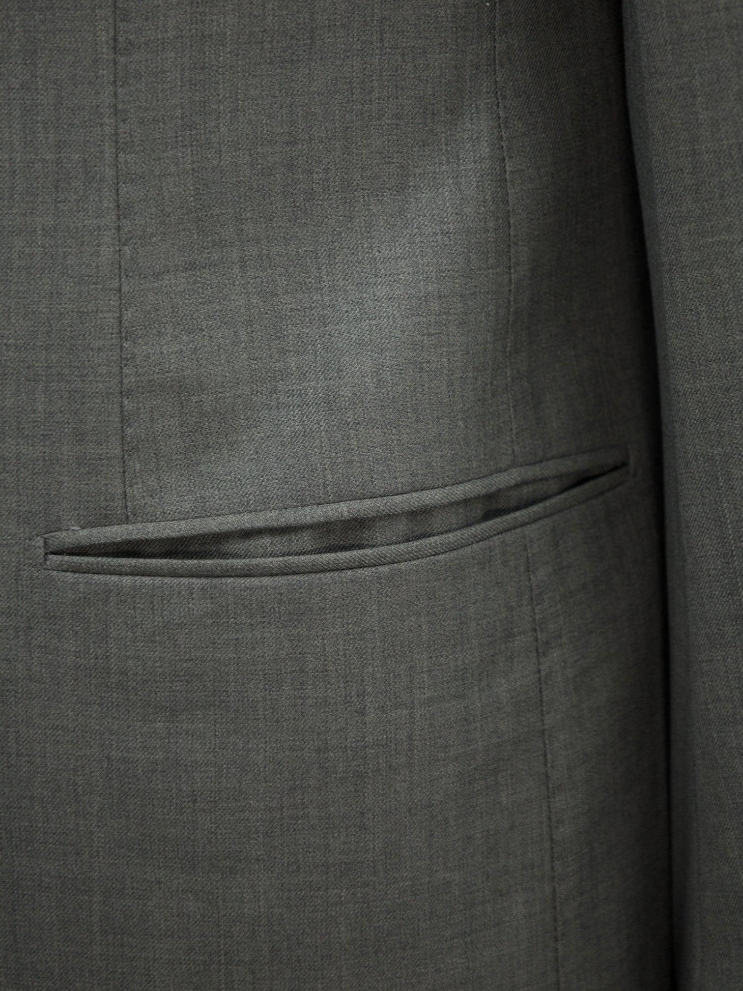 The barchetta pocket is often thought to be a tailoring detail exclusively from Italy. The word “barchetta” is Italian for “little boat.” It describes how the pocket floats on the chest, gently angled upwards, like the bow of a sailboat.