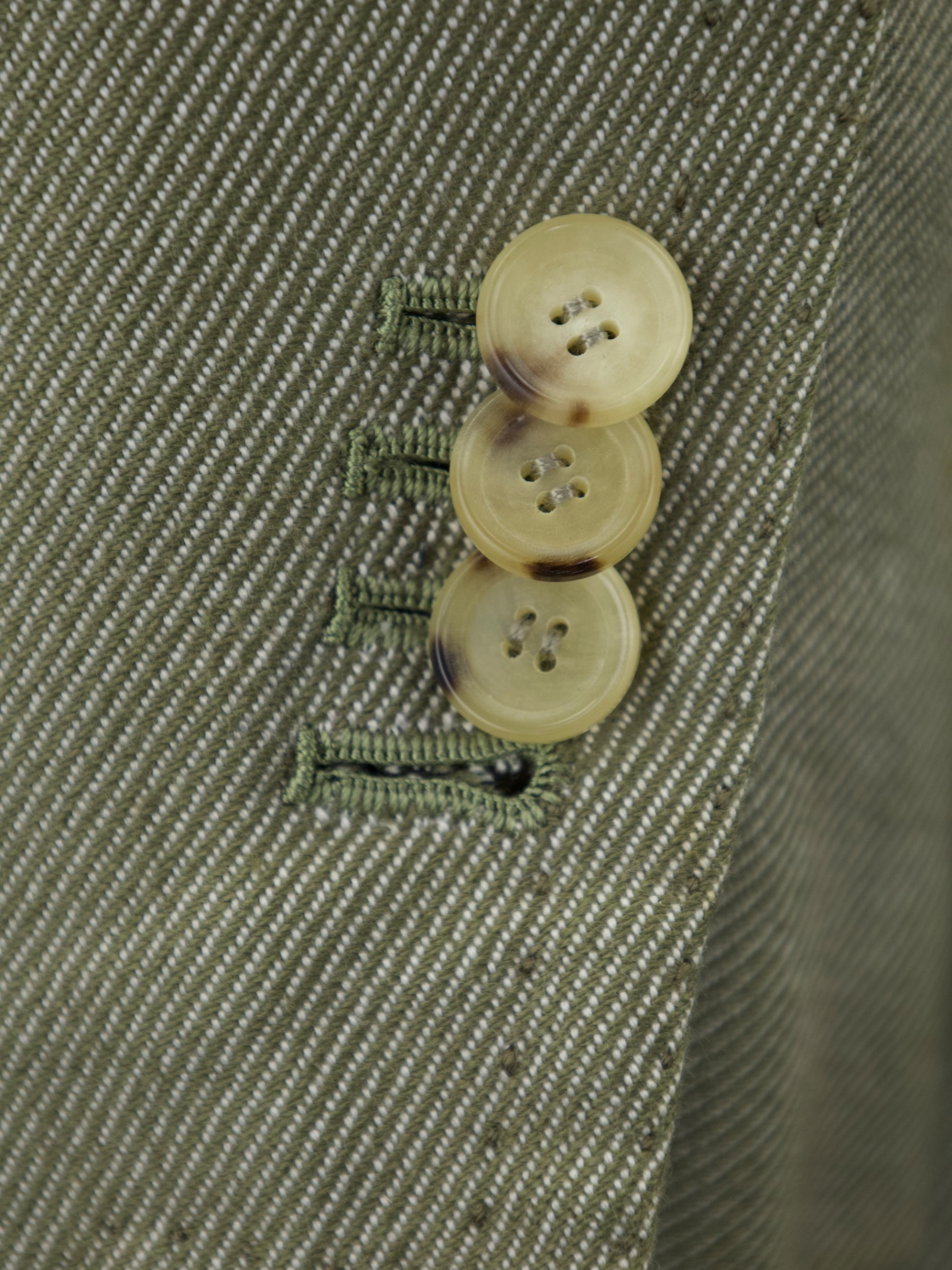 Also known as stacked buttons or waterfall buttons, kissing buttons are associated with Italian tailoring as Italian tailors make their jacket sleeve buttons in the kissing style. In this style, buttons touch each other and overlap one another. Handmade buttonholes; Even this step, apparently the simplest, is treated with an abundance of detail. Attaching the buttons is a job that requires patience and must be completed to perfection.