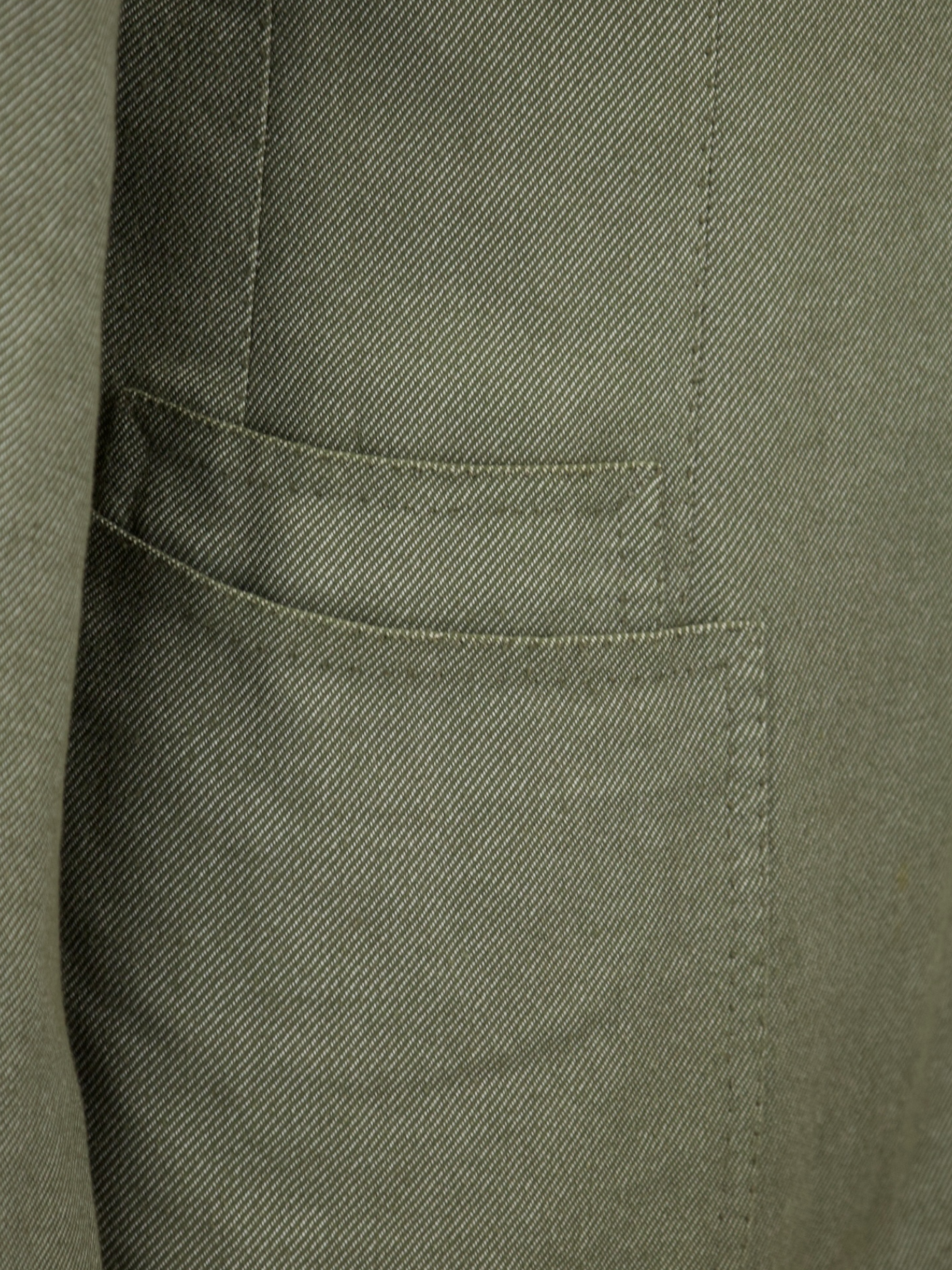 The doppio impuntura or ‘double pick stitching’. It is made as a backstitch, which is a highly time consuming process that looks like a little dot on the surface of the fabric. The doppio impuntura runs throughout the sides of the lapel, collar, pockets and shoulder seam. As a visible detail of handwork, it can be seen as the ultimate touch of elegance.
