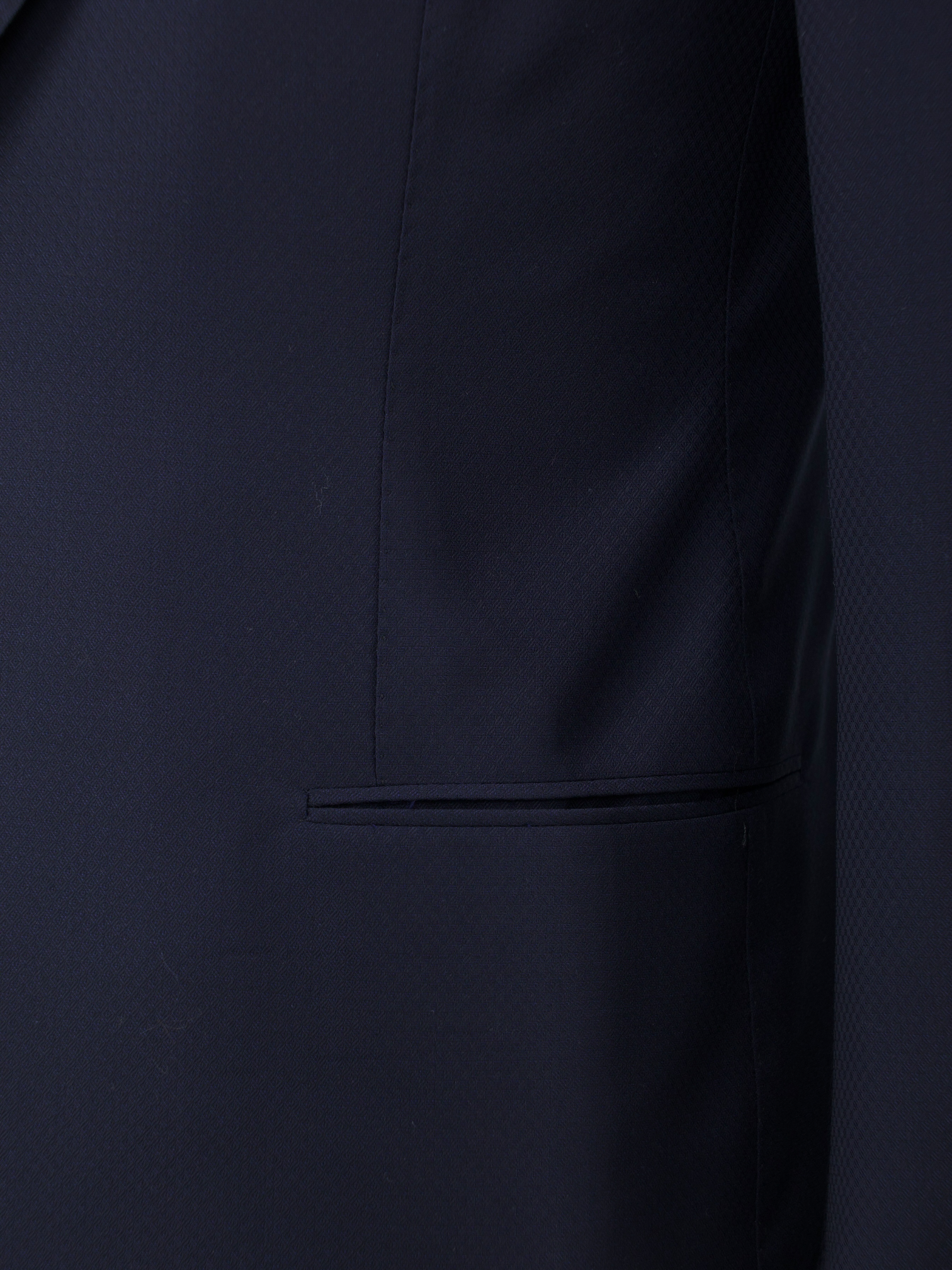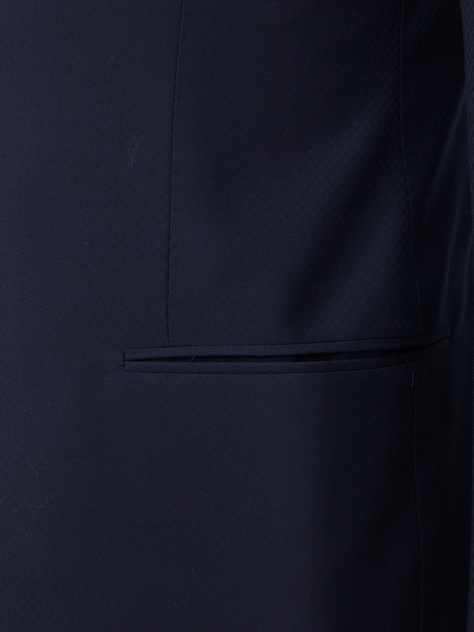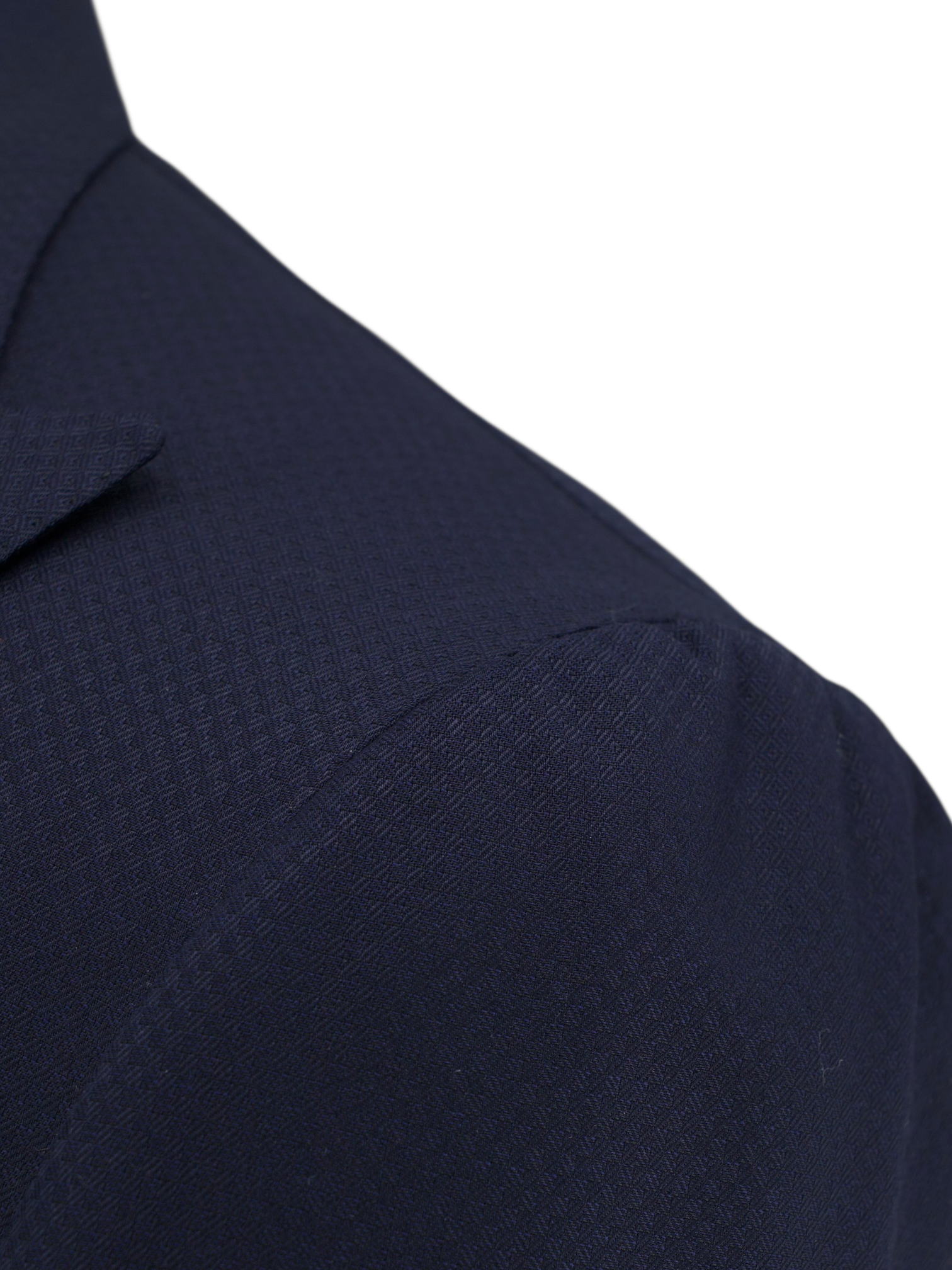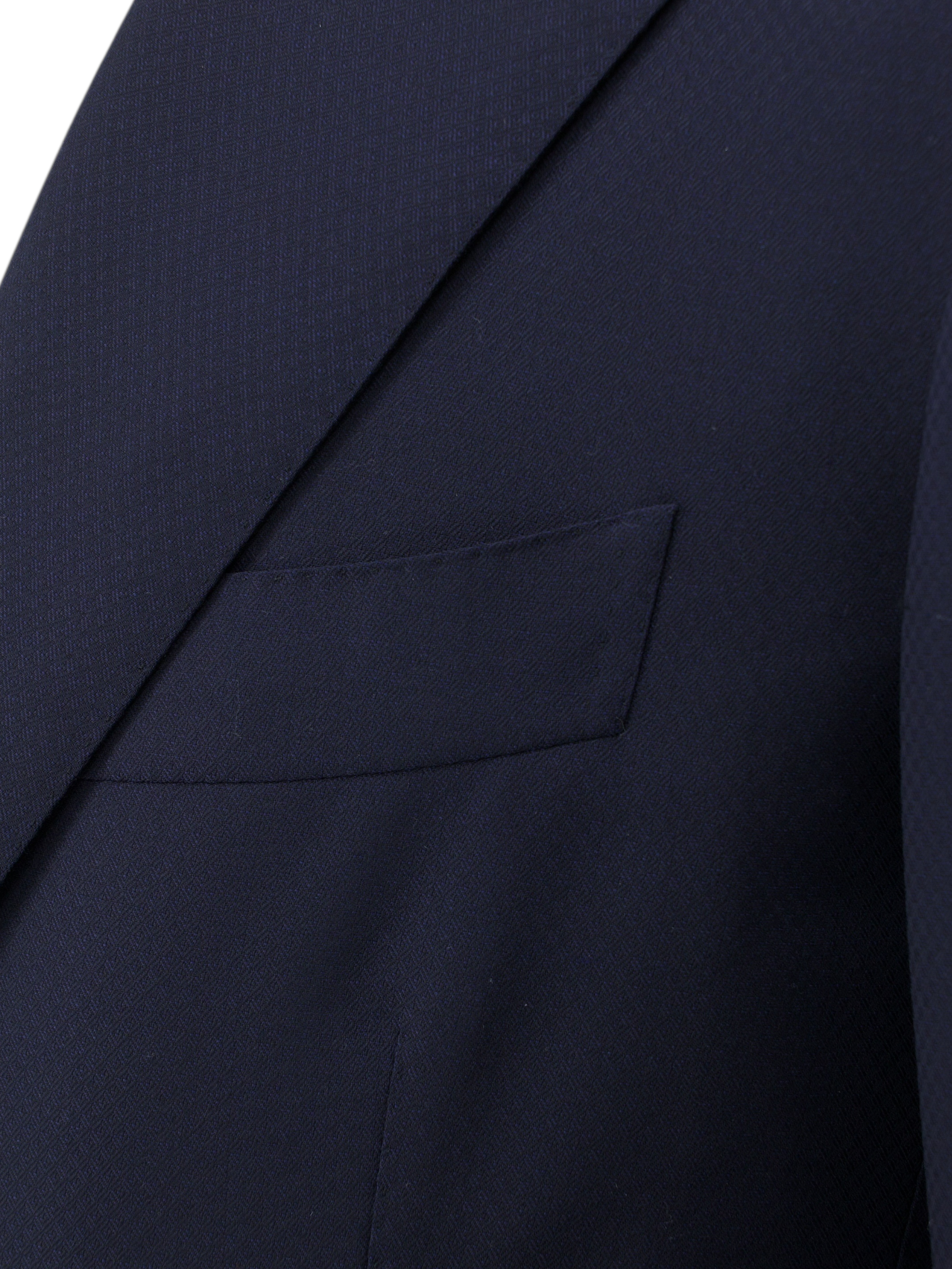 Discover the Cesare Attolini Navy Fine Wool Micro-Pattern Jacket, a refined piece that speaks softly through detail and precision. The navy fabric is woven with a subtle diamond micro-pattern, so fine it reveals itself only up close, adding quiet depth and texture to the cloth. Tailored with sharp peak lapels, a two-button closure and jetted pockets, the silhouette leans formal while remaining unmistakably Neapolitan in its ease and flow. Grey mother-of-pearl buttons offer a discreet contrast, complementing the fabric’s tone without distraction.