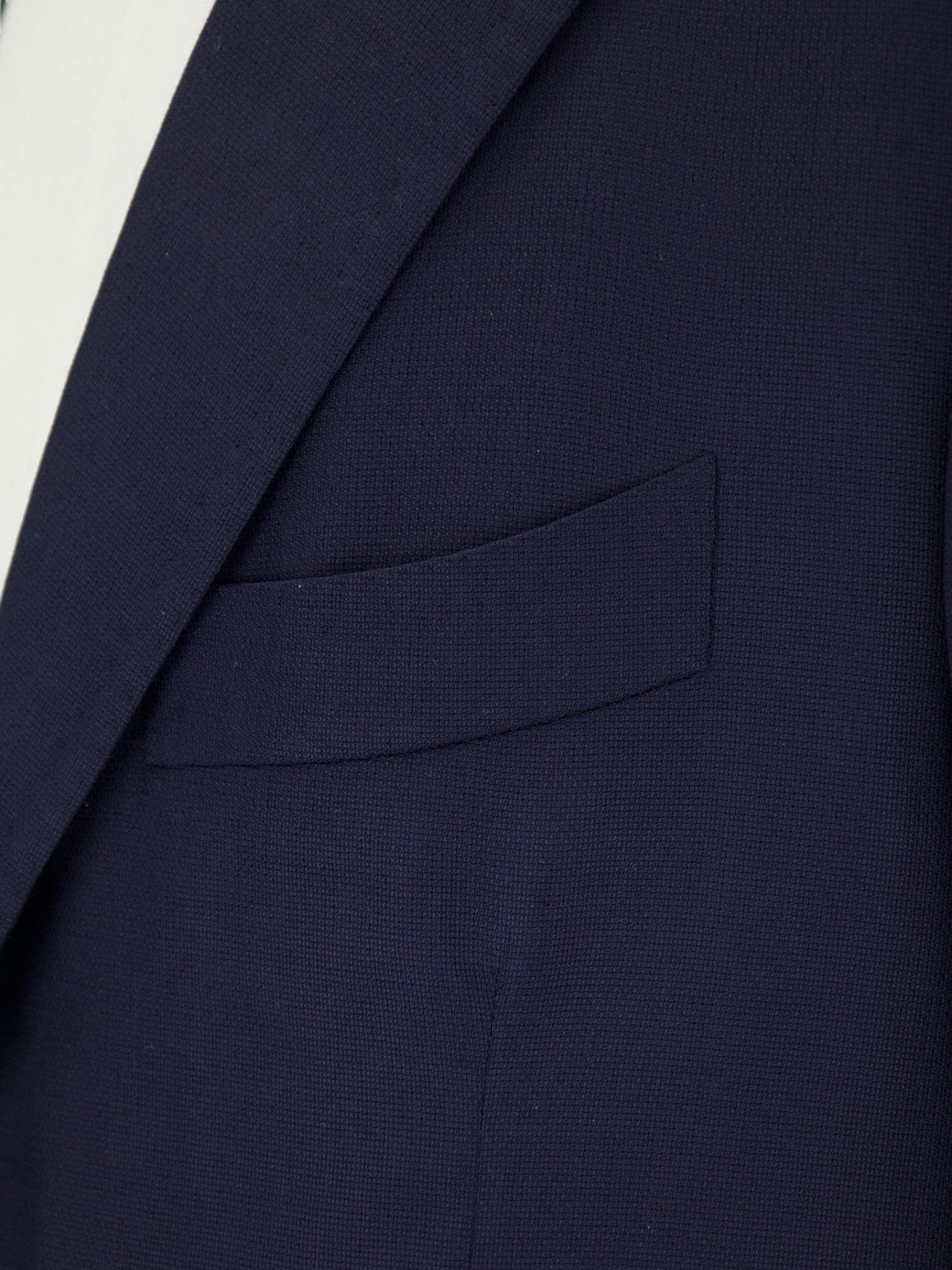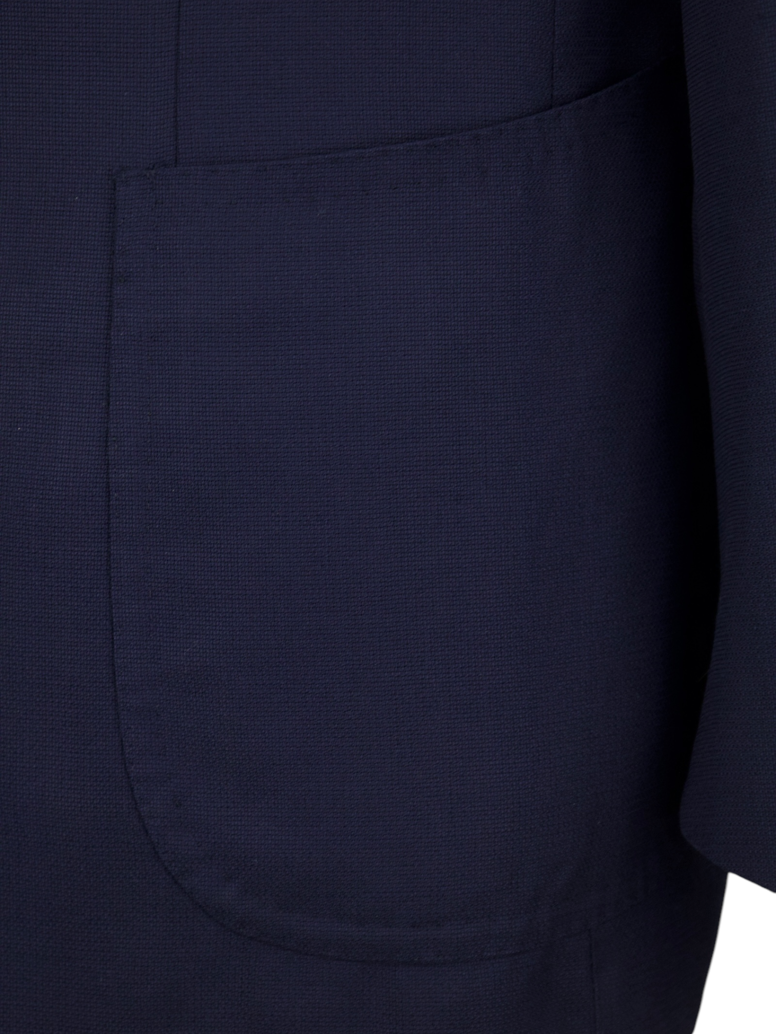 The barchetta pocket is often thought to be a tailoring detail exclusively from Italy. The word “barchetta” is Italian for “little boat.” It describes how the pocket floats on the chest, gently angled upwards, like the bow of a sailboat.