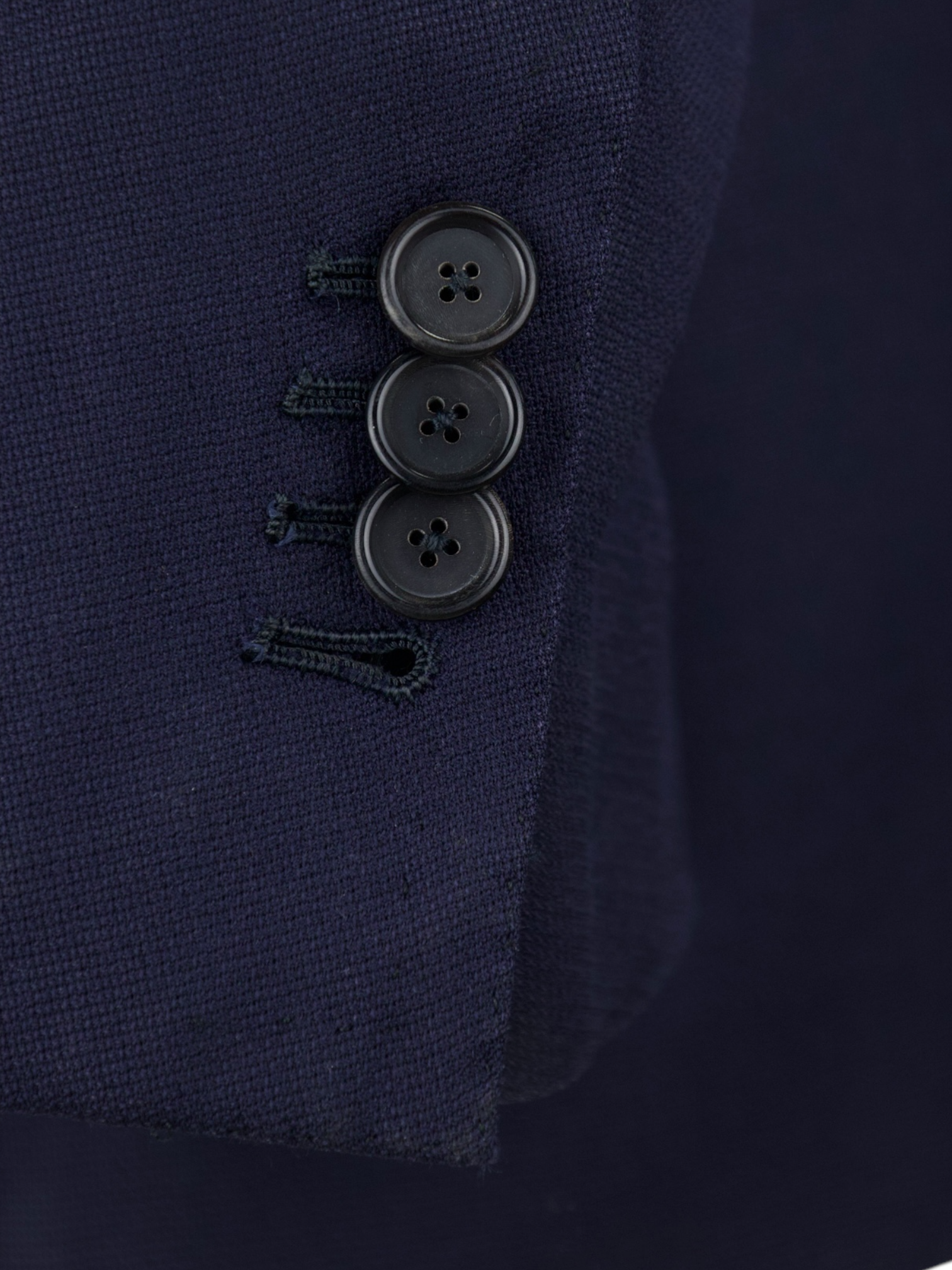 Also known as stacked buttons or waterfall buttons, kissing buttons are associated with Italian tailoring as Italian tailors make their jacket sleeve buttons in the kissing style. In this style, buttons touch each other and overlap one another. Handmade buttonholes; Even this step, apparently the simplest, is treated with an abundance of detail. Attaching the buttons is a job that requires patience and must be completed to perfection.