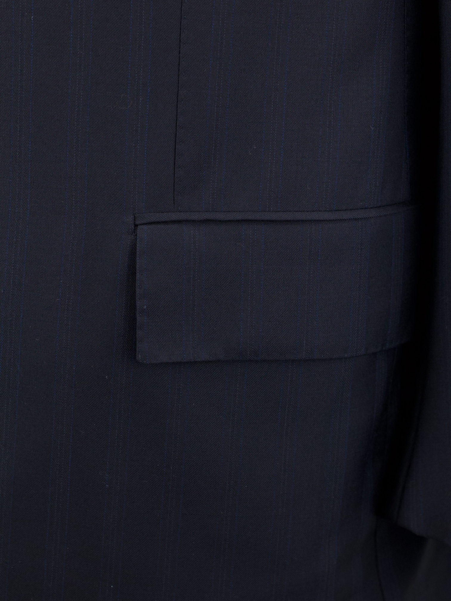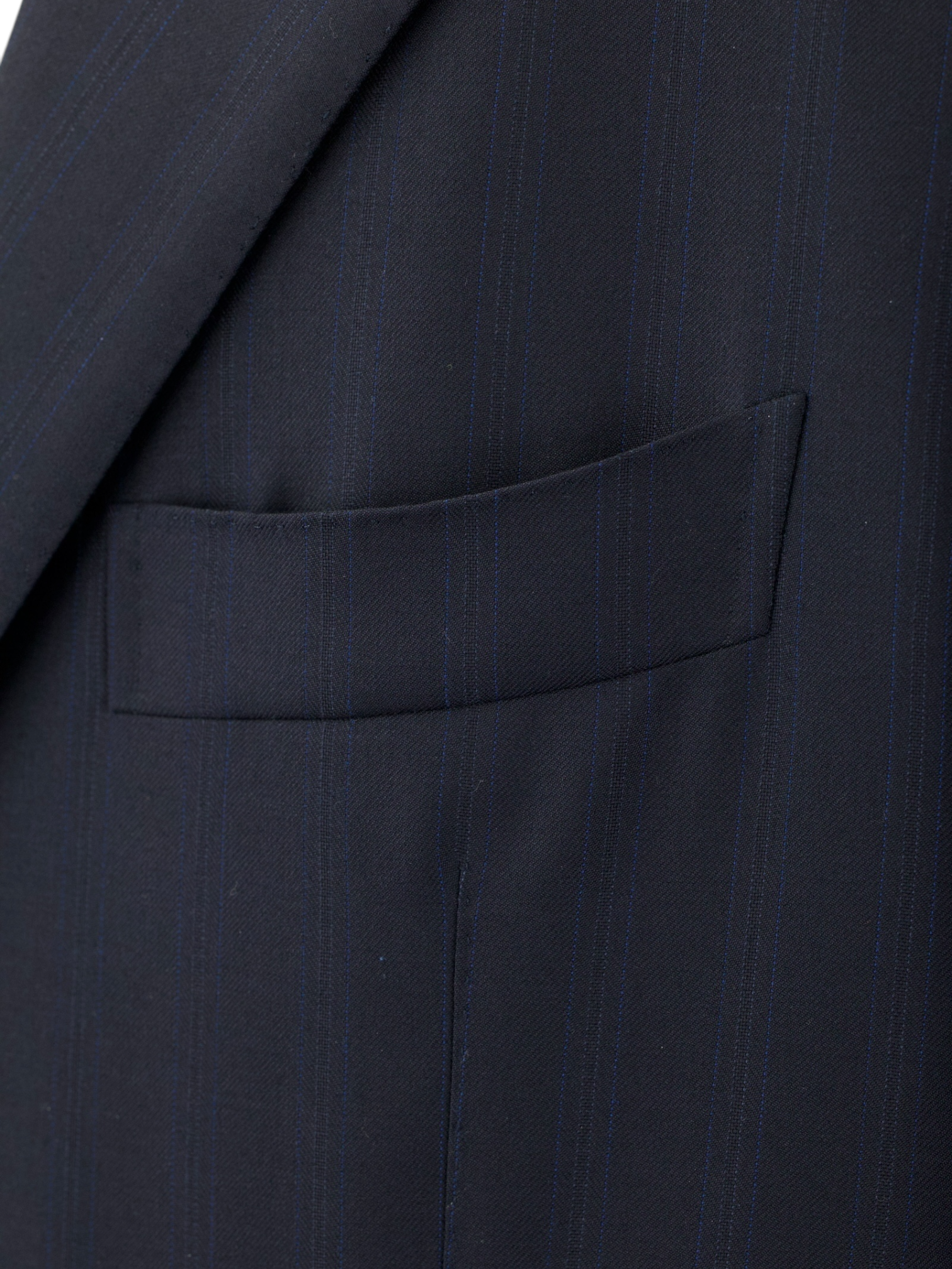 Handmade in Naples, this suit reflects Cesare Attolini’s dedication to sartorial excellence, where each piece is crafted entirely by hand—from the canvas construction to the hand-stitched buttonholes and finishing. The result is a garment that moves naturally with the wearer, offering both comfort and poise. Whether worn in a business setting or a formal affair, this pinstripe suit delivers timeless sophistication with the soul of true Italian tailoring. Discover the elaborated sartorial details below.