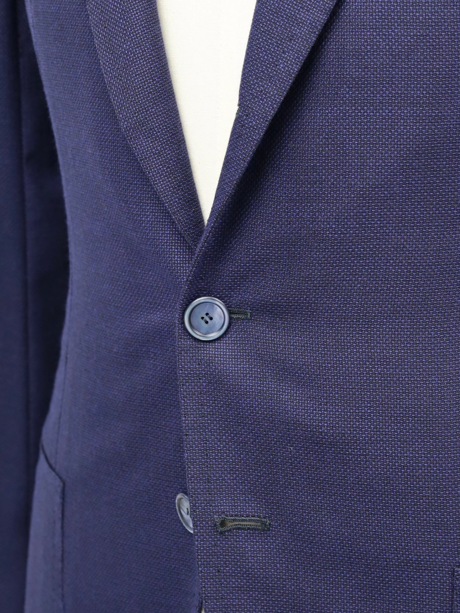 Also known as stacked buttons or waterfall buttons, kissing buttons are associated with Italian tailoring as Italian tailors make their jacket sleeve buttons in the kissing style. In this style, buttons touch each other and overlap one another. Handmade buttonholes; Even this step, apparently the simplest, is treated with an abundance of detail. Attaching the buttons is a job that requires patience and must be completed to perfection.