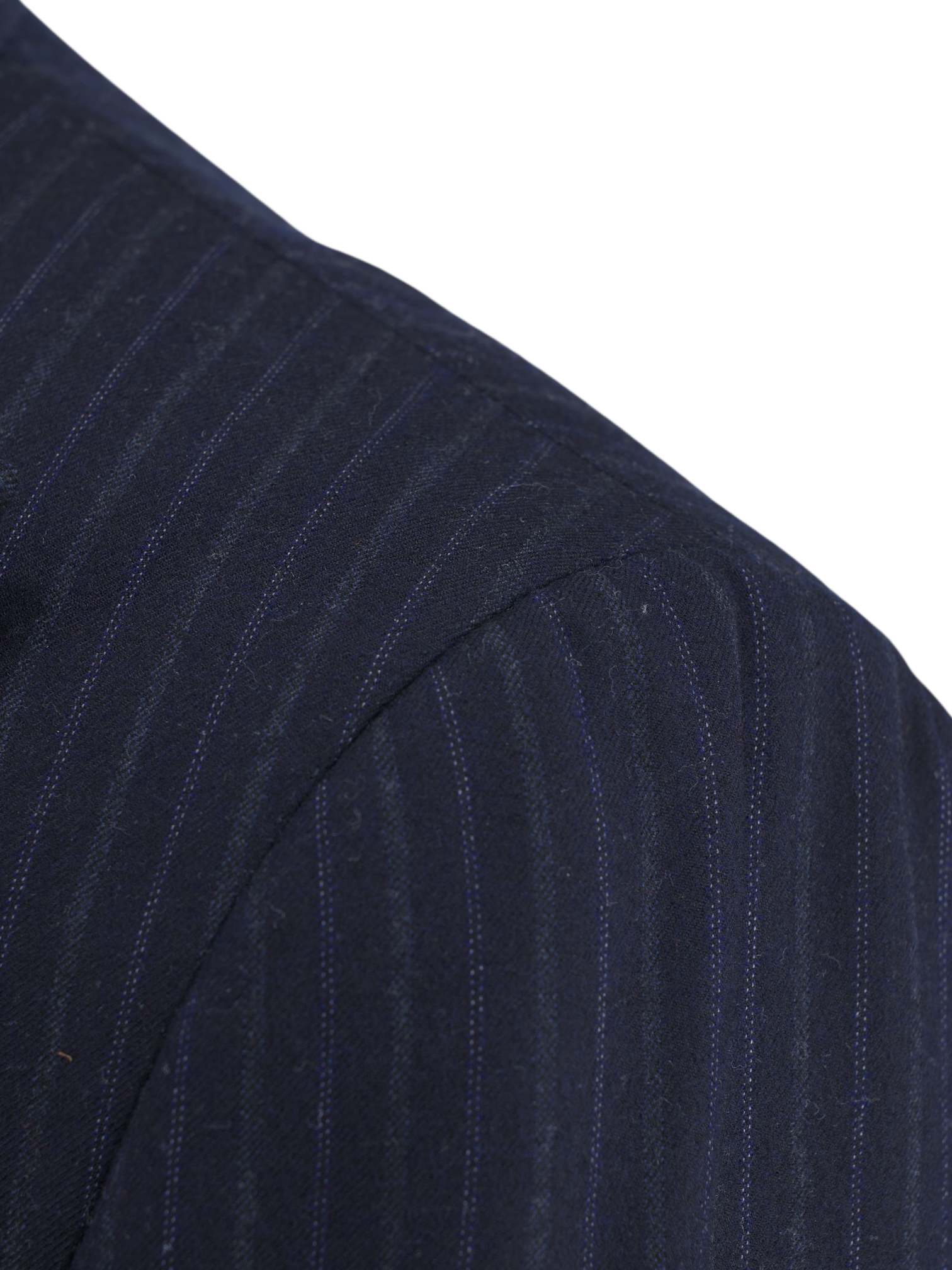 Spalla Camicia roughly translates to 'shirt sleeve' in Italian and is a shoulder style created and popularized by Neapolitan tailors. The name 'shirt sleeve' was so coined due to the characteristic shirring found at the sleeve's head where the fullness of the larger sleeve collapses. Rather than having the head of the sleeve turned back and stitched inside, the head is lapped under and stitched along the top.