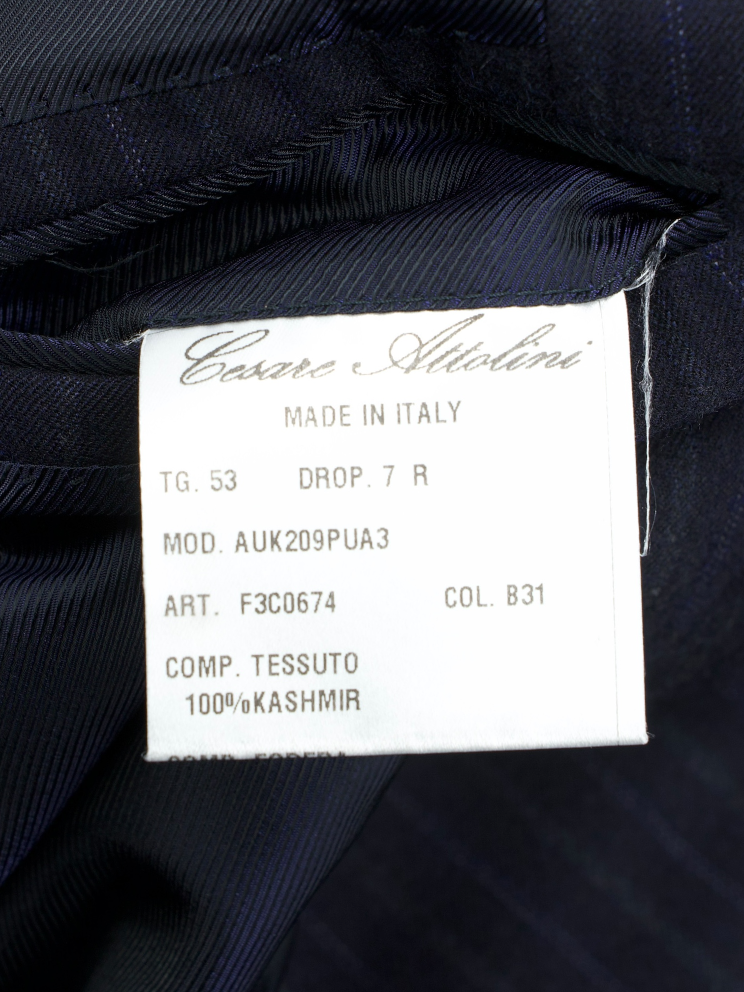 Cesare Attolini Navy Pure-Cashmere Shadow-Stripe Sartorial Winter Suit