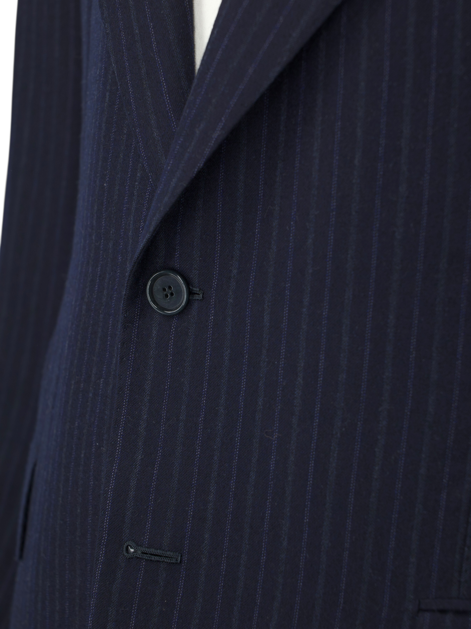 The trousers are tailored with a single pleat and a straight fit, finished with a traditional button rise closure and a wide leg opening with turn ups that enhances the suit’s elegant drape. Originally purchased through Tincati, the piece reflects the discerning eye of a retailer known for championing uncompromising Neapolitan craftsmanship. As with all Cesare Attolini tailoring, it is handmade in Naples, where master artisans dedicate hours to shaping the canvas, refining proportions and ensuring the soft shoulder and fluid line that define the house. The result is winter tailoring at its most assured and quietly luxurious. Discover the elaborated sartorial details below.